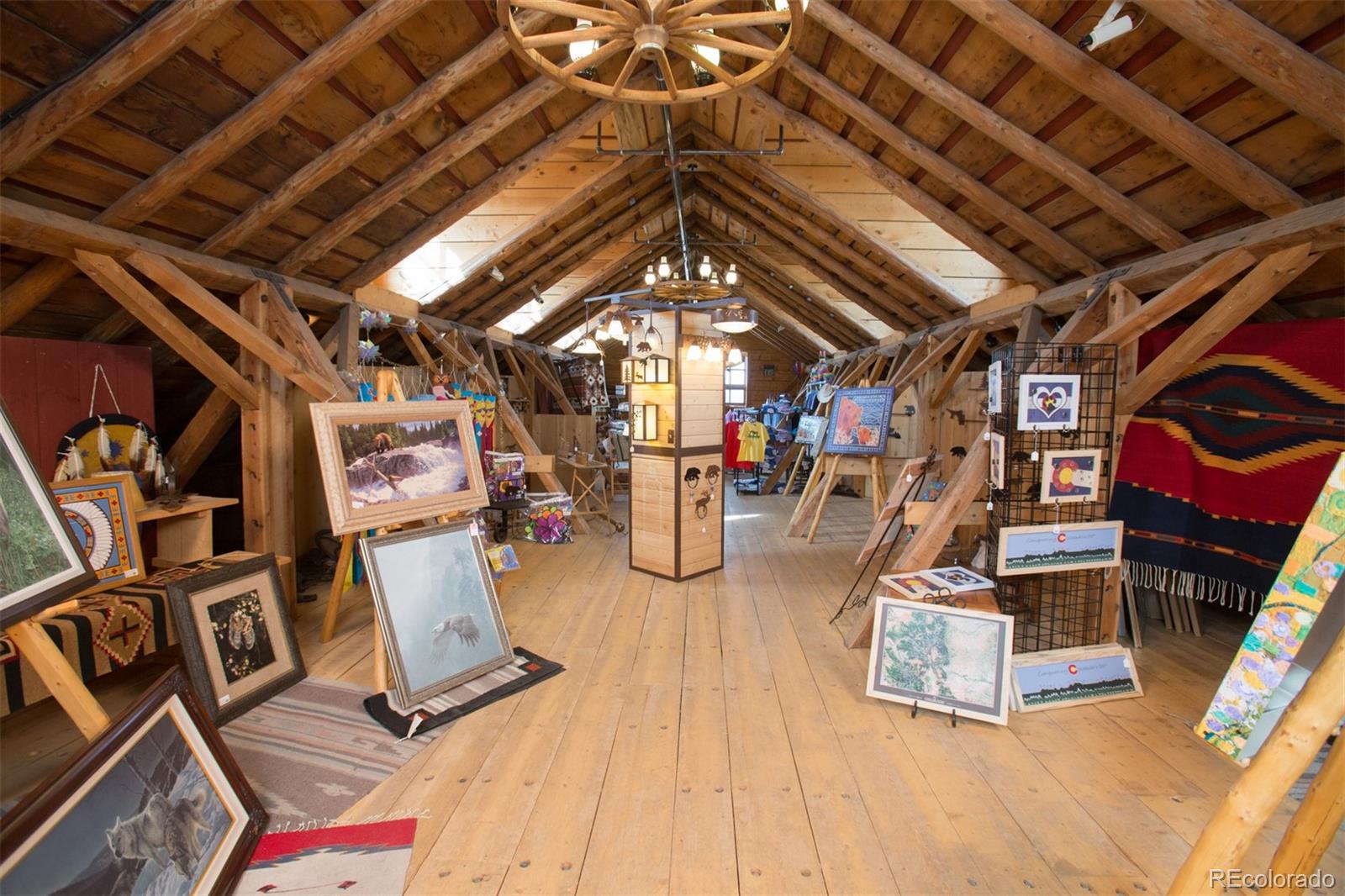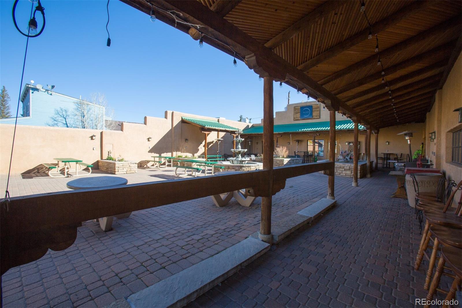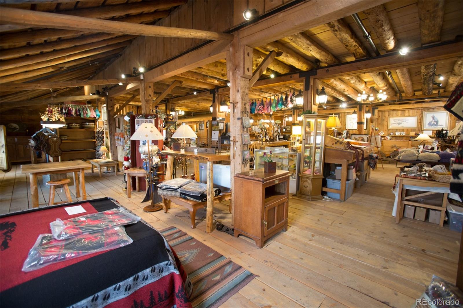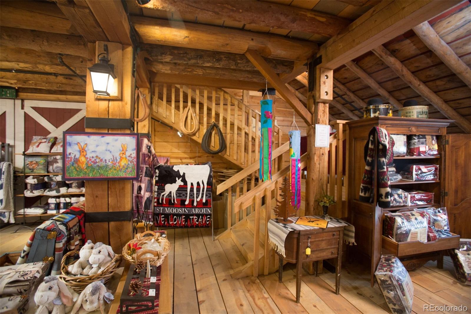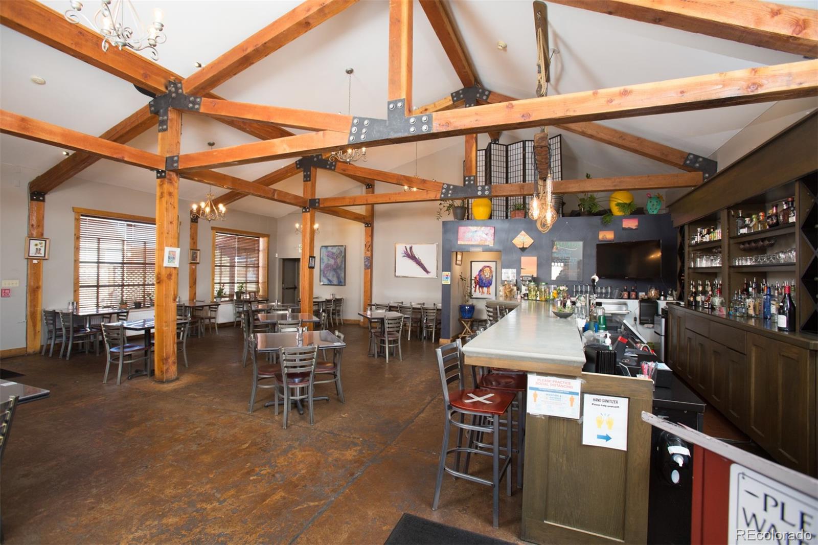 Located at the corner of historic Front Street and 5th Street in Fairplay, Colorado, this property features a century-old livery barn that has been reimagined, along with two adjacent spaces. The building houses three separate businesses. The Old Red Barn, with rustic wood floors and beams, serves as a retail space for art, gifts, and furnishings, featuring two levels, two private bathrooms, a mechanical room, and storage. The Silver Scoop Creamery is a local favorite serving lunch, ice cream, and fresh baked goods, with tin-plated ceilings, crown molding, a custom-designed bar, antique decor, a full prep kitchen with dish station, ovens, and coolers, and two private bathrooms. Patio seating is available in the front, along with a courtyard with a seasonal fountain and seating for outdoor dining in front of the restaurant space, which is currently vacant. The restaurant has vaulted ceilings with beams and metal accents, a custom-built bar, two private bathrooms, a chef's kitchen including a commercial hood ventilation system, a walk-in cooler, and a full dish station. There is also a private office and a storage warehouse area with a delivery bay. The property size is 9587 square feet.