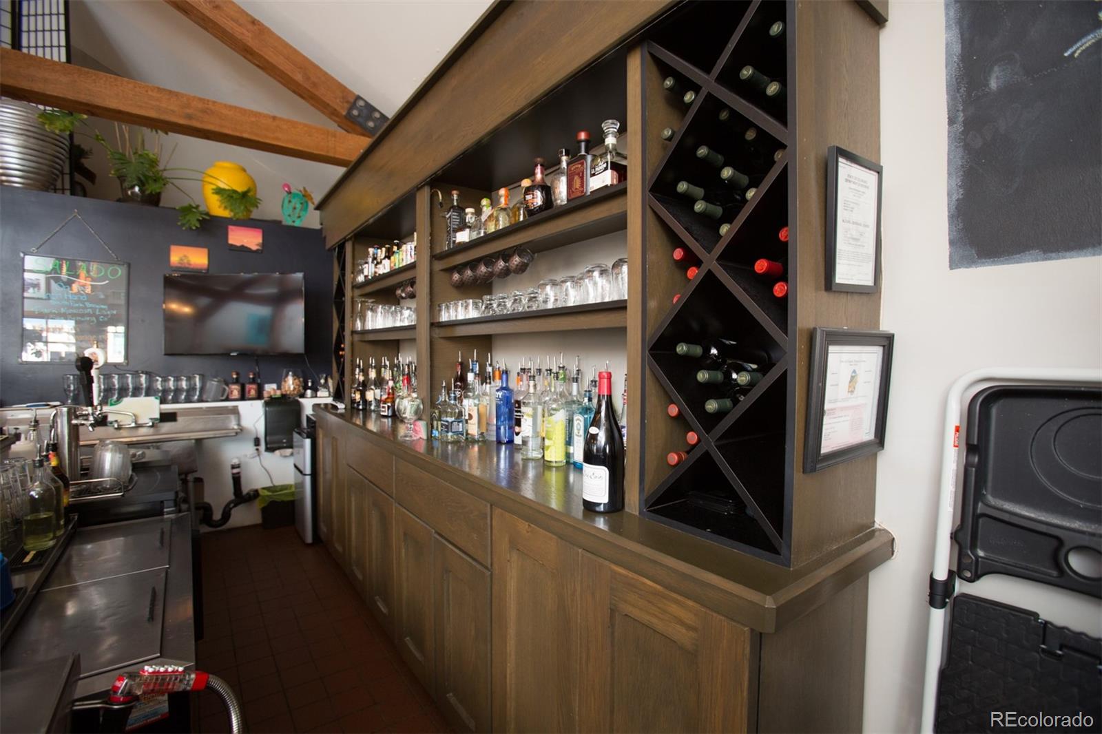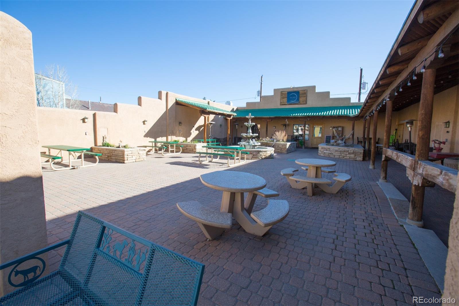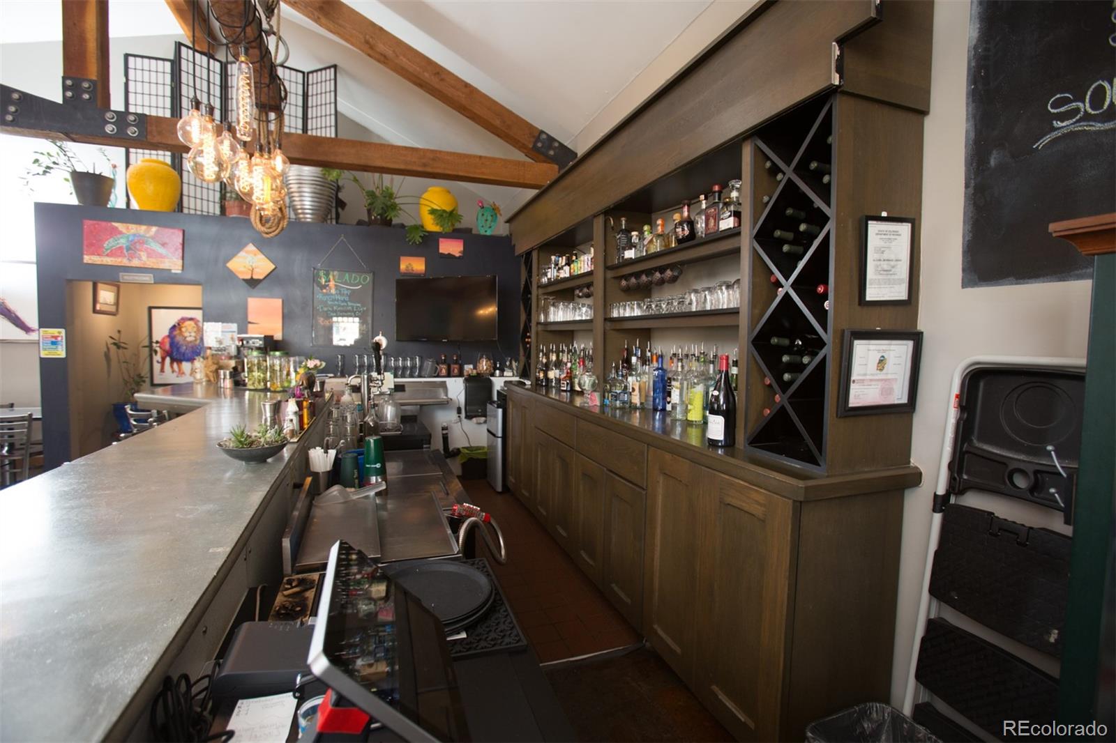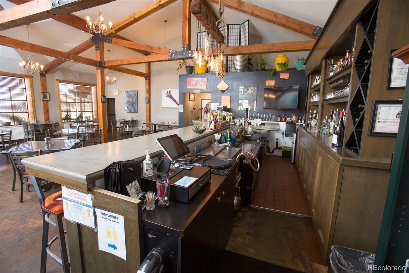 Located at the corner of historic Front Street and 5th Street in Fairplay, Colorado, this property features a century-old livery barn that has been reimagined, along with two adjacent spaces. The building houses three separate businesses. The Old Red Barn, with rustic wood floors and beams, serves as a retail space for art, gifts, and furnishings, featuring two levels, two private bathrooms, a mechanical room, and storage. The Silver Scoop Creamery is a local favorite serving lunch, ice cream, and fresh baked goods, with tin-plated ceilings, crown molding, a custom-designed bar, antique decor, a full prep kitchen with dish station, ovens, and coolers, and two private bathrooms. Patio seating is available in the front, along with a courtyard with a seasonal fountain and seating for outdoor dining in front of the restaurant space, which is currently vacant. The restaurant has vaulted ceilings with beams and metal accents, a custom-built bar, two private bathrooms, a chef's kitchen including a commercial hood ventilation system, a walk-in cooler, and a full dish station. There is also a private office and a storage warehouse area with a delivery bay. The property size is 9587 square feet.