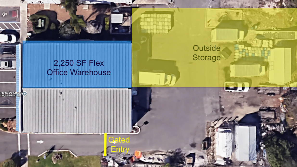 2,250 SF flex space with warehouse and outside storage.