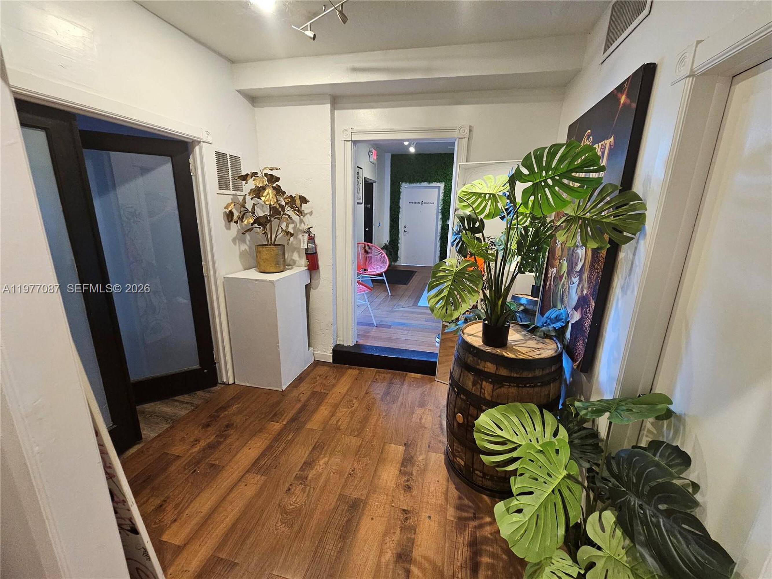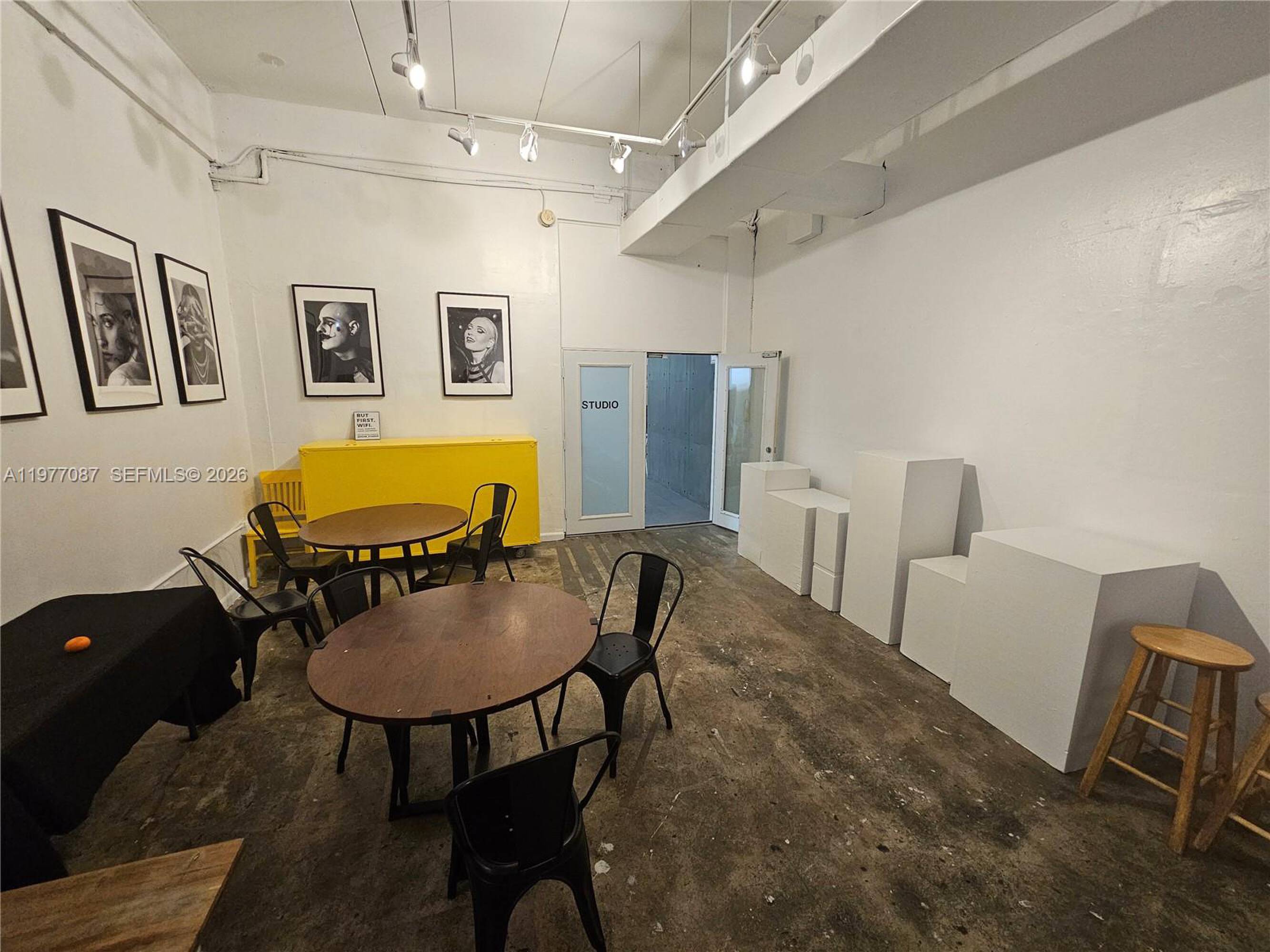 This ground-level commercial space in Midtown/Downtown Miami offers approximately 8,298 square feet with high ceilings and multiple rooms. The versatile space includes multiple open areas, a kitchenette, and two bathrooms. It features dual entrances and access to a large shared parking lot with 14 off-street fenced parking spaces. The parking is shared with a spa also located on the first floor. The space is suitable for a creative office, showroom, yoga or wellness studio, art gallery, luxury retail, or salon. Currently operating as a trendy co-working space with offices above, the location provides excellent synergy and visibility in a dynamic district. The property is zoned for office and mixed-use. Gross rent includes all utilities except cable and internet.