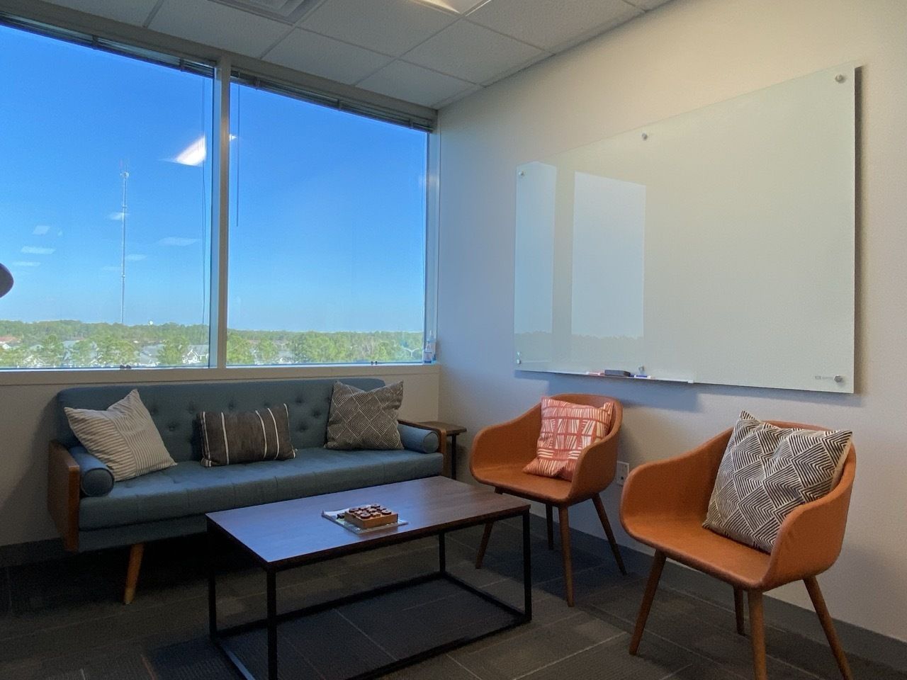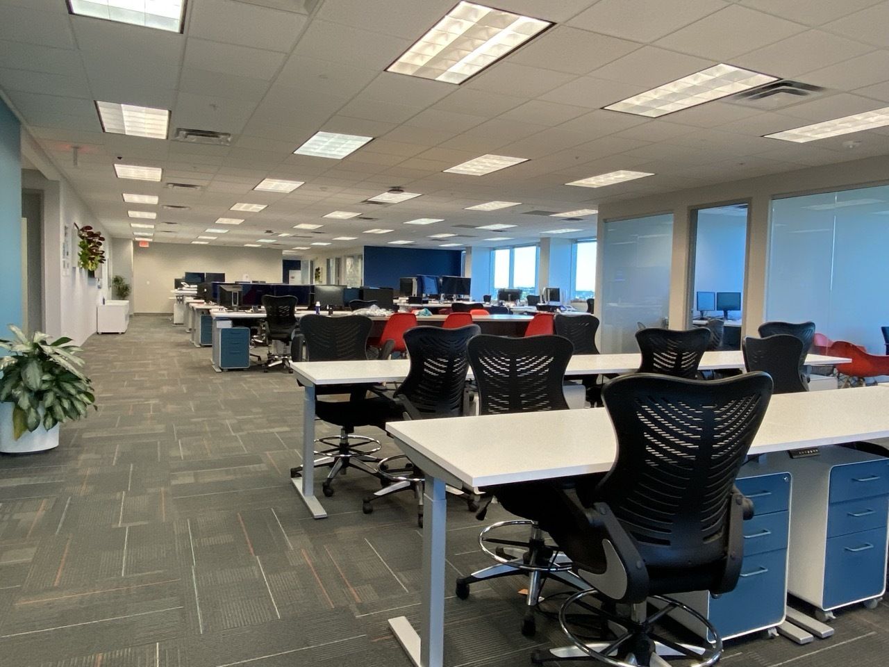 Move-in ready office space with abundant meeting space and furniture.