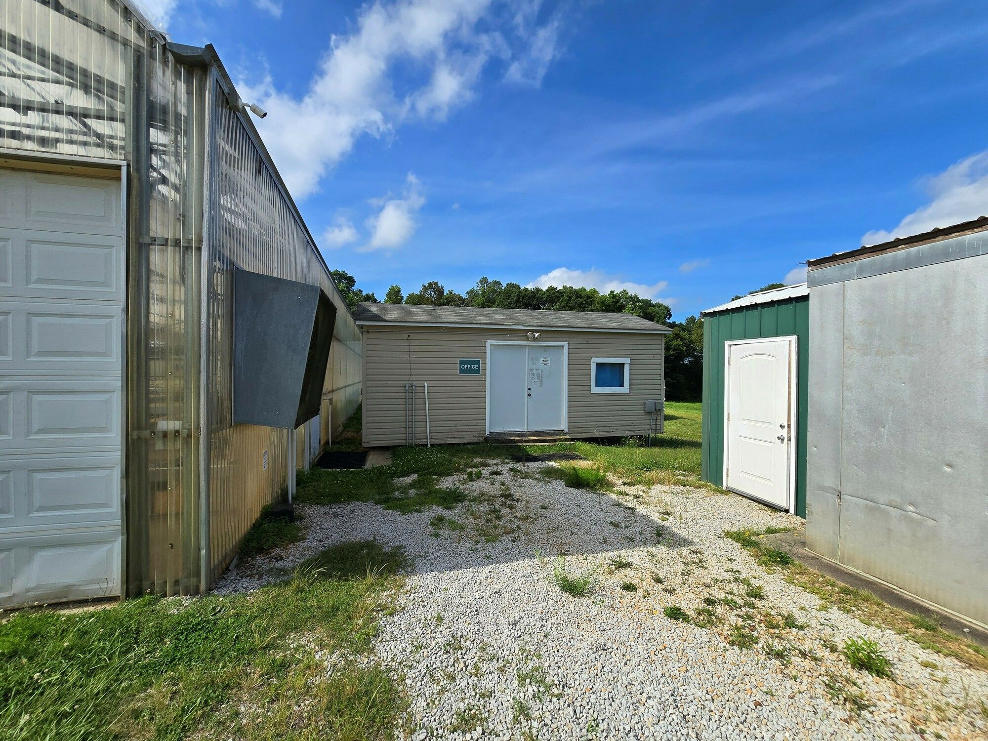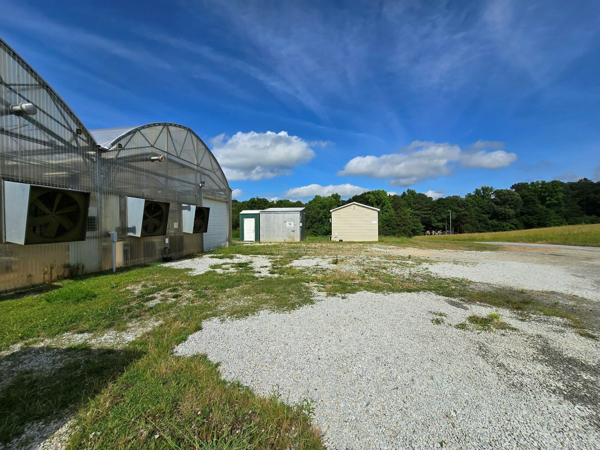 Greenhouse and storage buildings in Bowersville, Georgia, for sale.