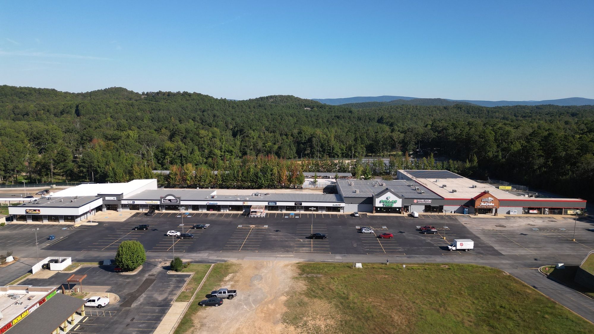 This 50,609 square foot neighborhood retail center is located within Hot Springs Village and features frontage on Highway 7. Available retail suites range in size from 900 to 2,400 square feet. The center is anchored by Dollar General and is surrounded by a mix of retail, dining, and service-based businesses, contributing to consistent foot traffic. Excellent signage opportunities are available to attract attention from passing vehicles. The property is well-positioned in a growing trade area that includes both established neighborhoods and new developments. Traffic counts on Highway 7 are 6,300 AADT.
