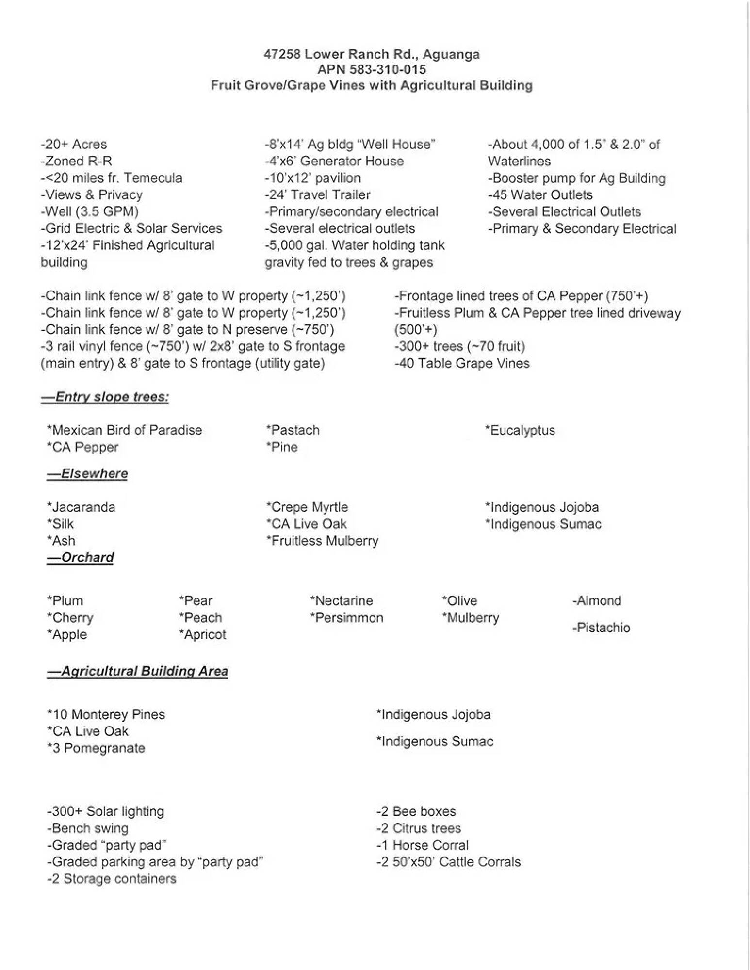 Aguanga Land with Vineyard, Orchard