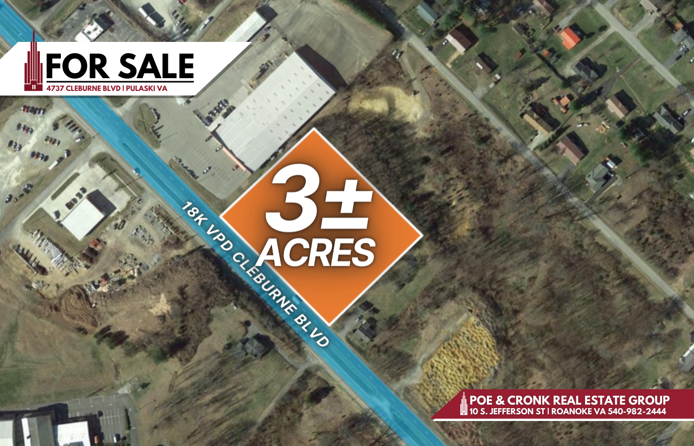 This is a flat retail lot situated along the busy Route 100 corridor, located between Interstate 81 and US Route 11. The property features approximately 395 feet of road frontage and is exposed to a daily traffic volume of 18,000 vehicles. It is positioned at a retail hub connecting New River Community College, Pulaski County High School, the Volvo Truck Factory, and Randolph Park. The property is less than 0.25 miles from I-81 and is located just north of Walmart Super Center. Additional adjacent land is available if needed. The lot encompasses approximately 3.0 acres and is located north of I-81, Exit 98, on Cyprus.