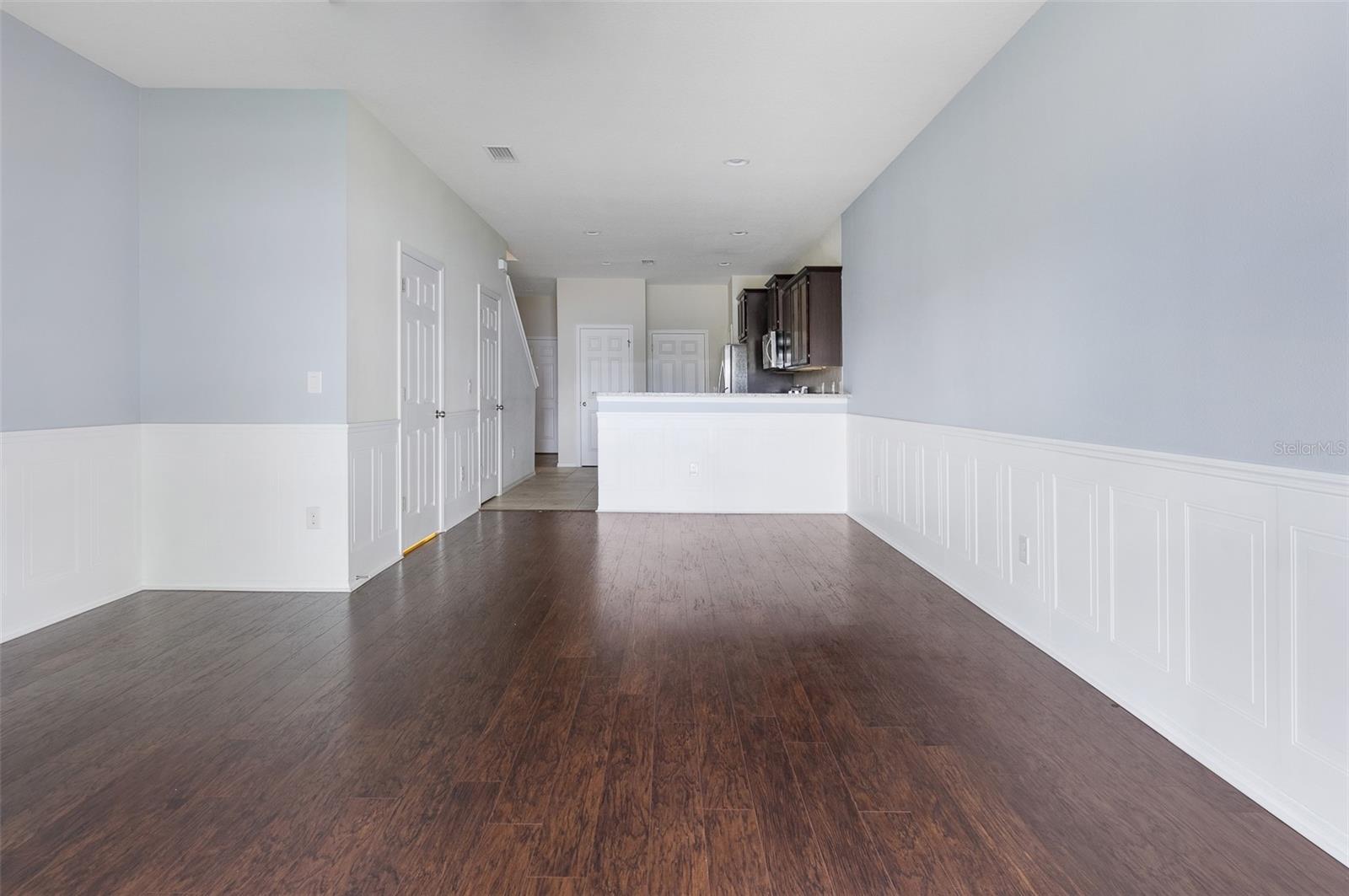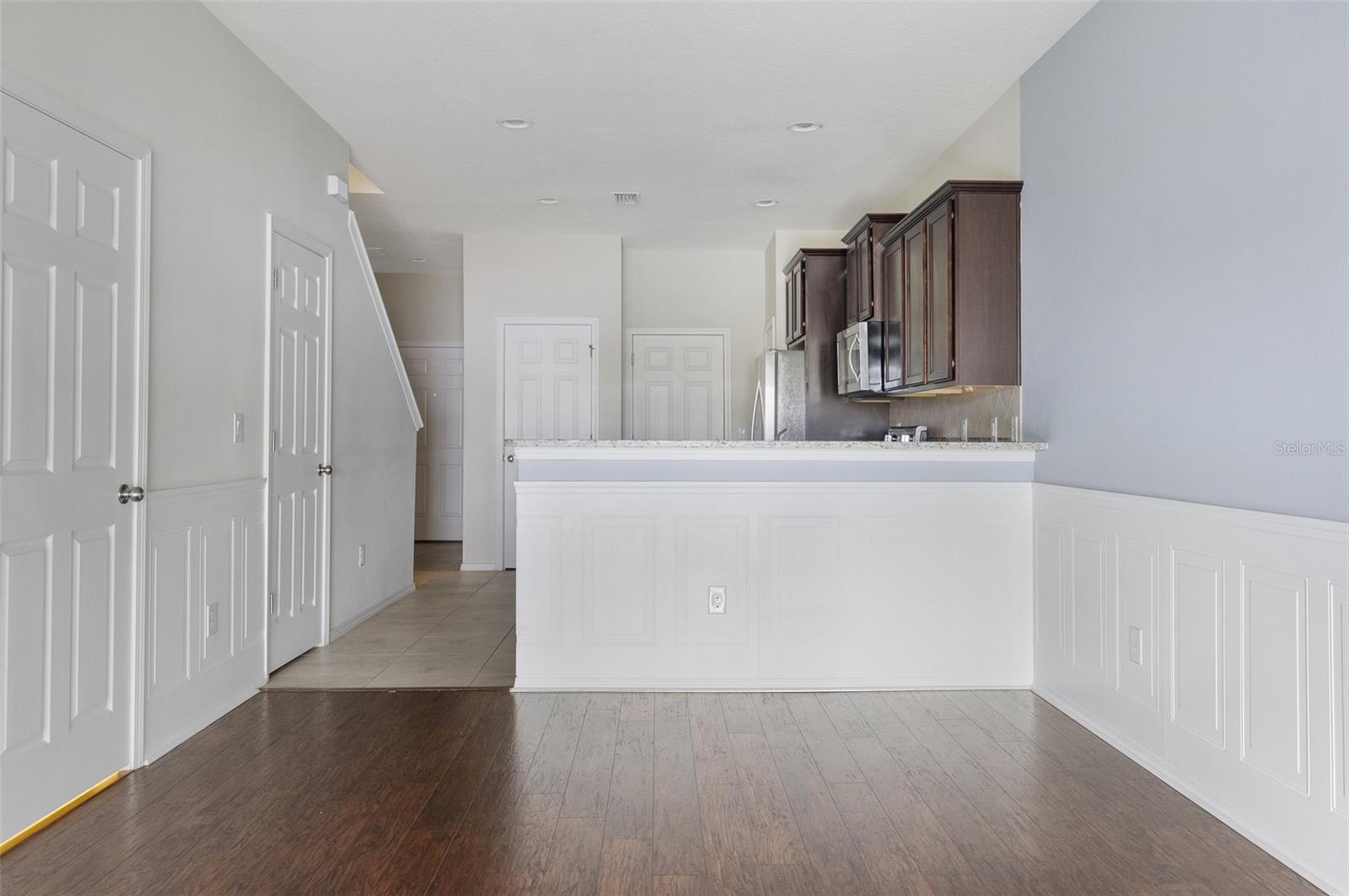 This well-maintained townhome features 2 bedrooms, 2.5 bathrooms, a loft, and a 1-car garage, situated within the gated Harvest Creek Village community in Magnolia Park. The open-concept floor plan includes a main living area with wainscoting and laminate flooring. The kitchen is equipped with granite countertops, stainless steel appliances, a breakfast bar, a pantry, and additional storage space under the stairs. The living area opens to a screened-in patio. Upstairs, the loft provides a versatile space suitable for a home office or media room. The primary suite includes a large double closet and an en suite bathroom with a double vanity and walk-in shower. A second bedroom and a full bathroom with a tub/shower combo are also located upstairs. Laundry facilities are conveniently situated upstairs. Residents have access to community amenities such as multiple pools, playgrounds, a basketball court, walking trails, a clubhouse, a fitness center, and dog parks. The HOA covers water and sewer services. The property is located near downtown Tampa and MacDill Air Force Base, with convenient access to shopping, dining, and entertainment. The property size is 1496 square feet.