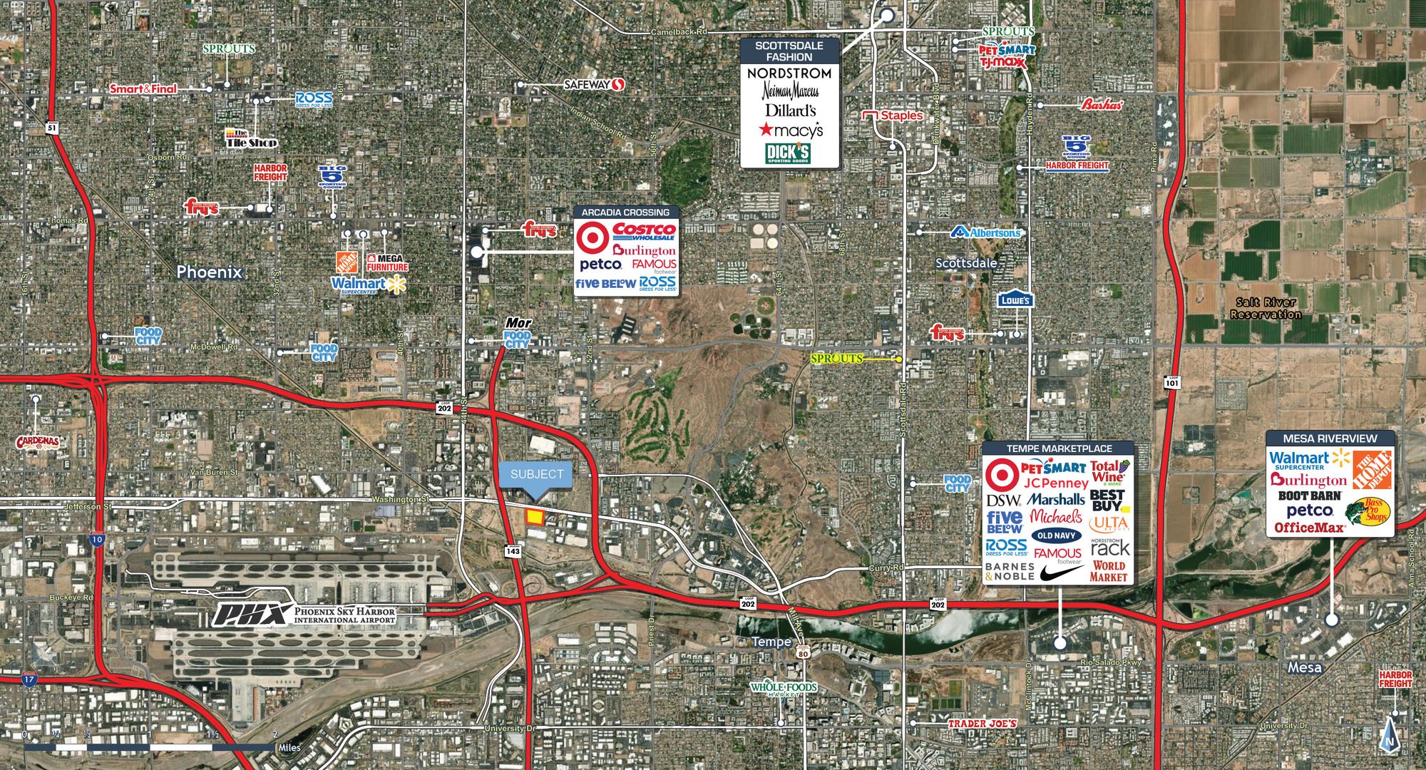 Retail shops in Phoenix, near airport and freeways.
