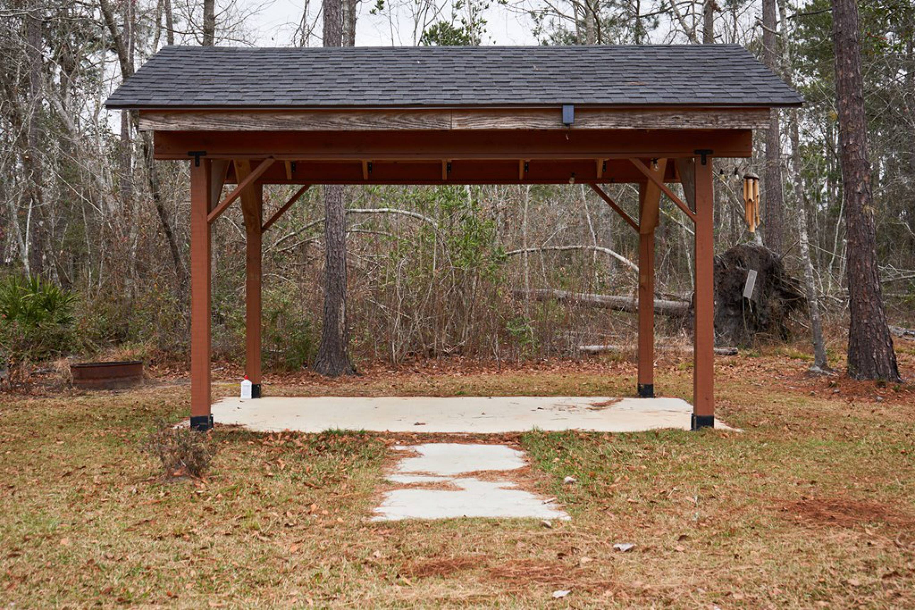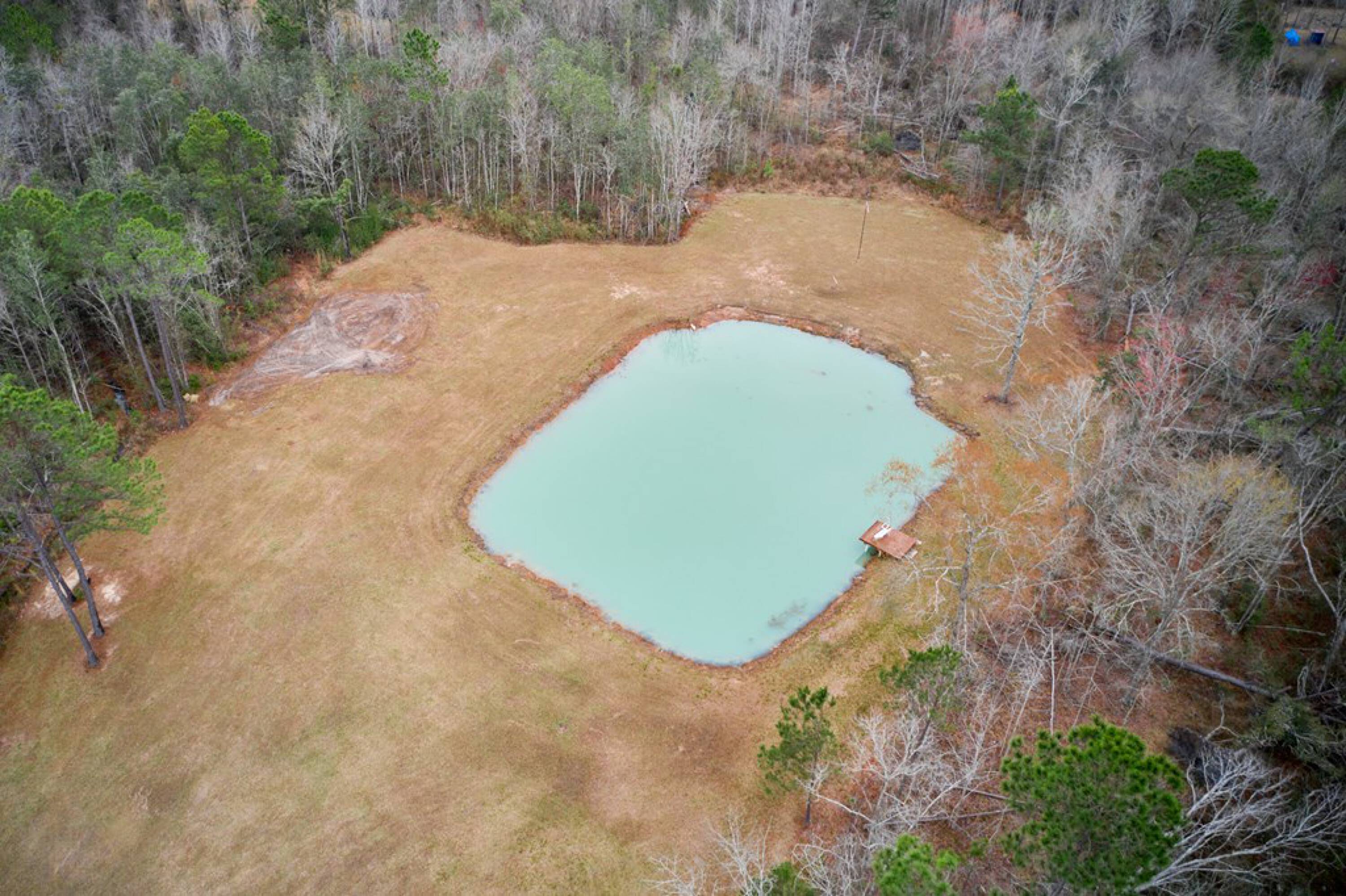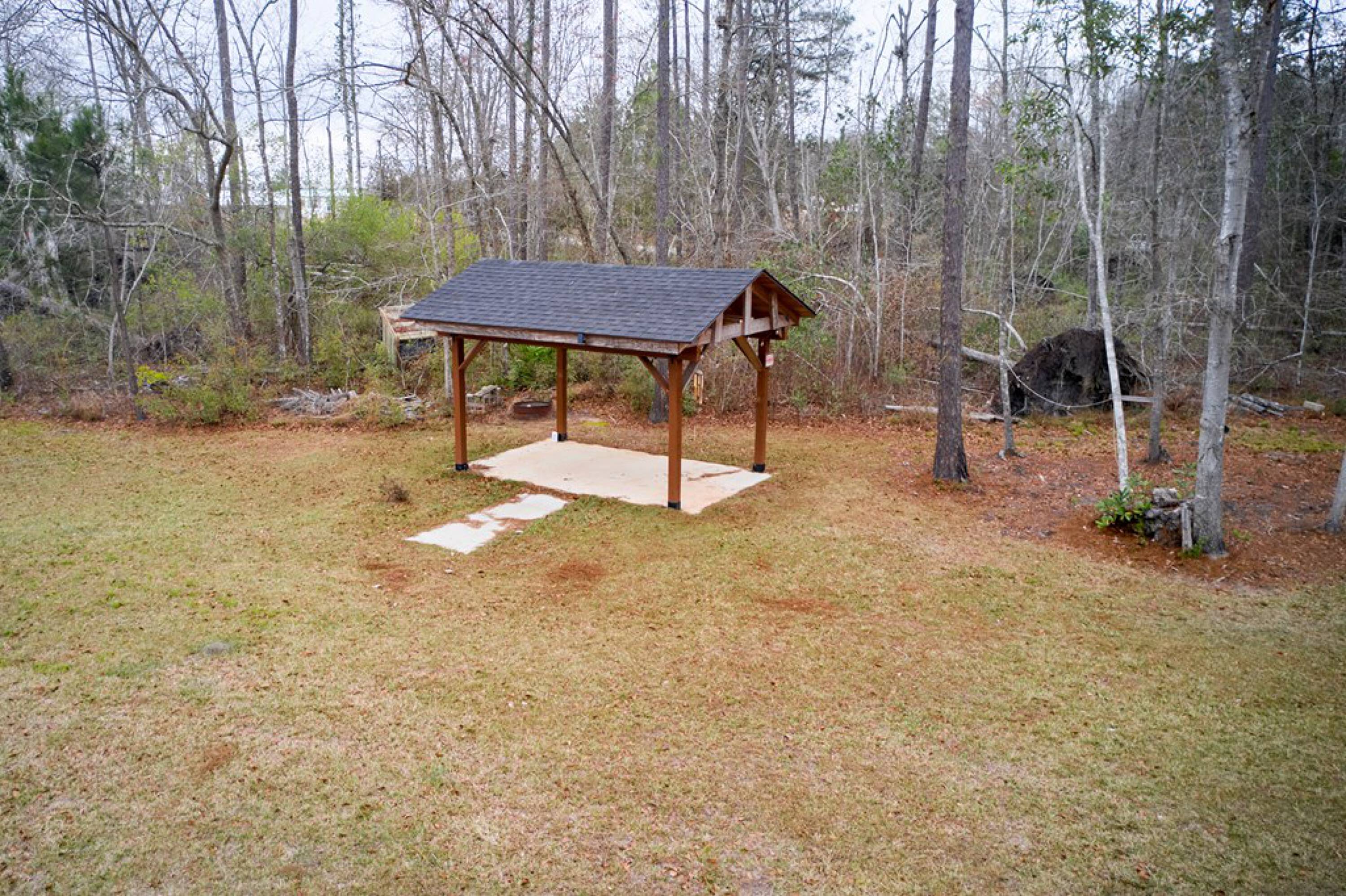 4.98 acres with pond, gazebo, workshop, and RV parking.