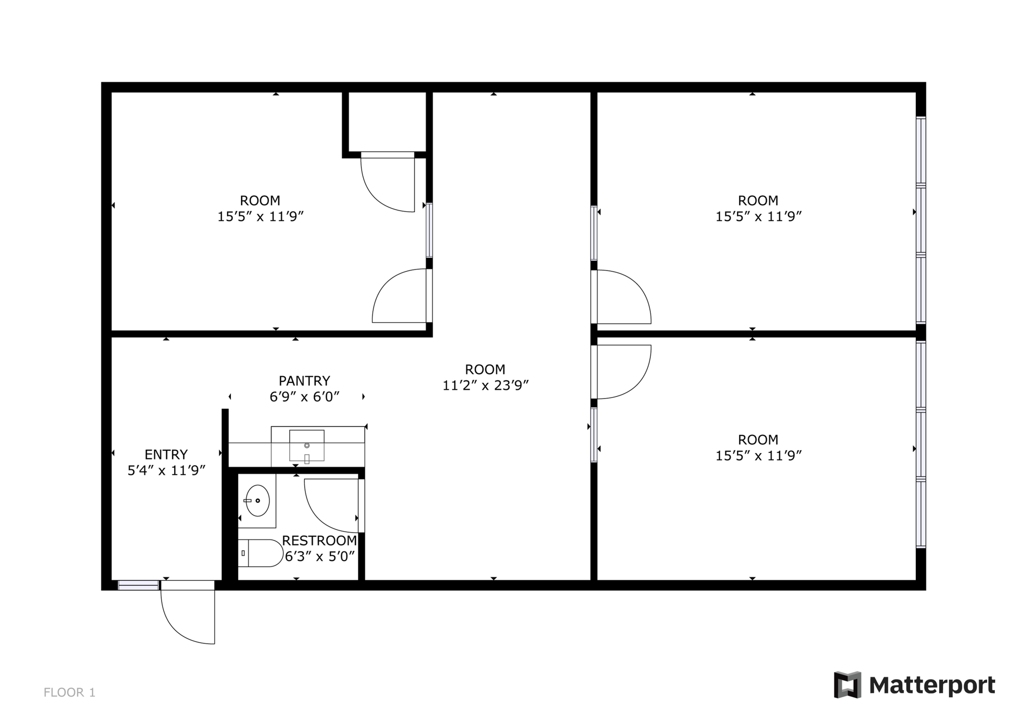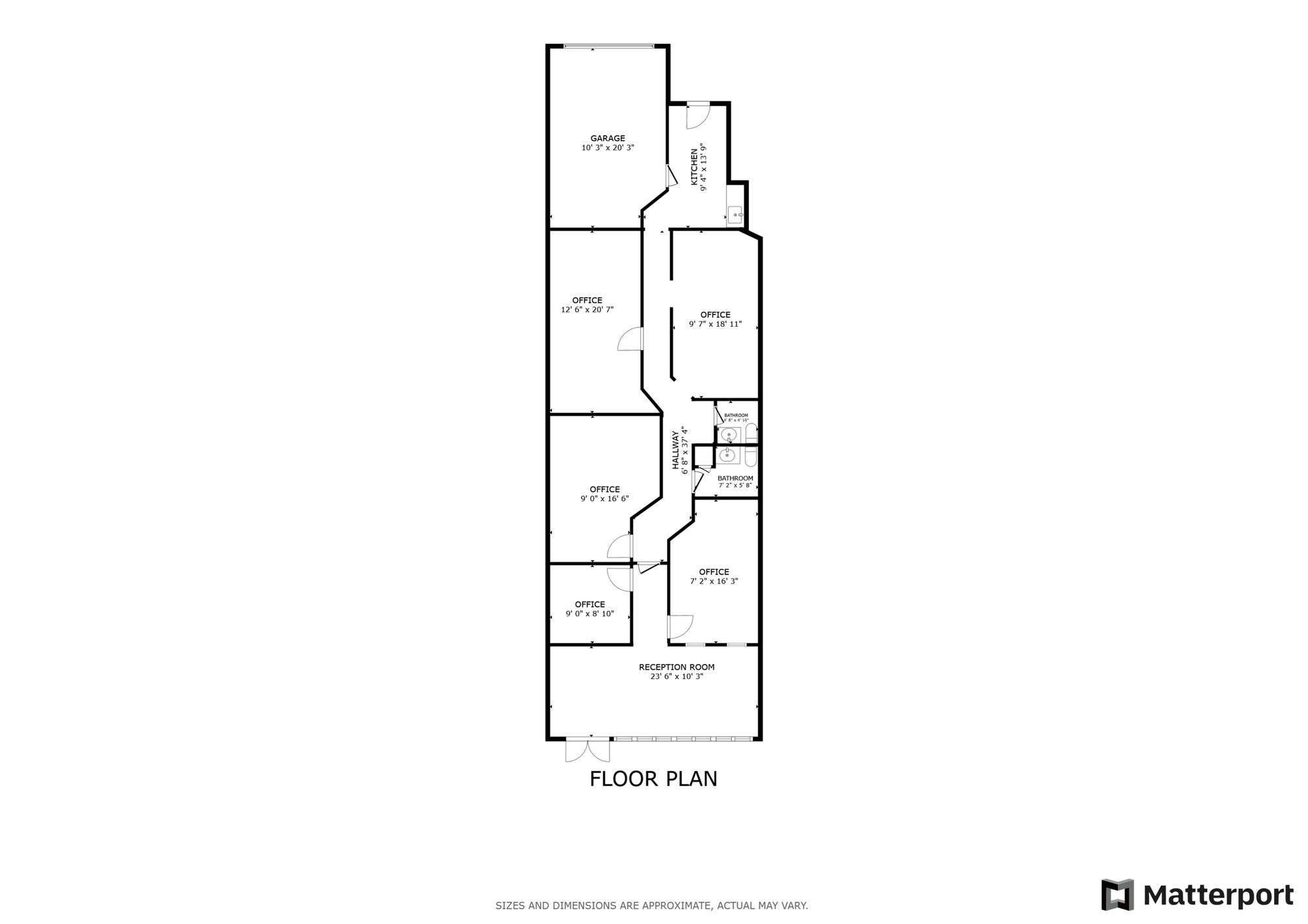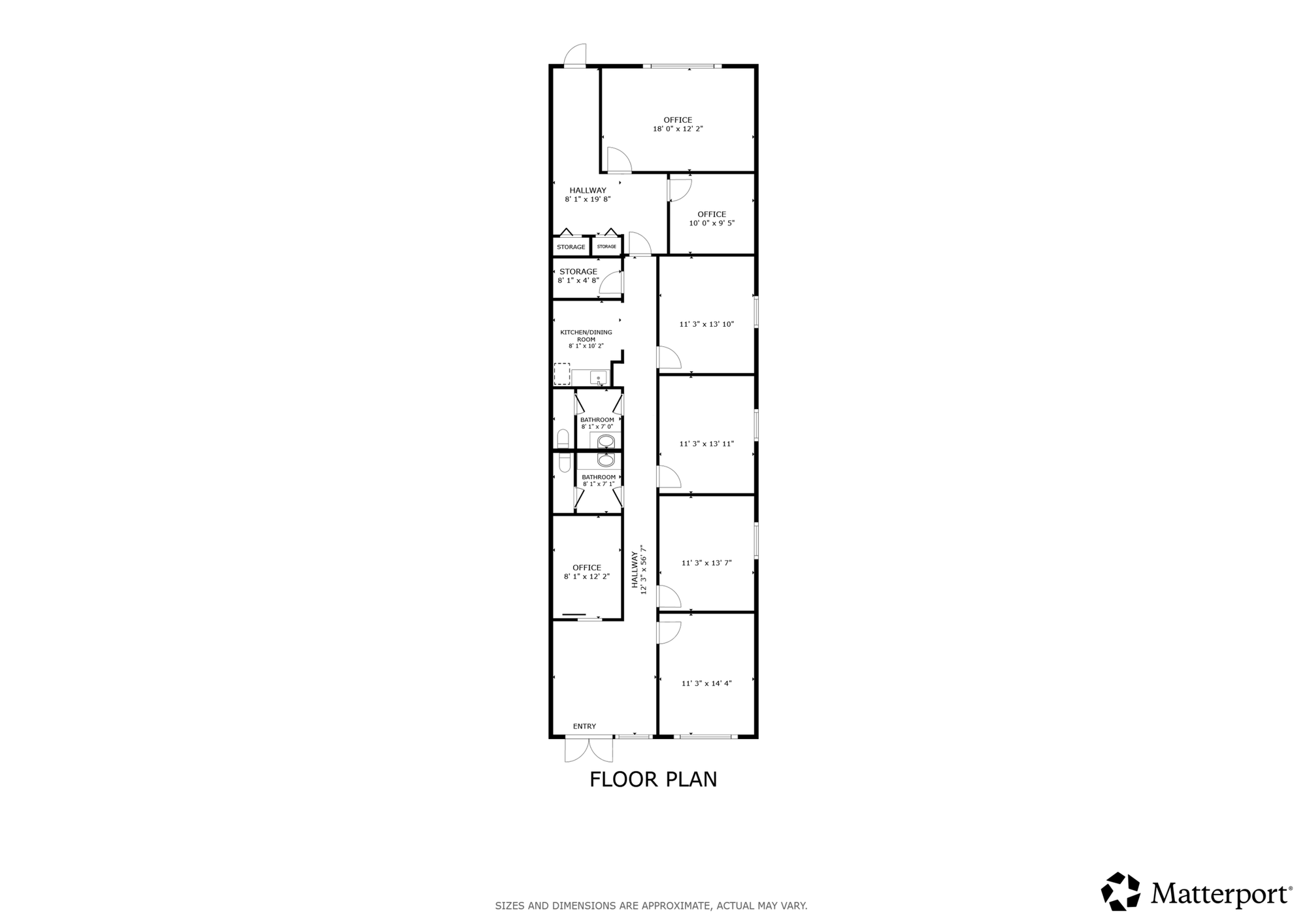 Office building with suites, direct access, functional layout.