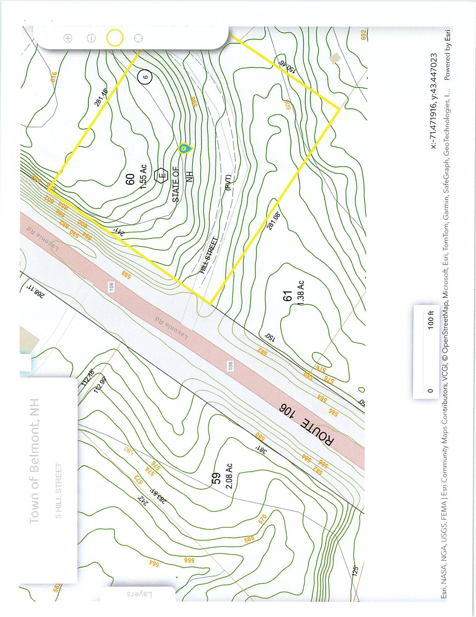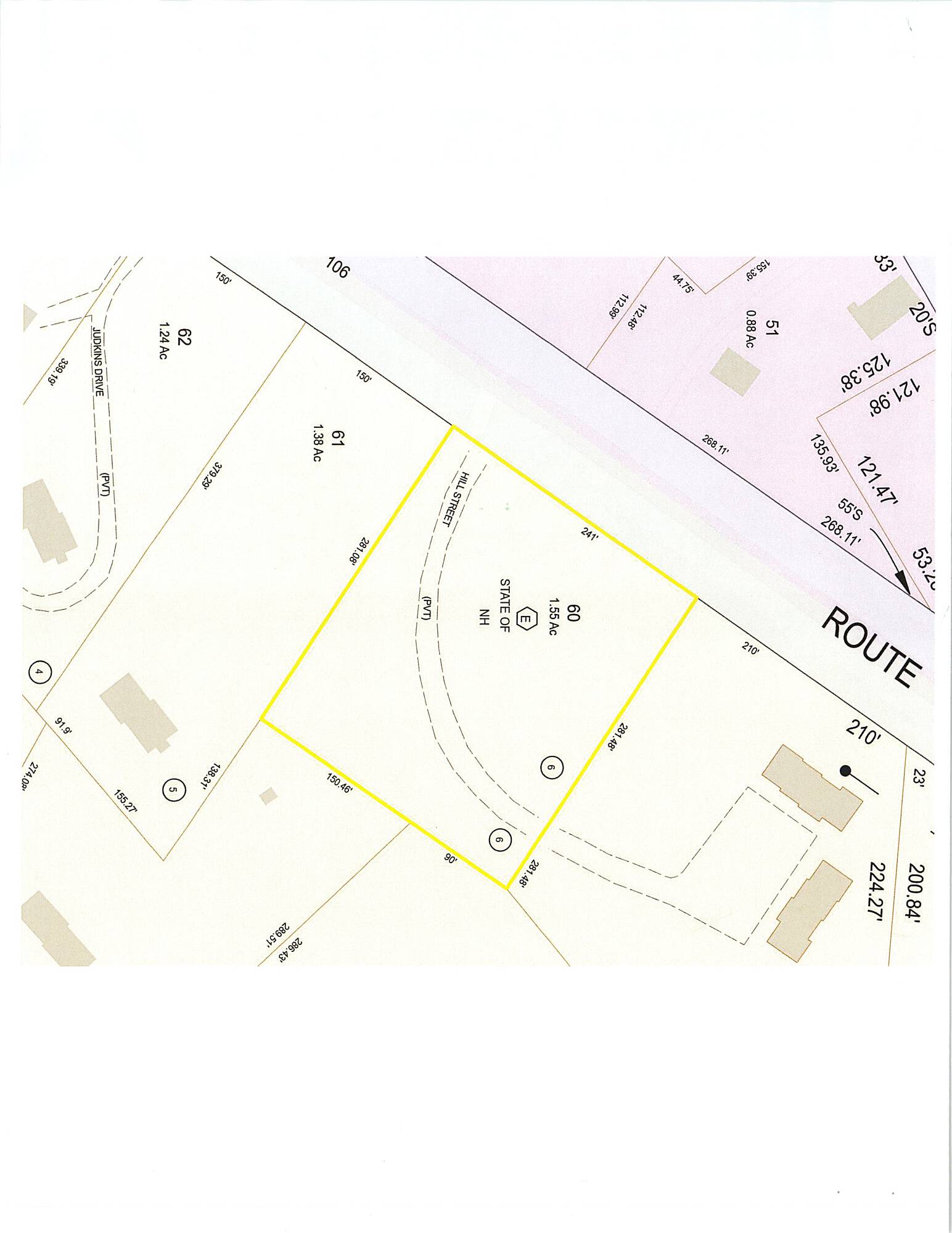 Land with visibility on Route 106 and access on Hill Road.