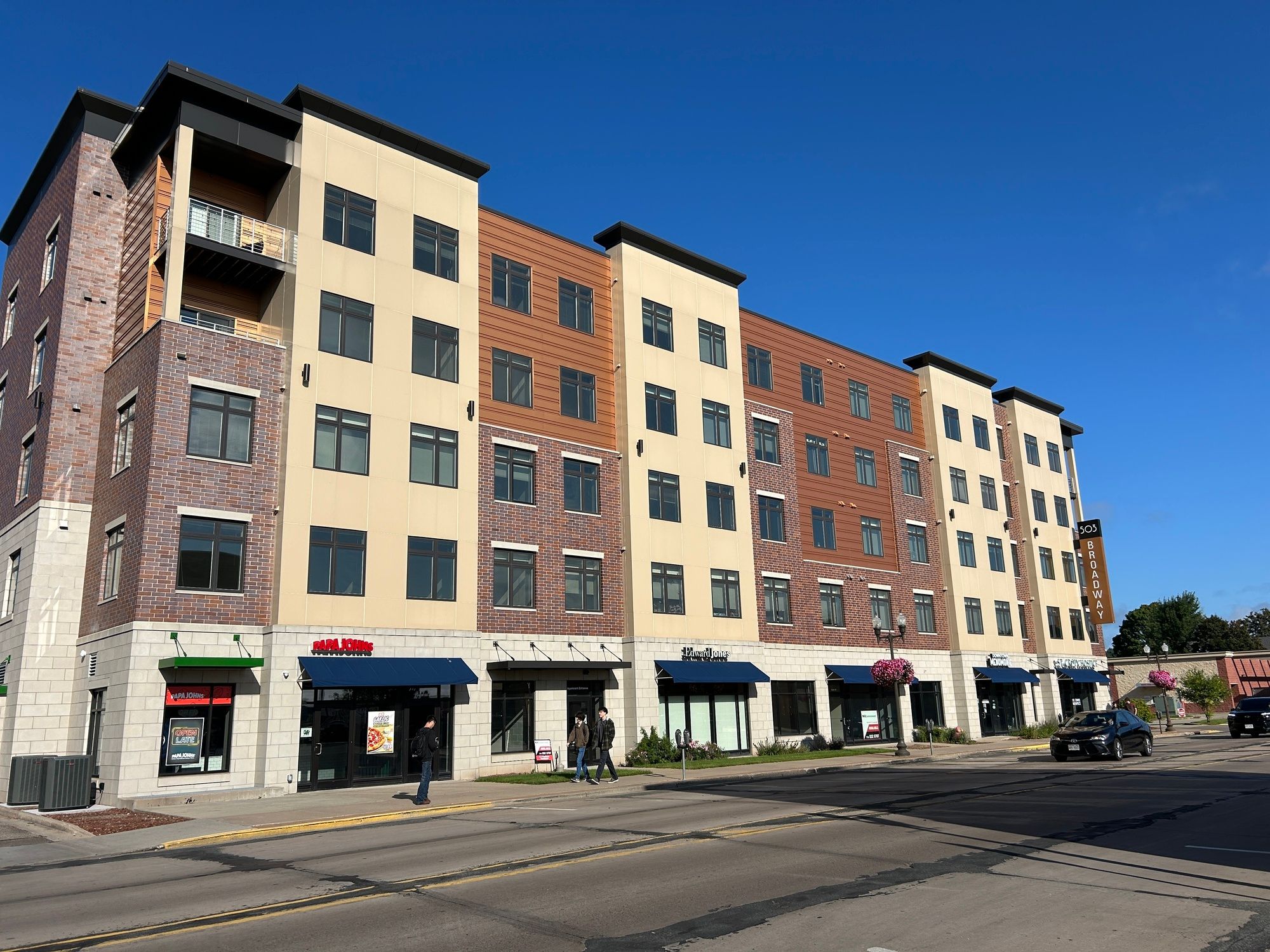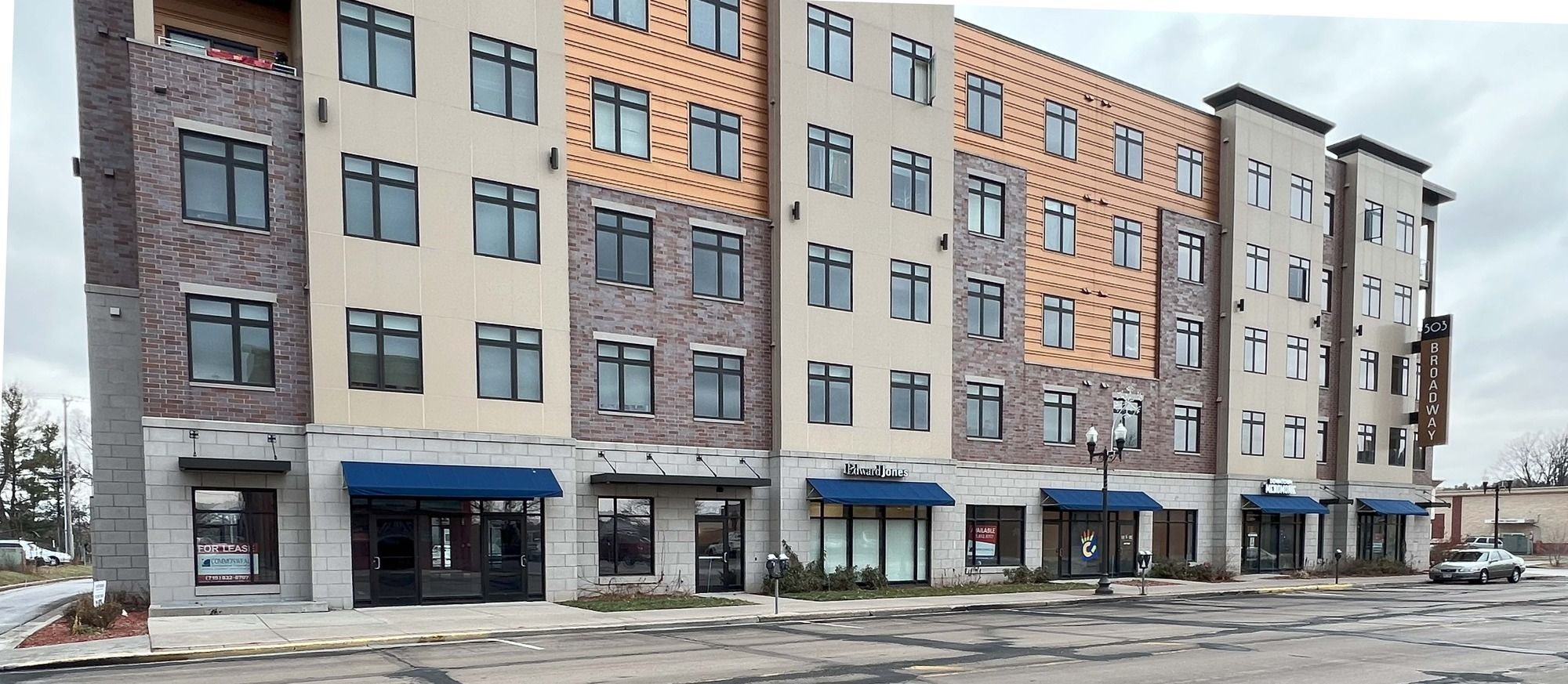 Retail/office space available in mixed-use development near UW-Stout campus.