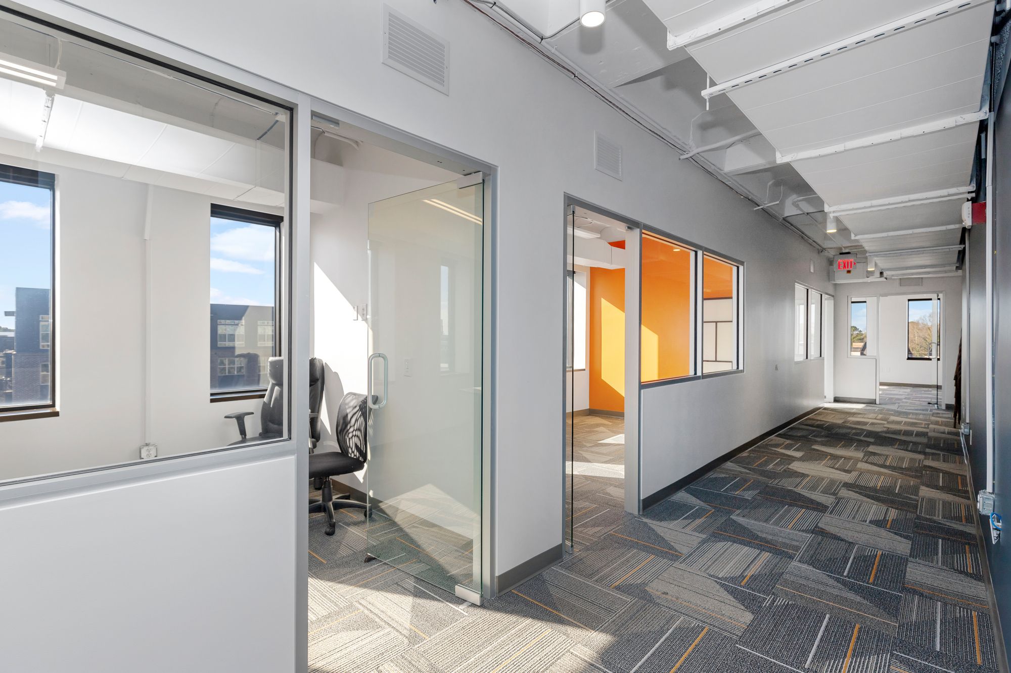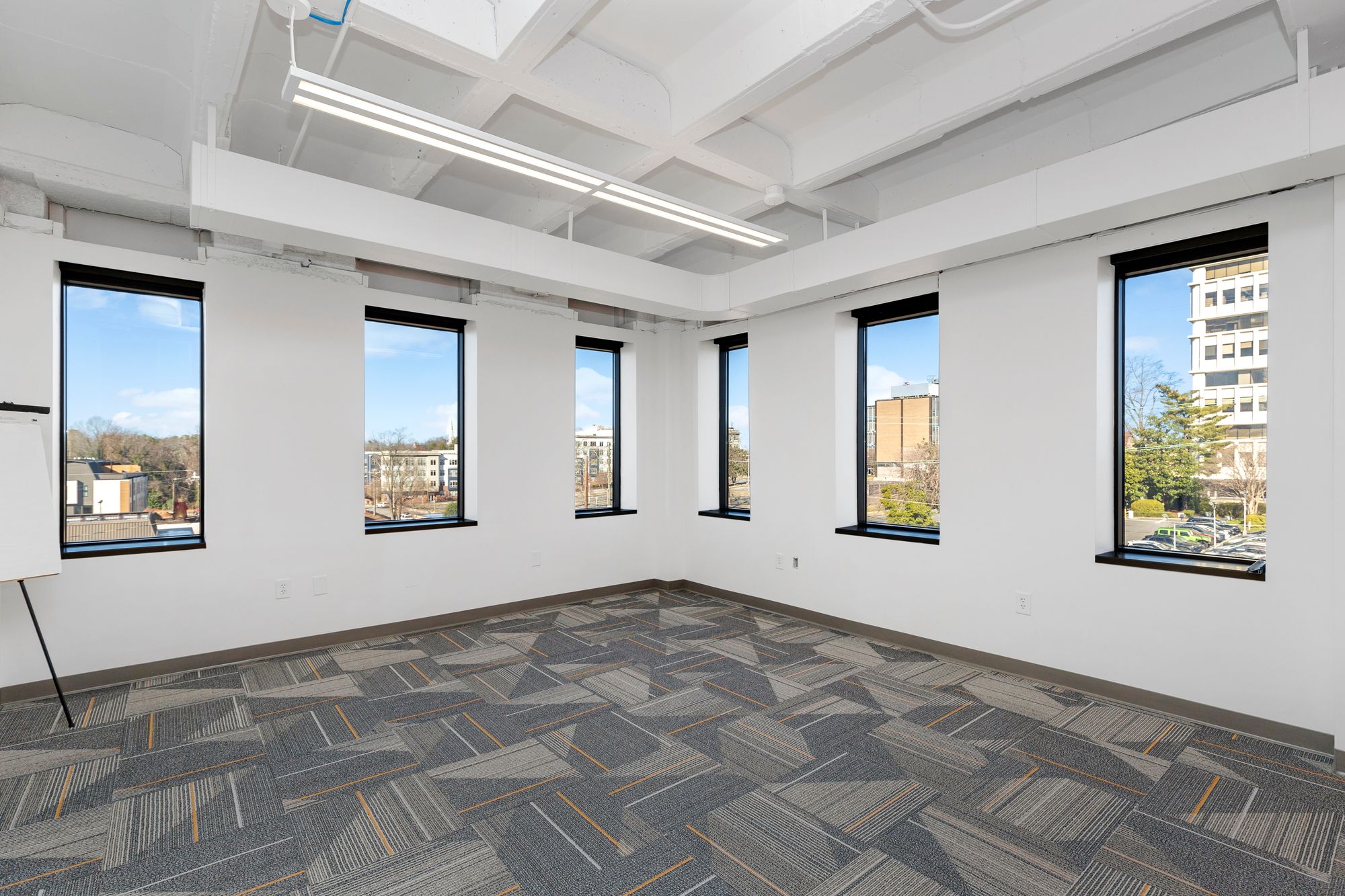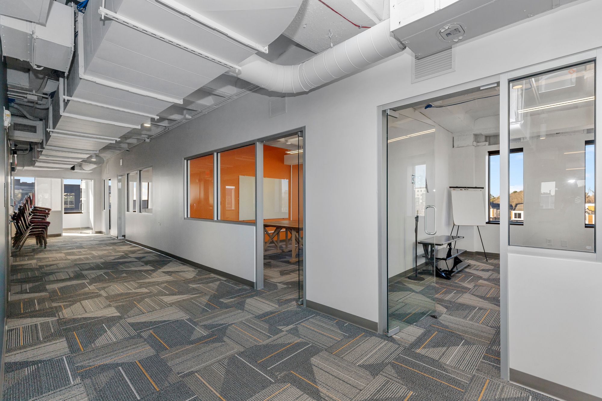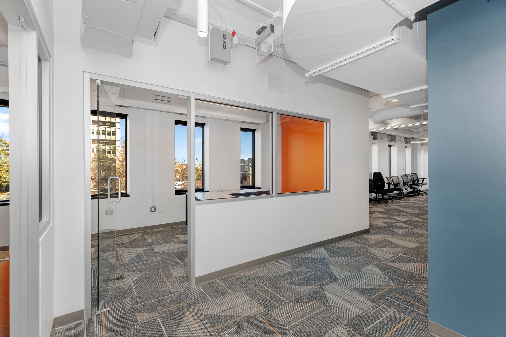 Move-in ready office space in downtown Durham with modern amenities.
