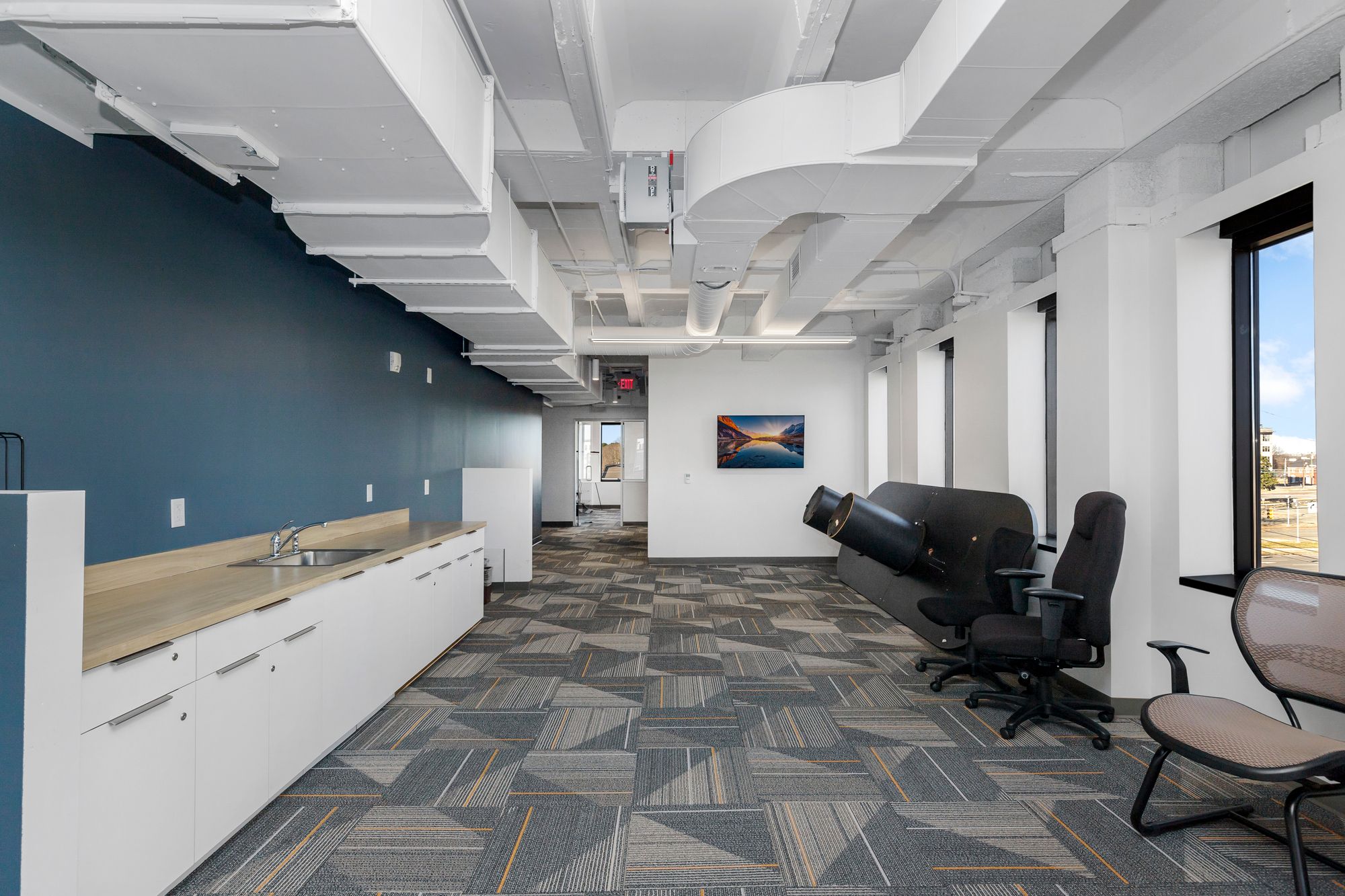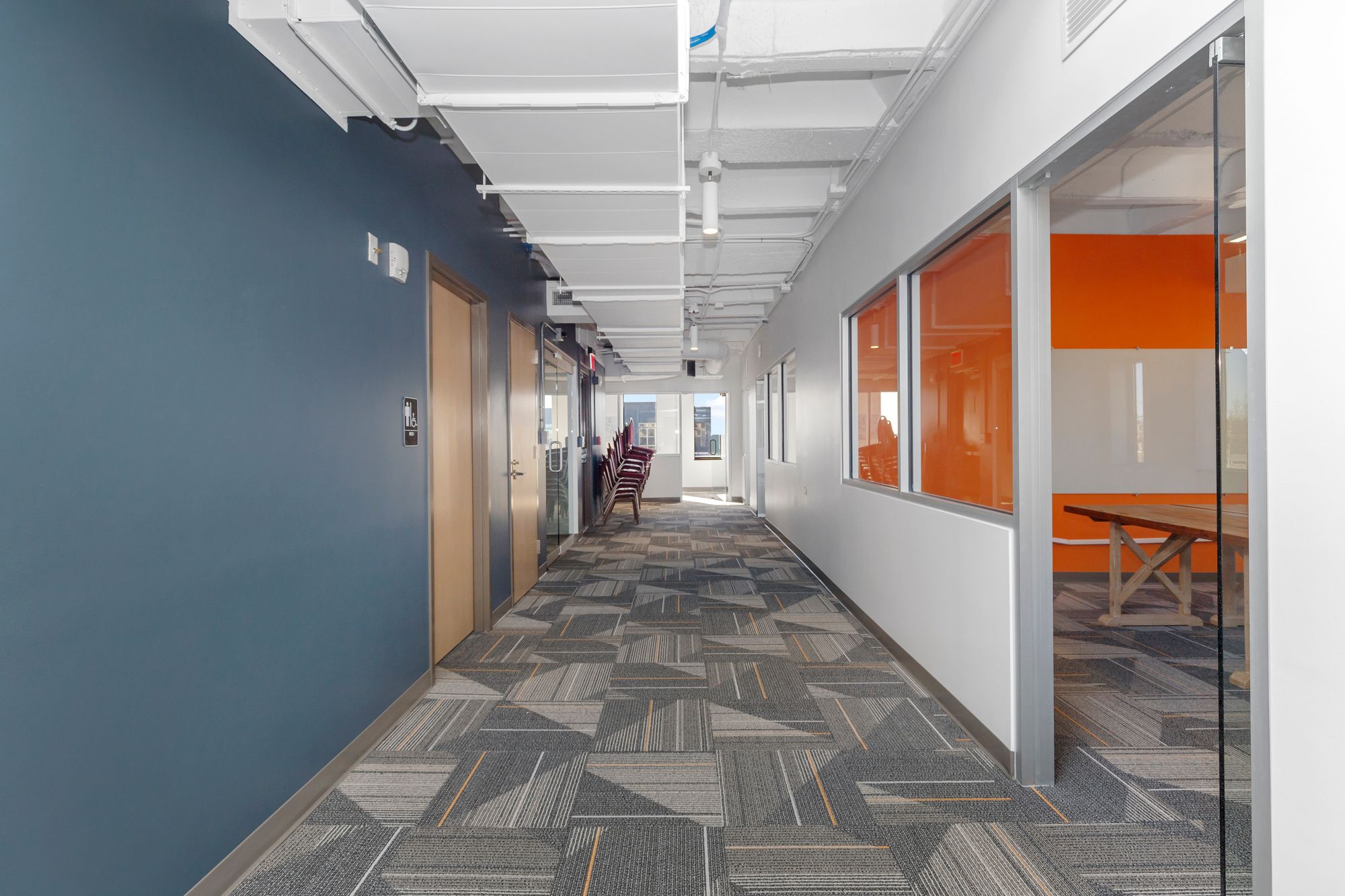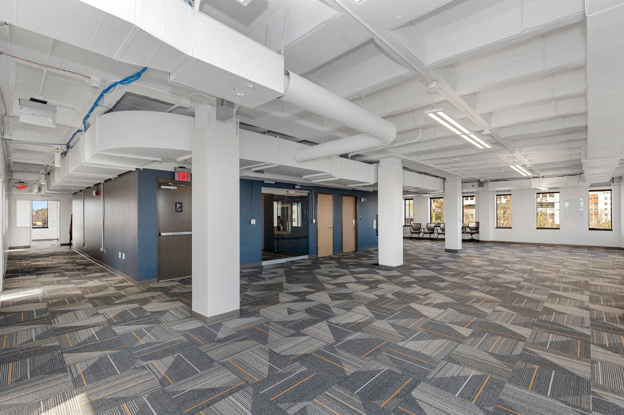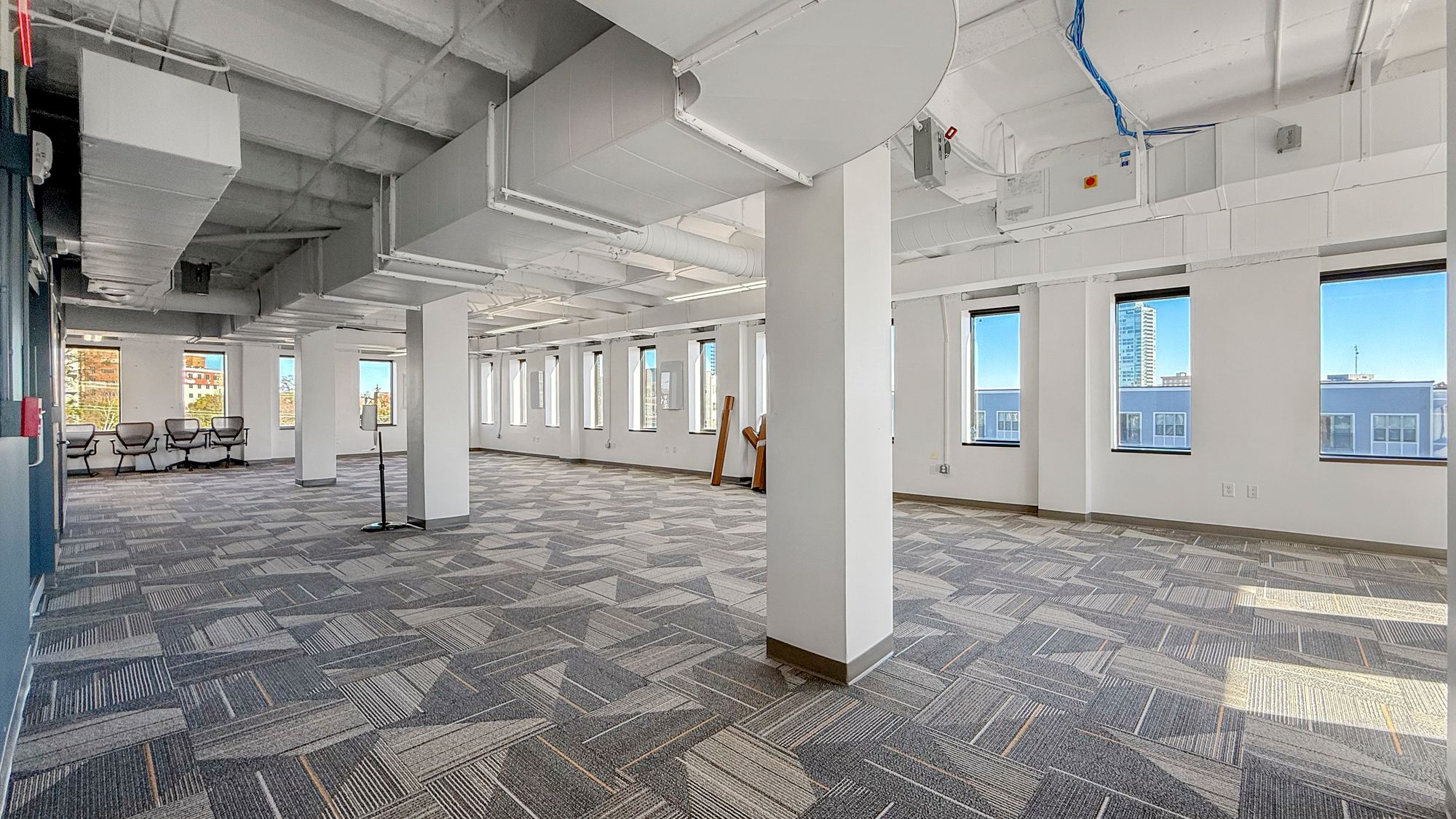 Move-in ready office space in downtown Durham with modern amenities.