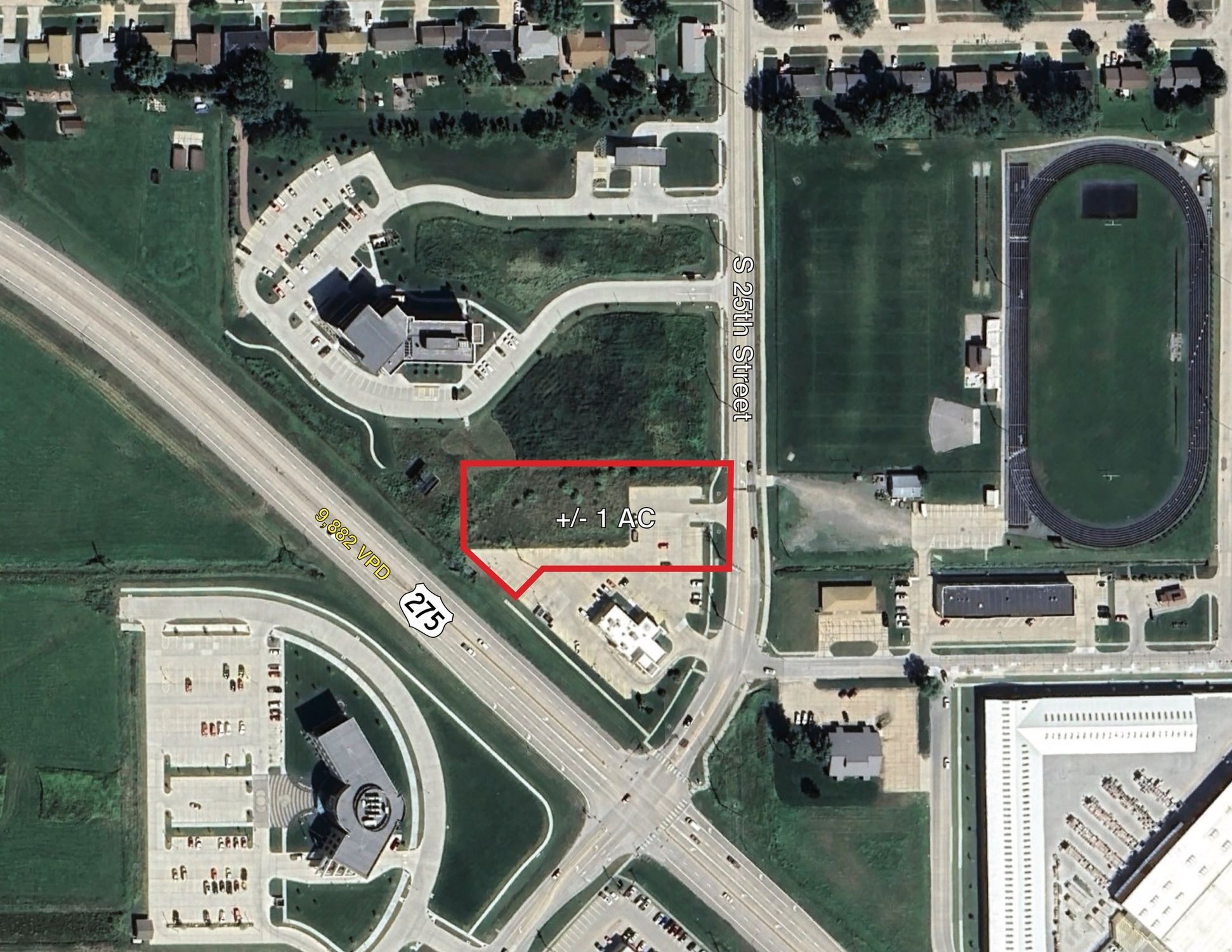 Approximately one acre of retail land with highway visibility.