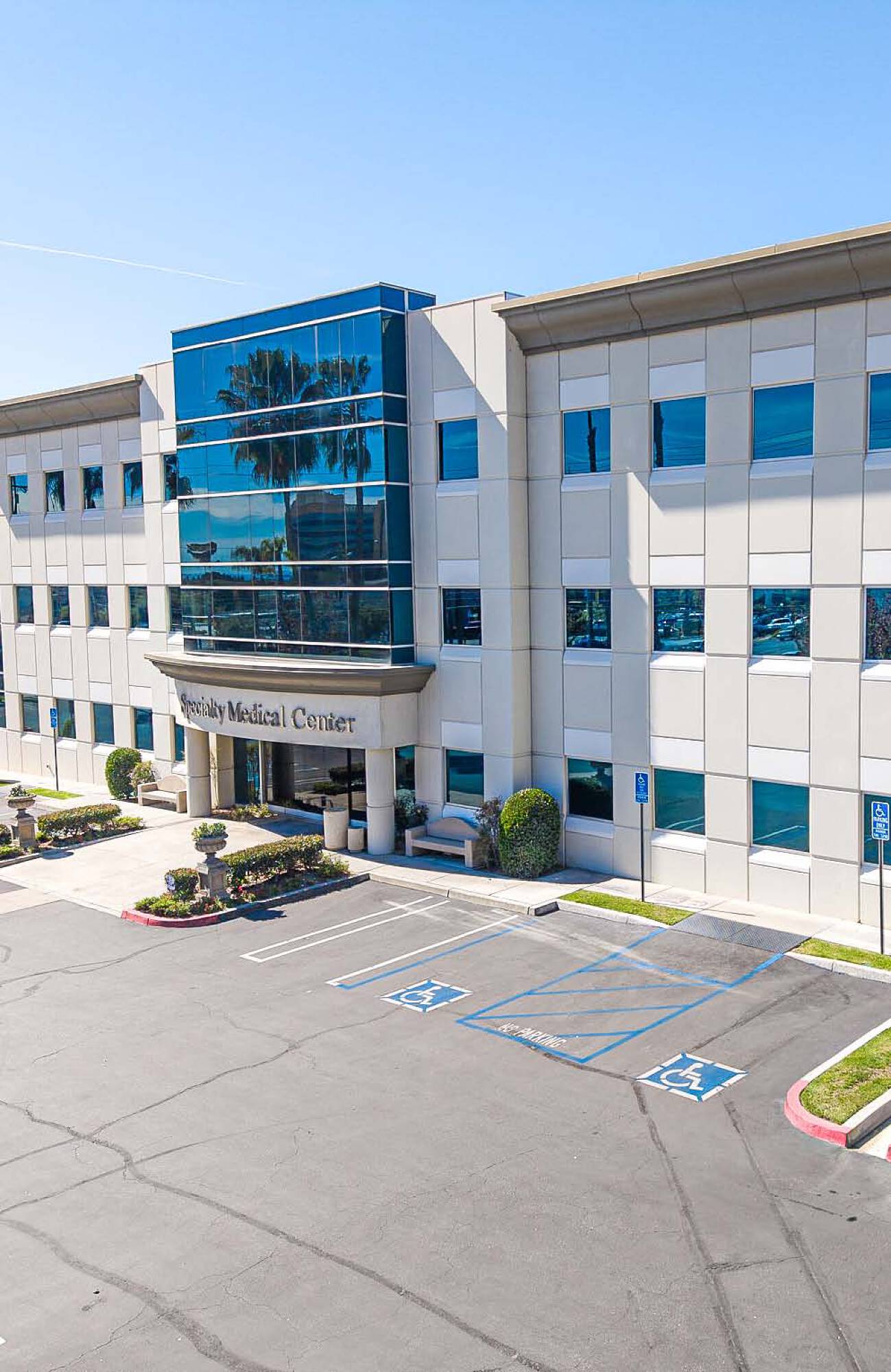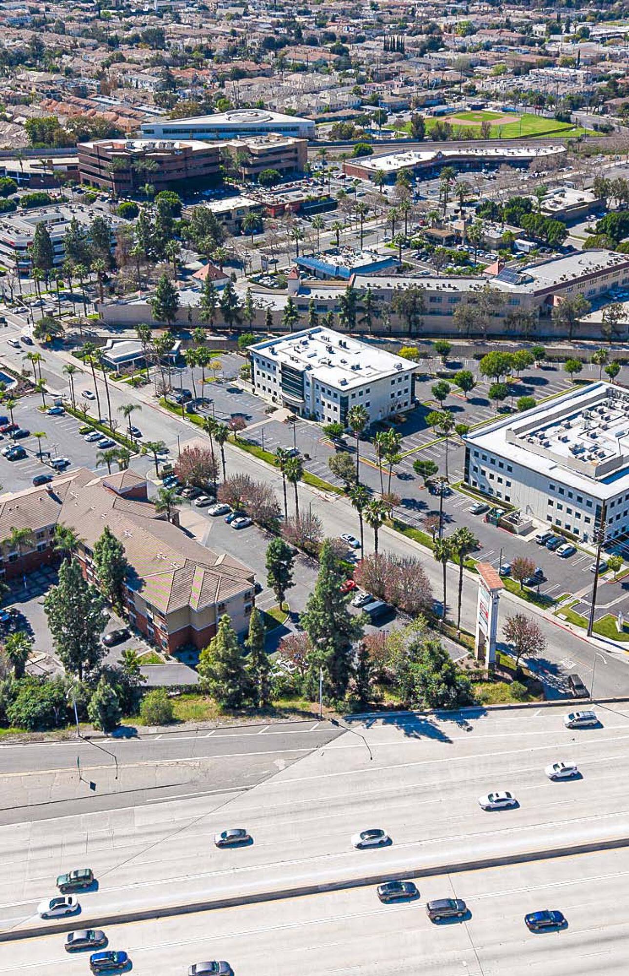 Highly visible office building near 210 Freeway and USC Arcadia Hospital.