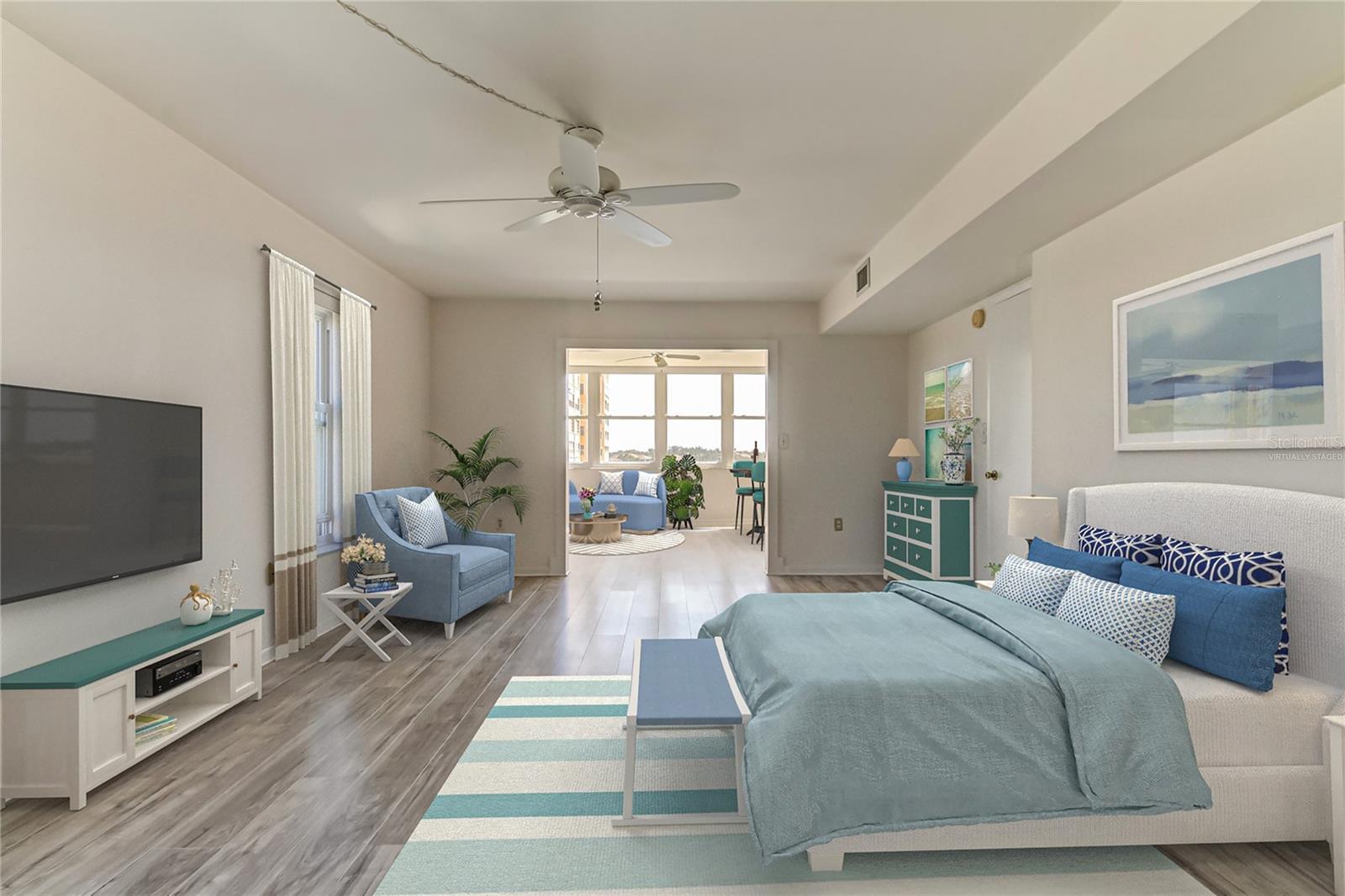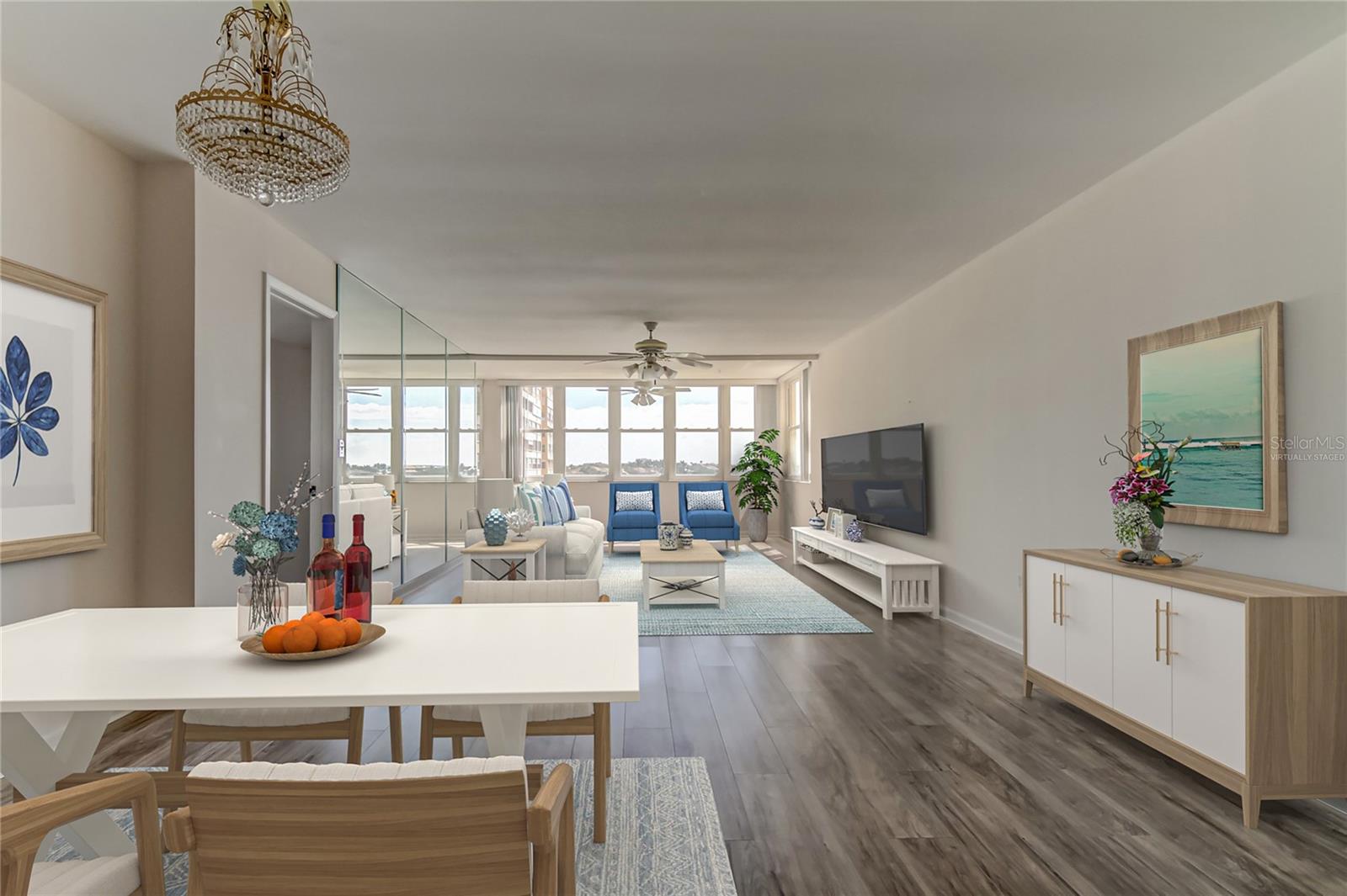 Updated 1760 sqft corner unit with panoramic water views.