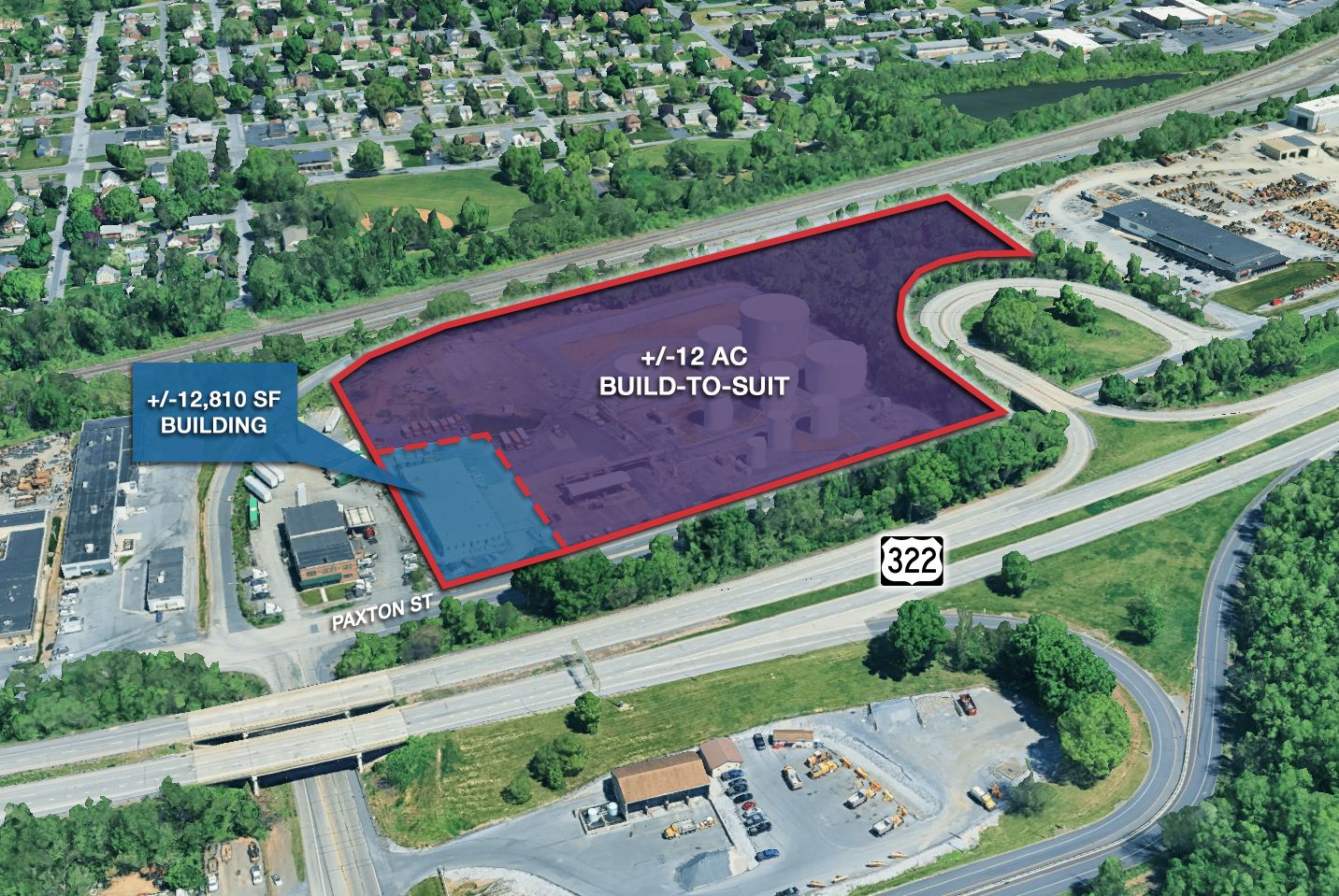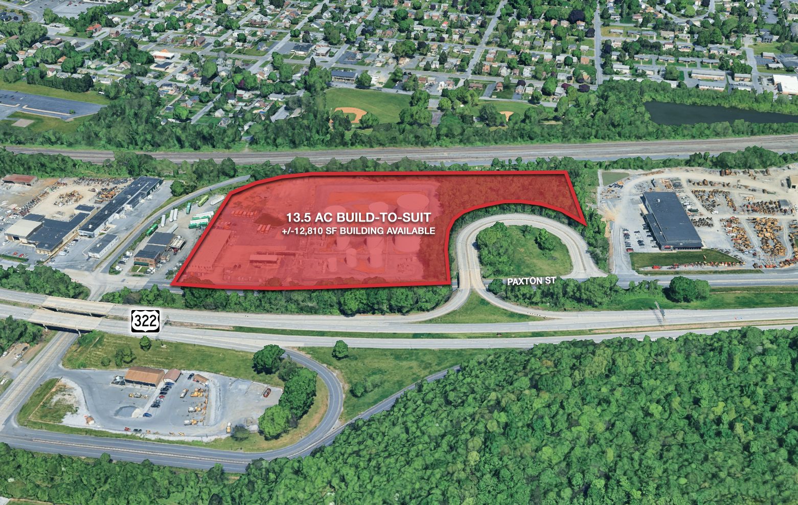 13.5-acre industrial property with existing building and build-to-suit potential.