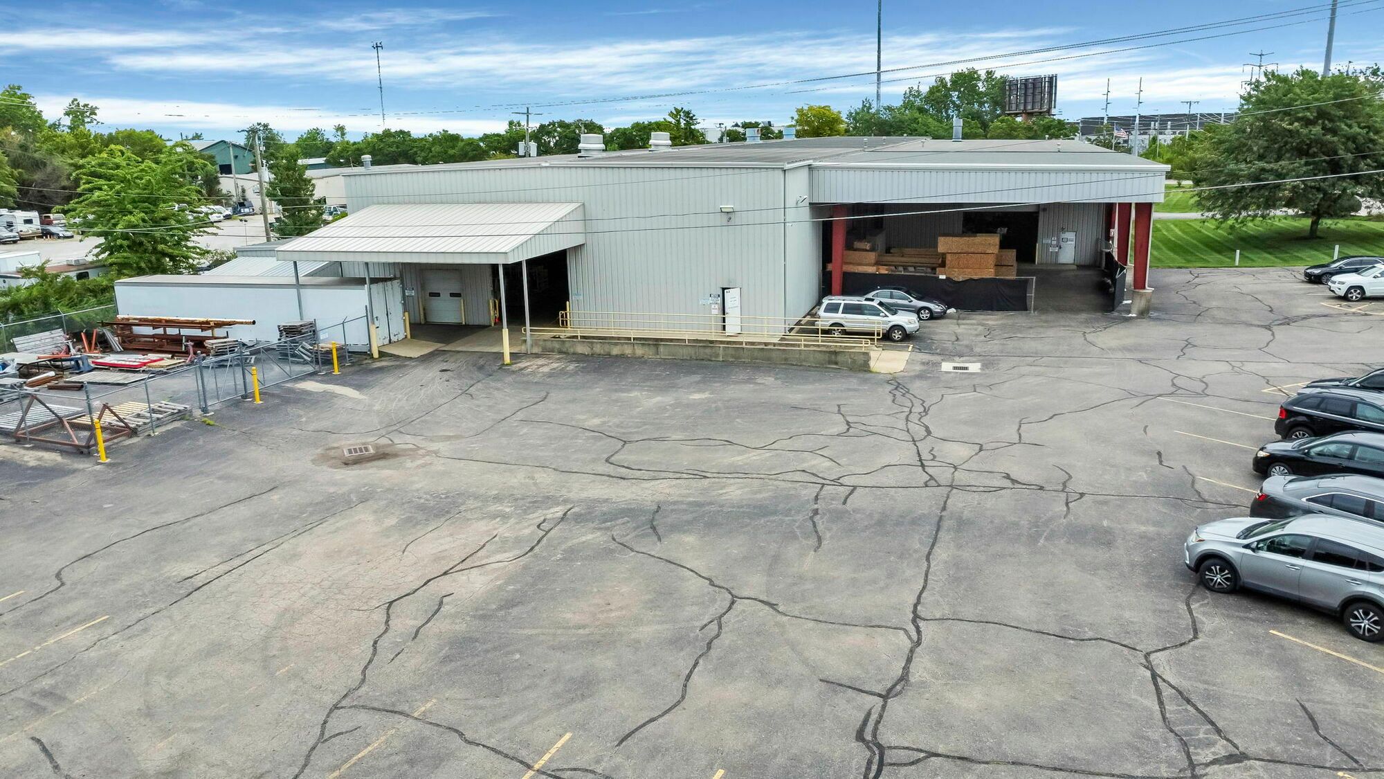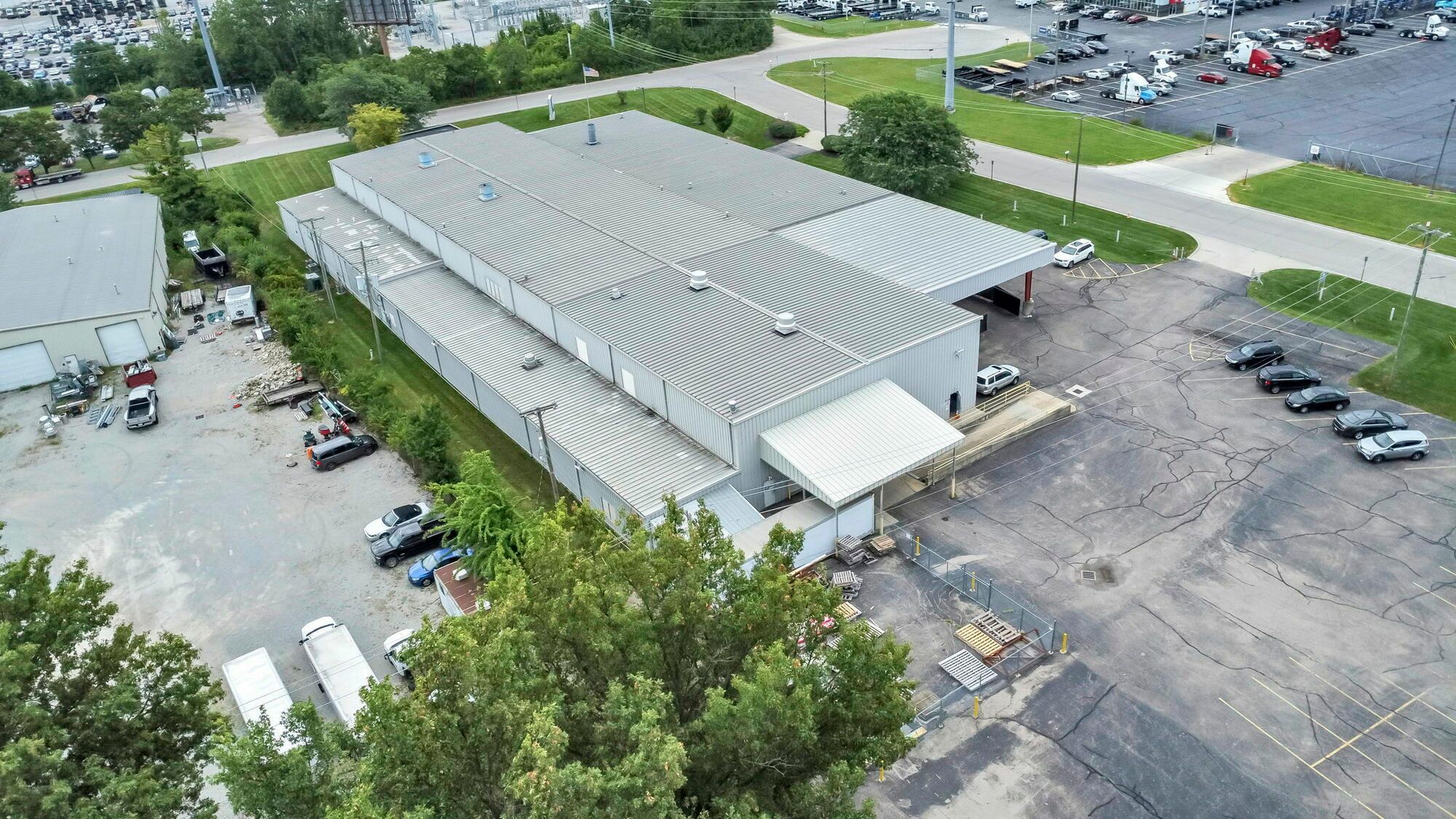 Manufacturing building for lease with outdoor storage potential.