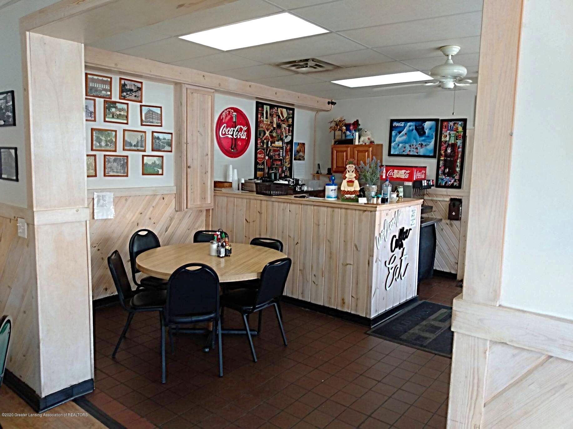 Spacious, remodeled diner with parking and a three-car garage.
