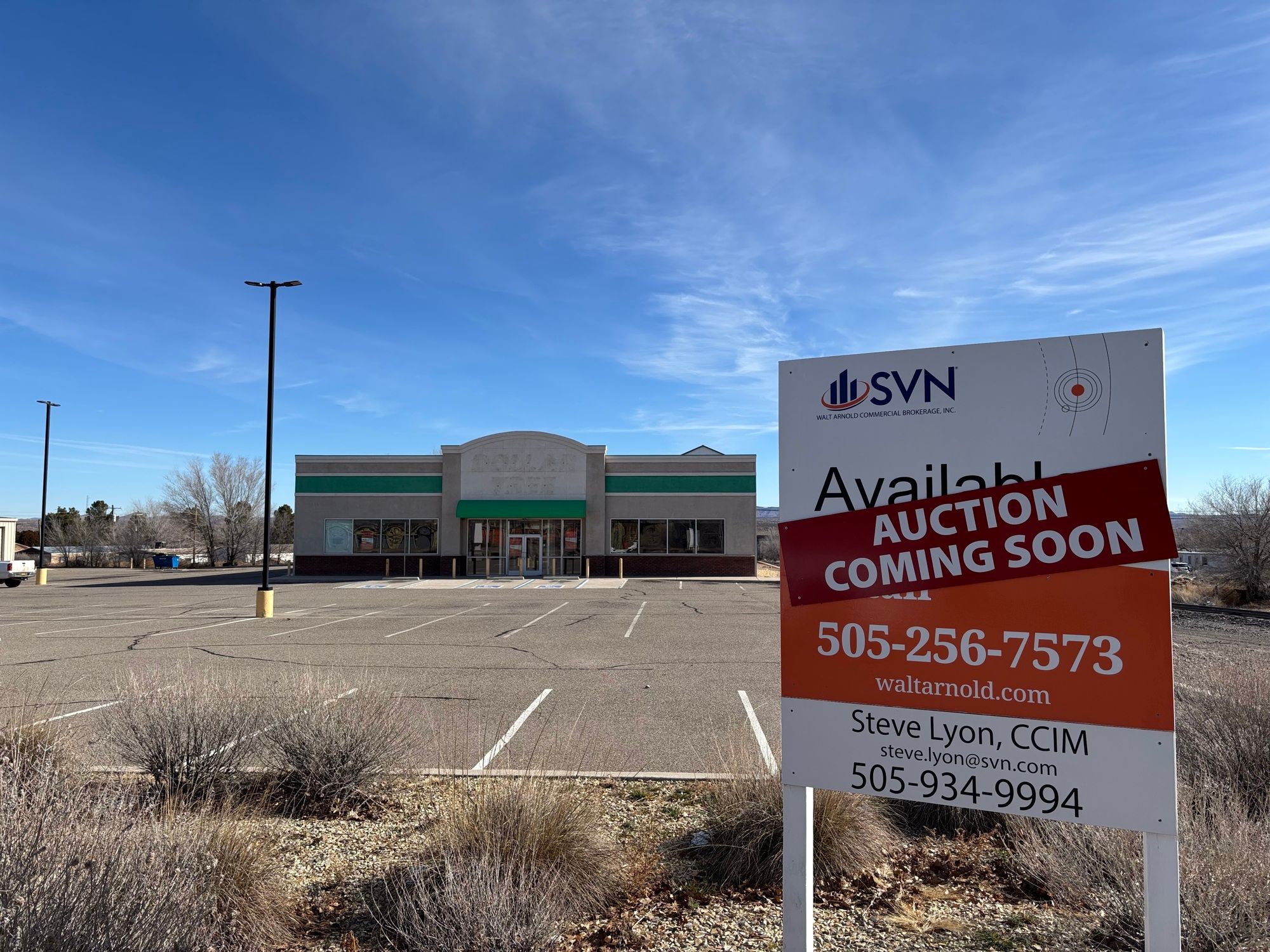This free-standing commercial building is located on California Street, also known as Old US Highway 85, in Socorro, New Mexico, just south of the signalized intersection of California Street and US 60. US 60 is an east-west thoroughfare connecting Socorro to Magdalena and points west to the Arizona state line. California Street runs parallel to I-25, with the property located approximately half a mile from the south I-25 exit. The location benefits from high vehicle traffic. The property features a pylon sign and 45 parking spaces. Ingress and egress are shared with Verizon Wireless. The building has 9,000 square feet of space.