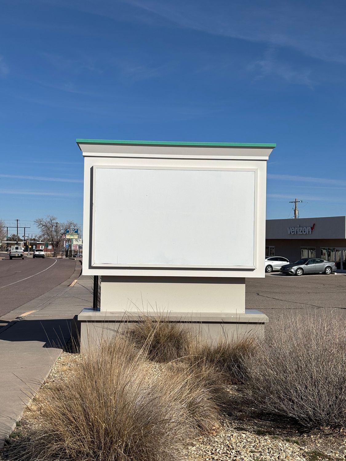 Storefront property - Commercial building with pylon sign in Socorro, New Mexico.