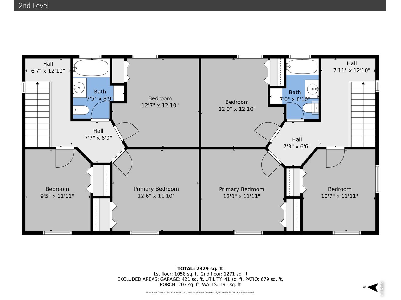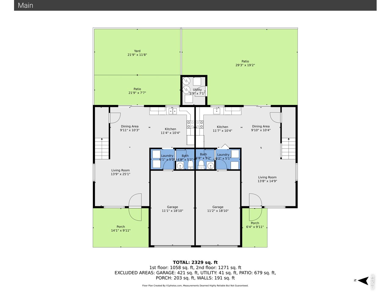 Income-producing duplex featuring garages and backyards for each unit.