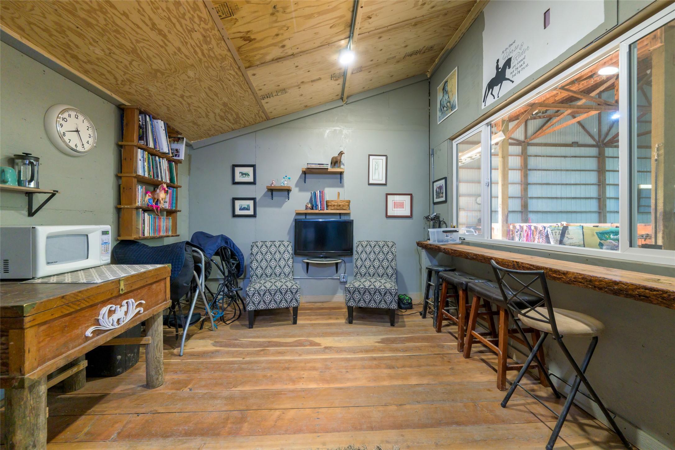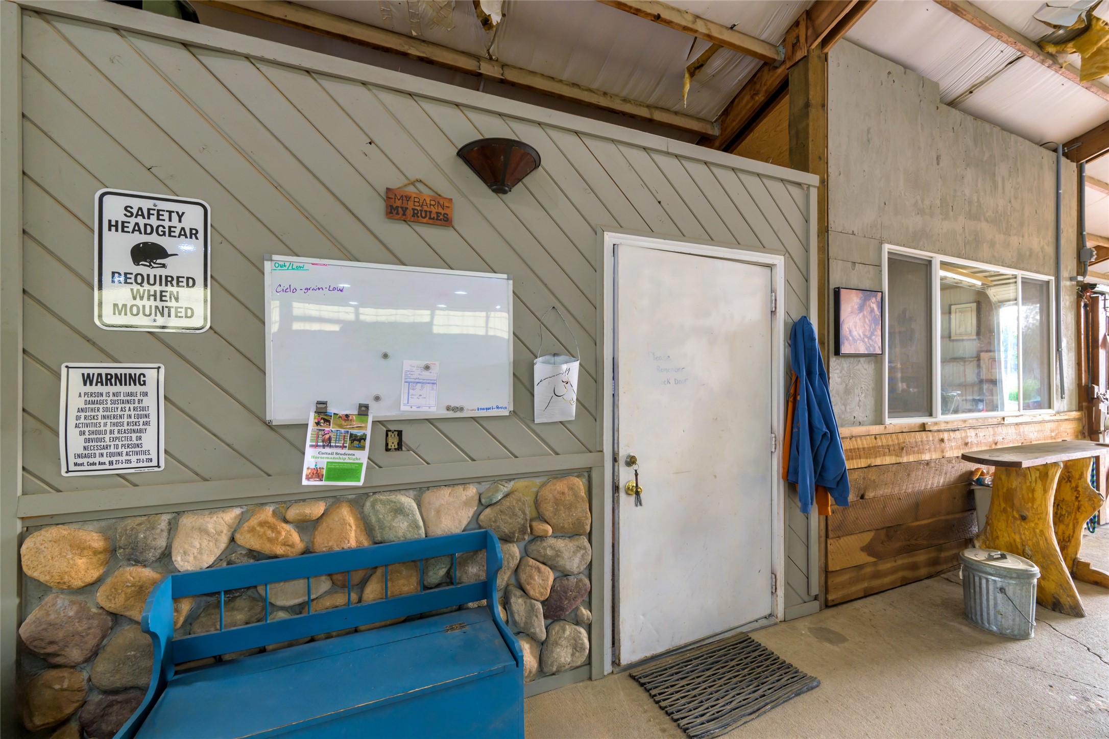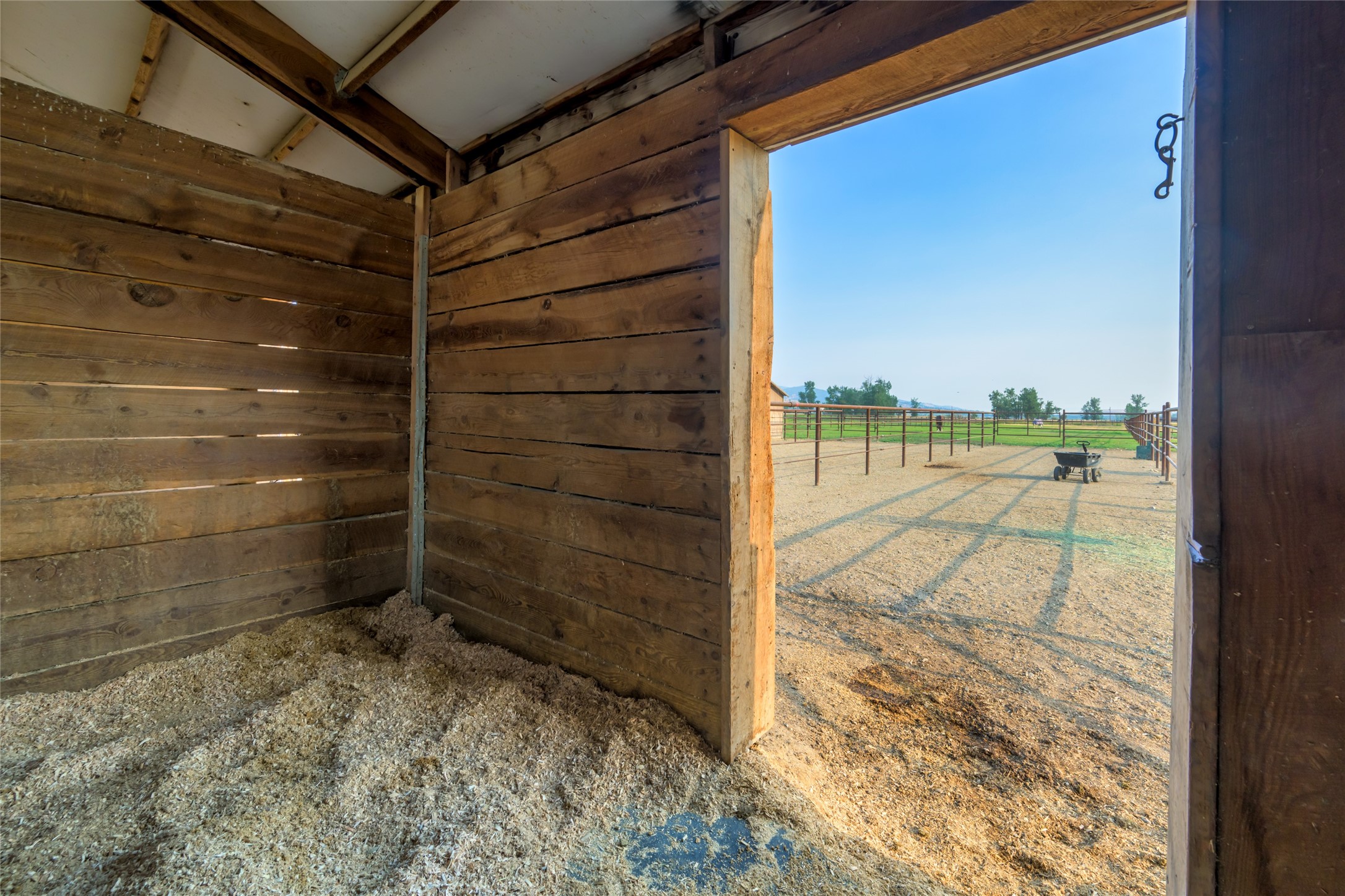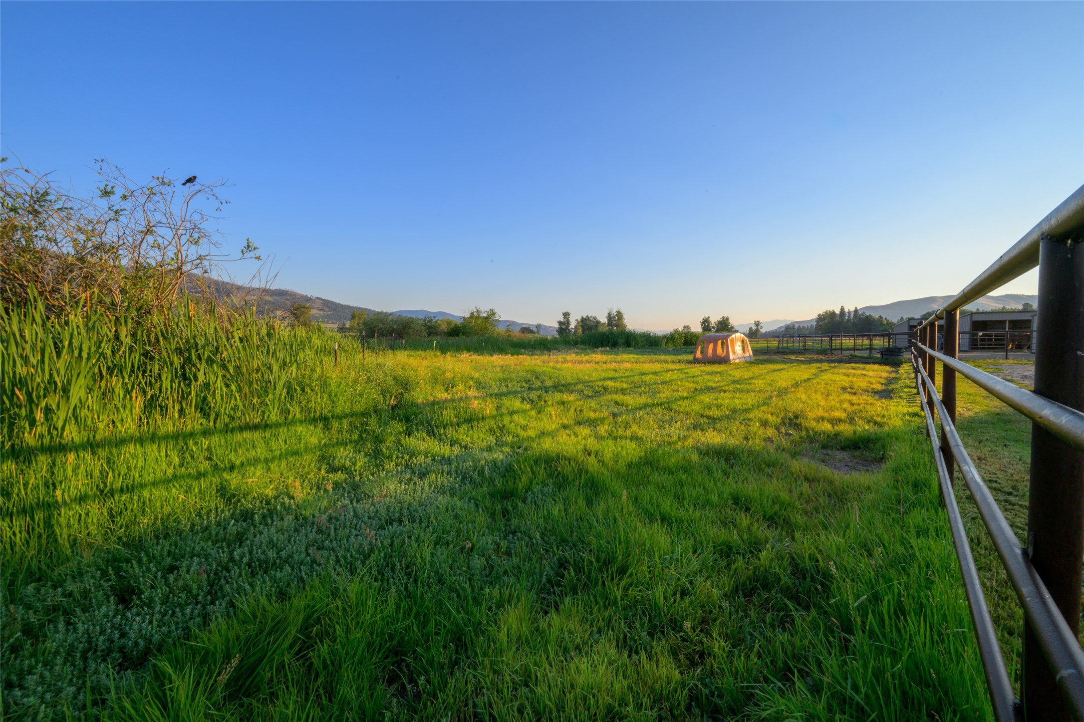 This 10.01-acre equestrian property, known as Cattail Stables, offers Bitterroot Mountain views and is easily accessible from Highway 93. The property includes pasture, runs, and two arenas. The barn features a concrete aisle and space for up to 5 stalls, along with a 65x80 indoor arena equipped with shatter-proof mirrors on both ends and solid walls. The arena's footing is designed to minimize dust and support horses' movements. Currently, the indoor stalls are configured as a feed room, a tack room with 11 lockers and hot water, and a heated lounge, in addition to two stalls with runs. There is also a 70x145 outdoor dressage court/arena with sand/rubber footing to maximize stability for dressage and jumping. Additional features include automatic waterers, a turnout pasture with a large shelter, and five six-foot-tall pens with individual shelters, each large enough for two or more horses, constructed with steel continuous fence. A large hay shed is located next to the barn. The property is suitable for use as an individual horse training facility.
