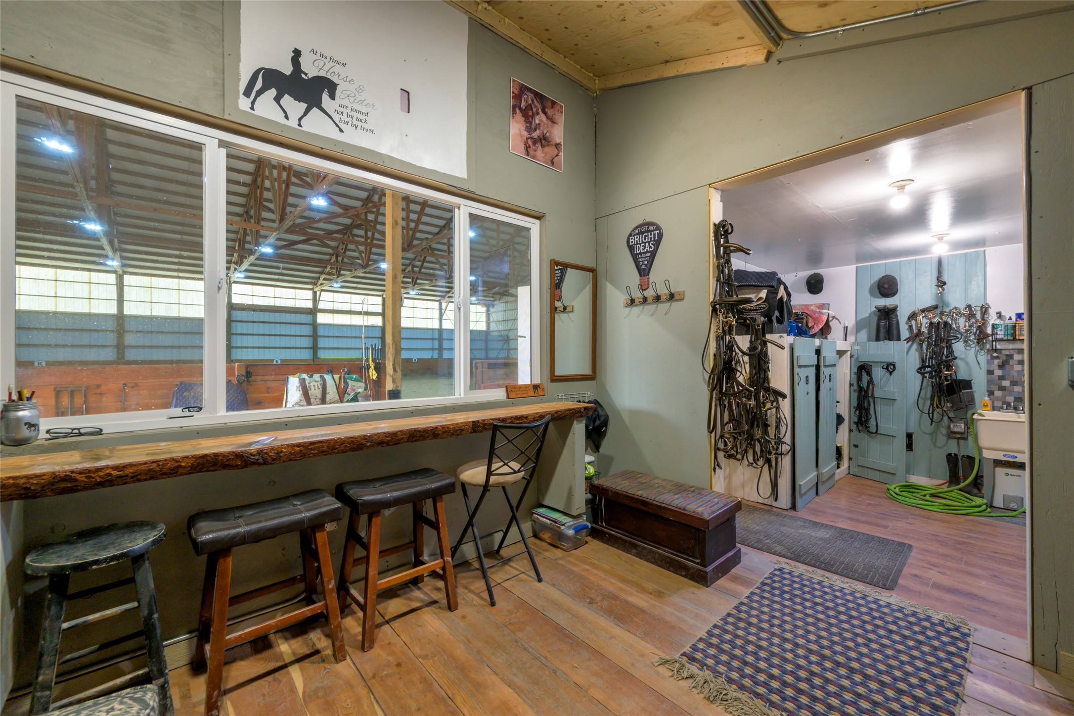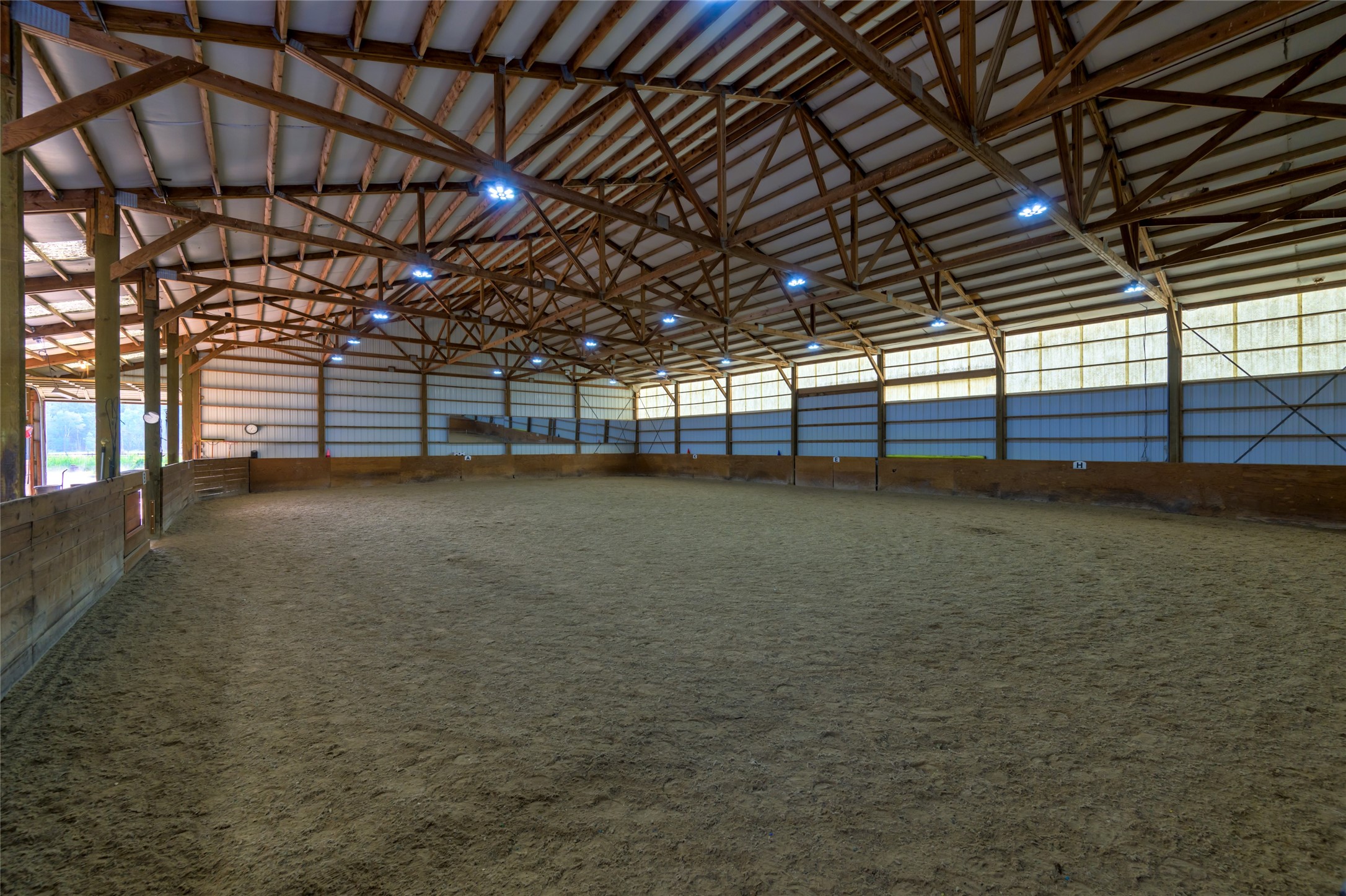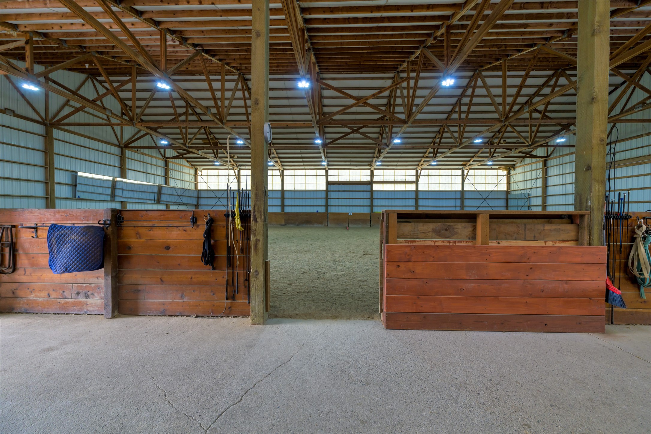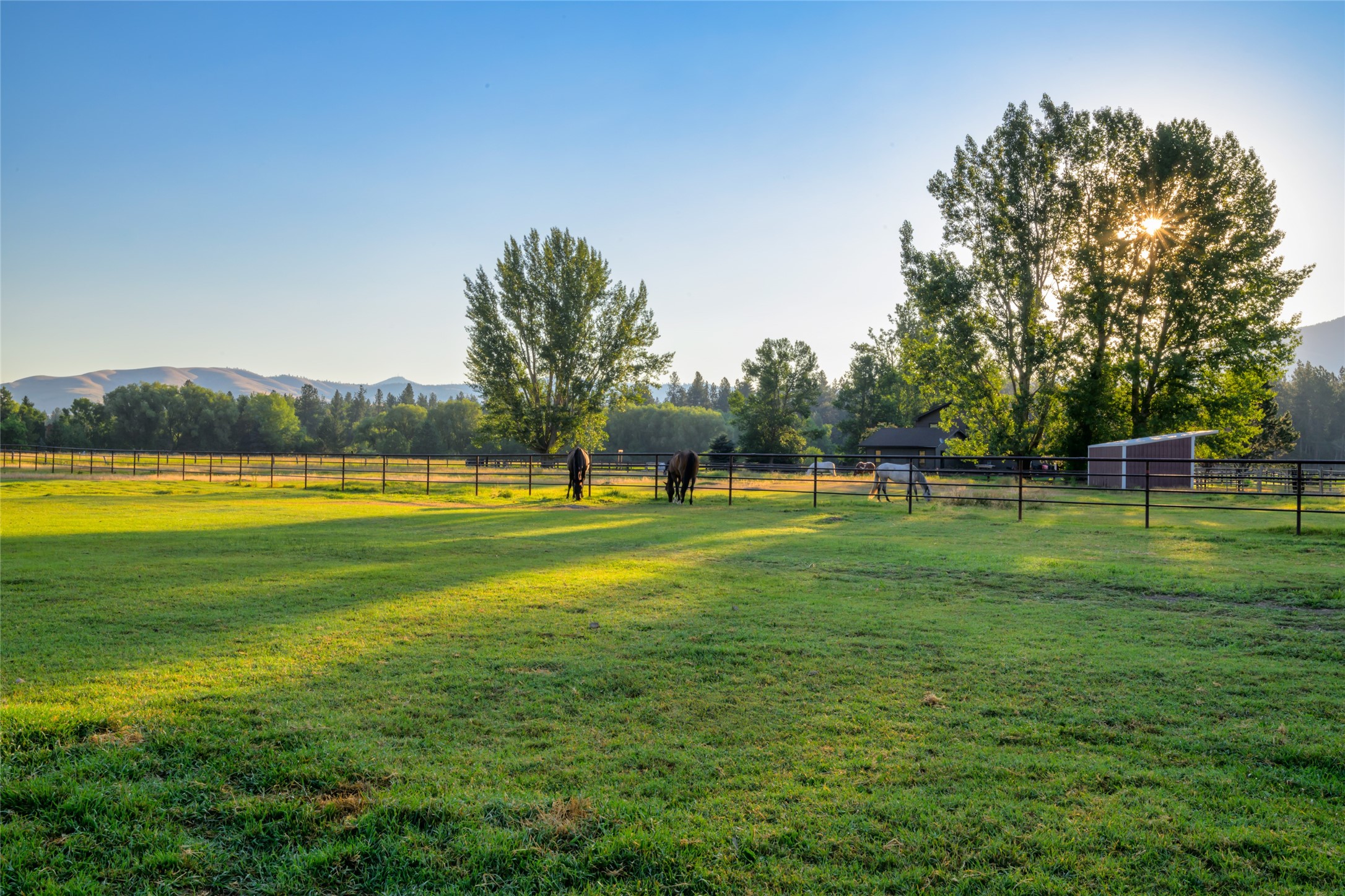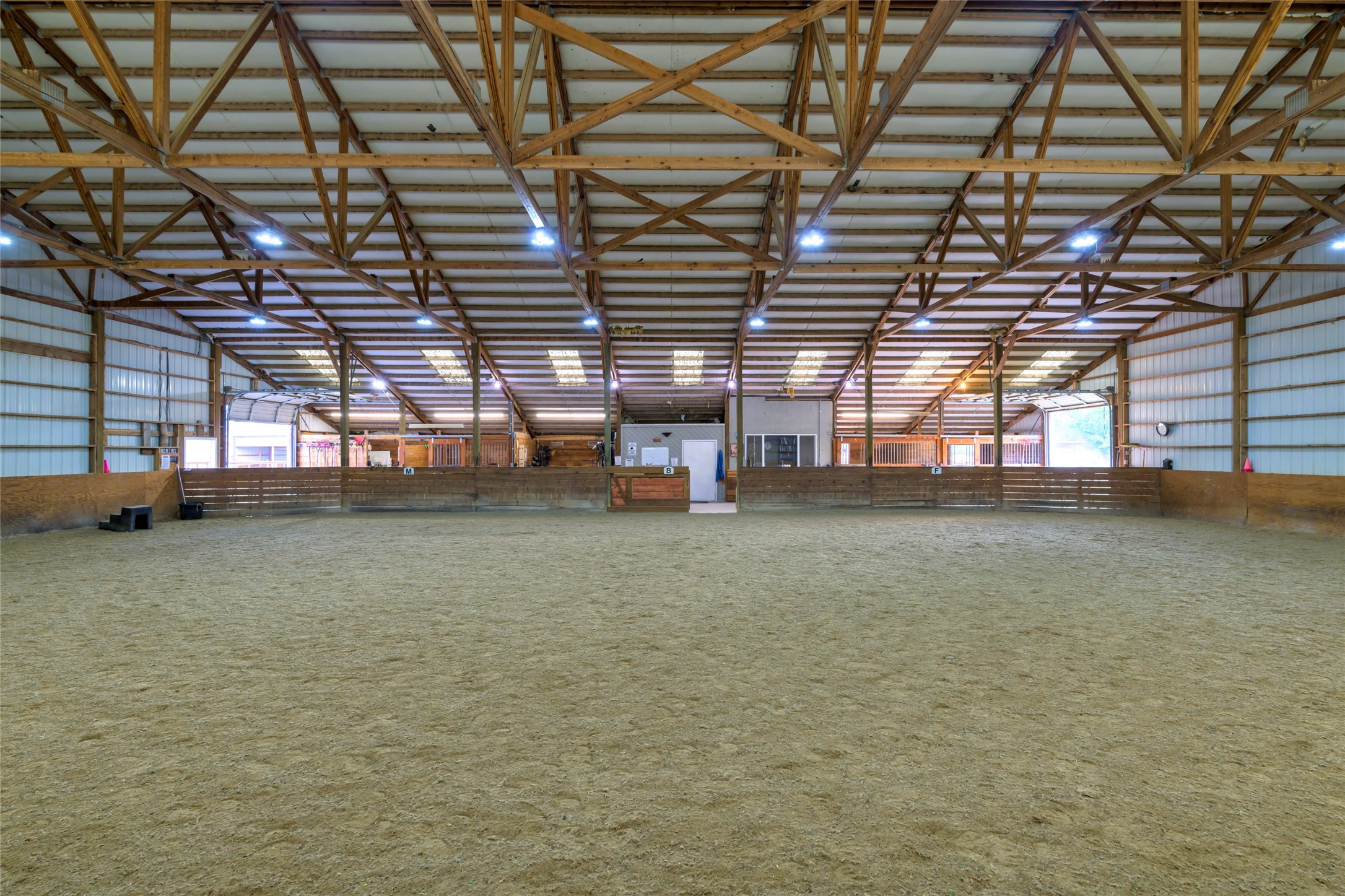 This property features: 10.01‑acre equestrian property with Bitterroot Mountain views and Highway 93 access.; Barn features a **65x80 indoor arena with shatter‑proof mirrors and specialized low‑dust footing.**; **70x145 outdoor dressage court/arena with sand/rubber footing** for stability.