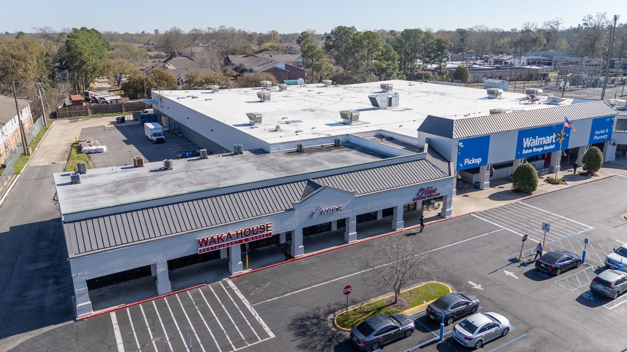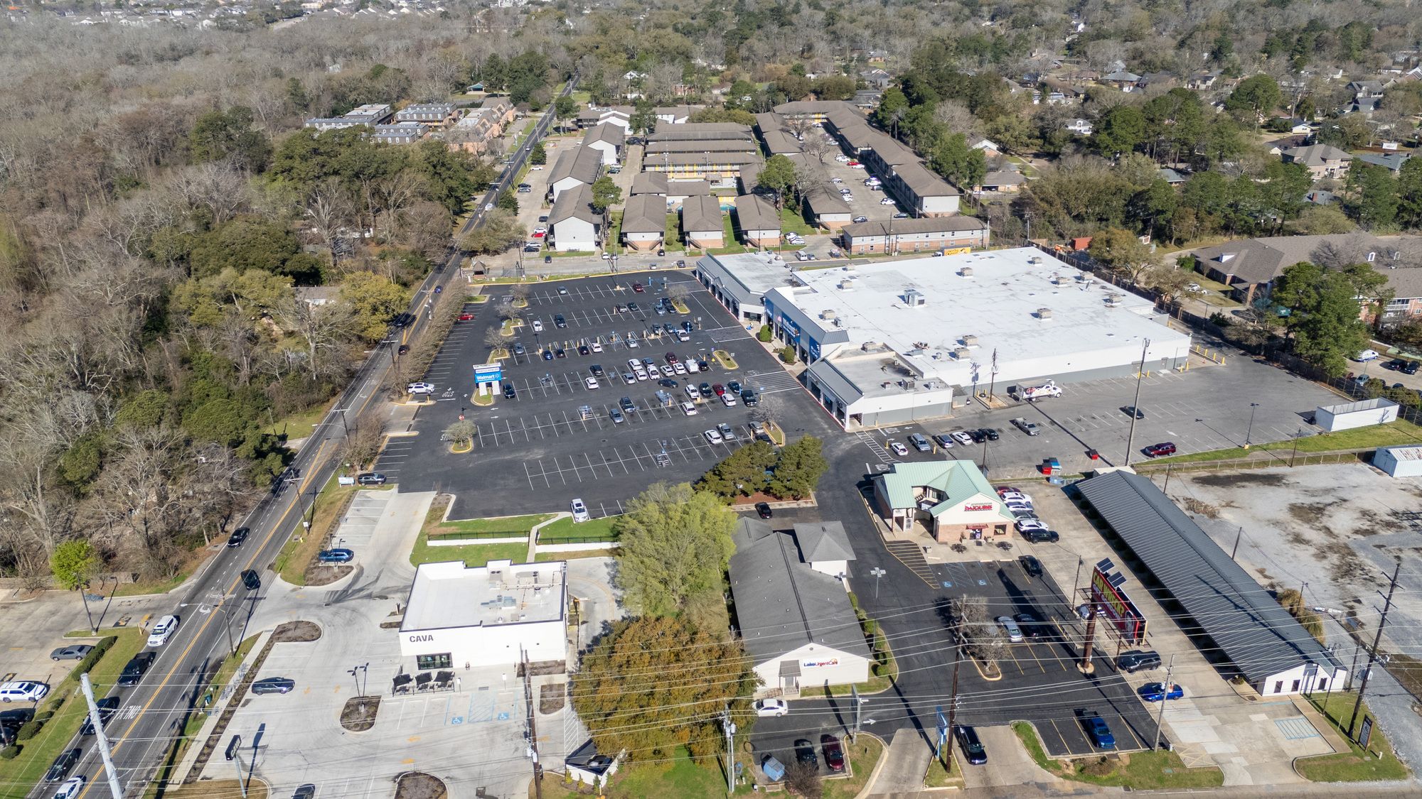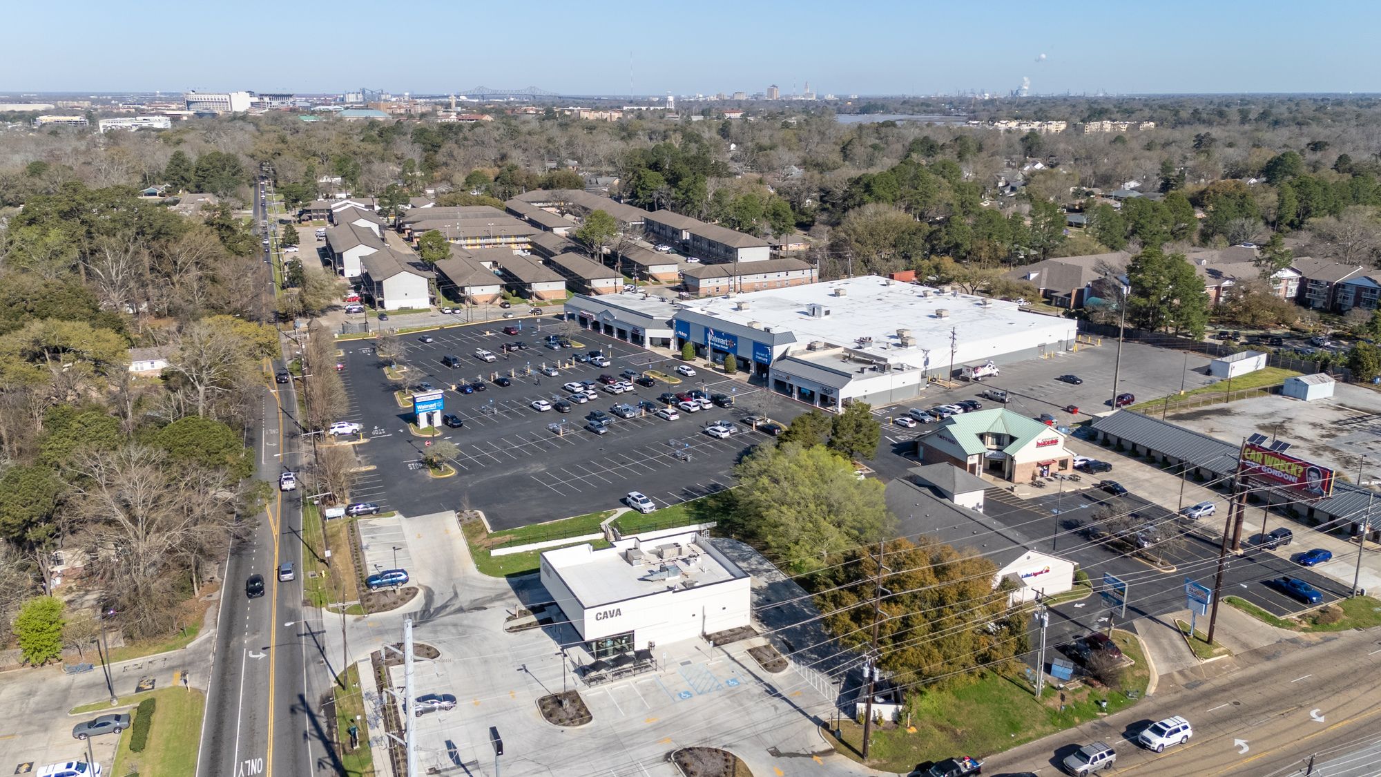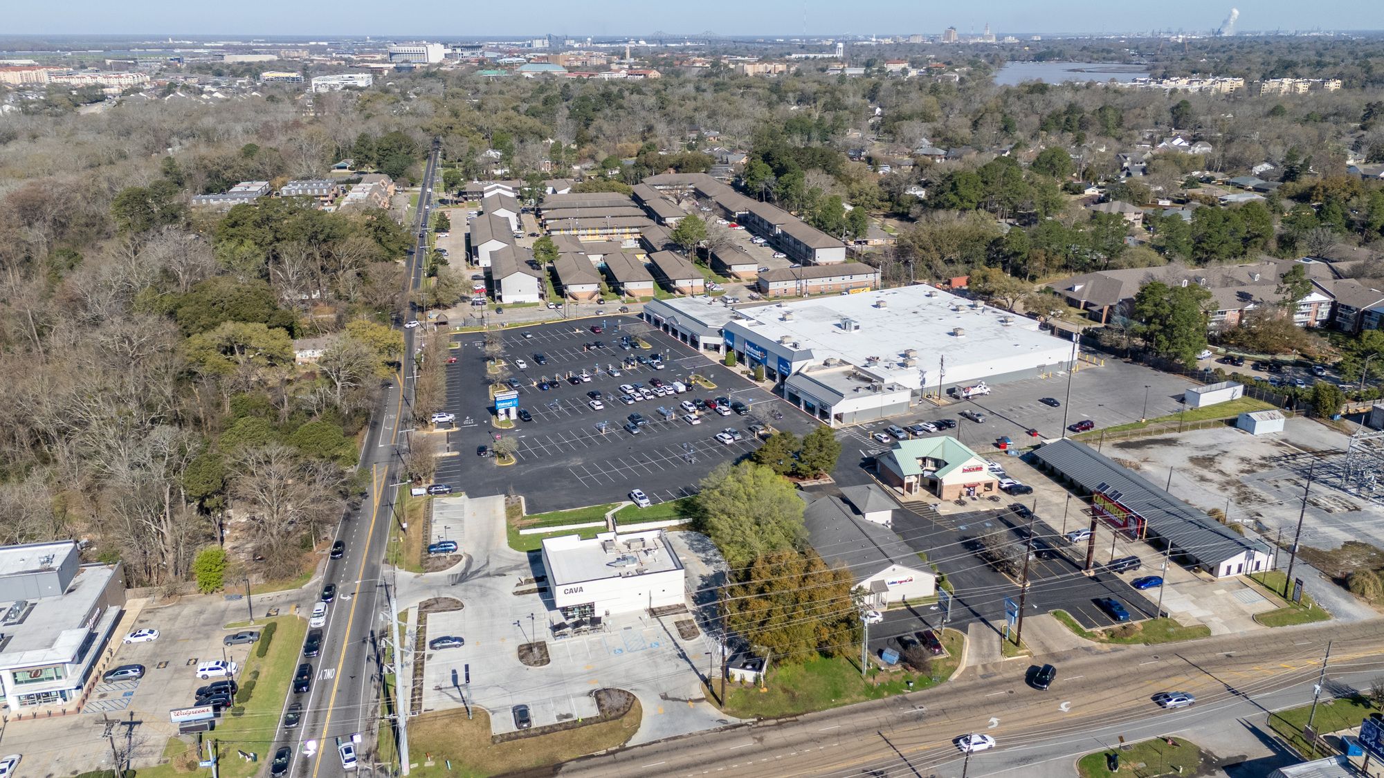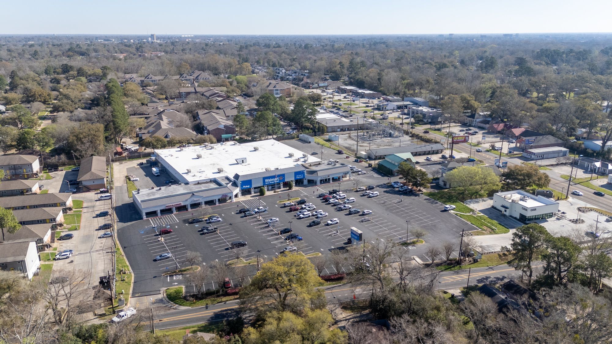 Highly visible retail center near LSU campus with signage opportunities.