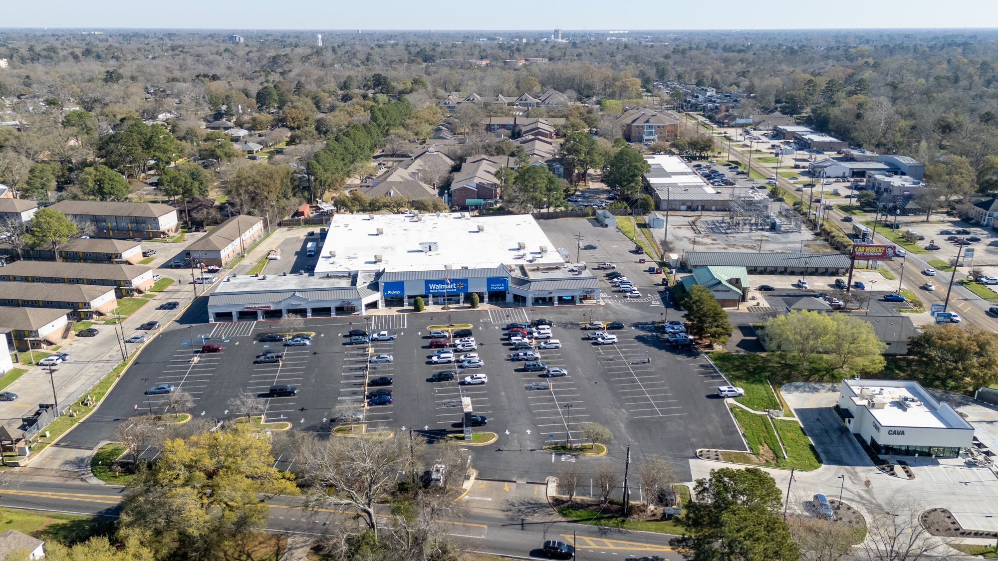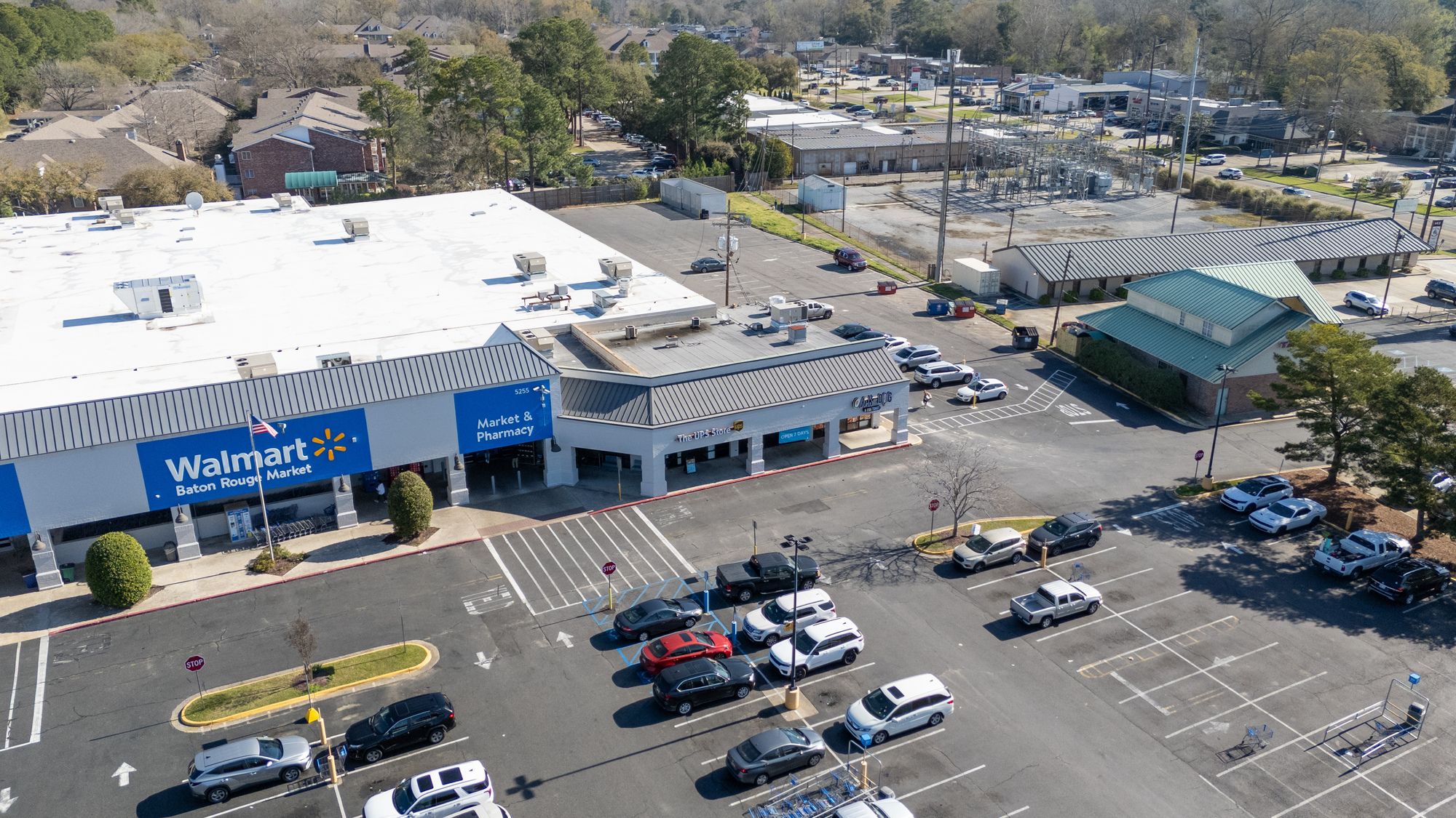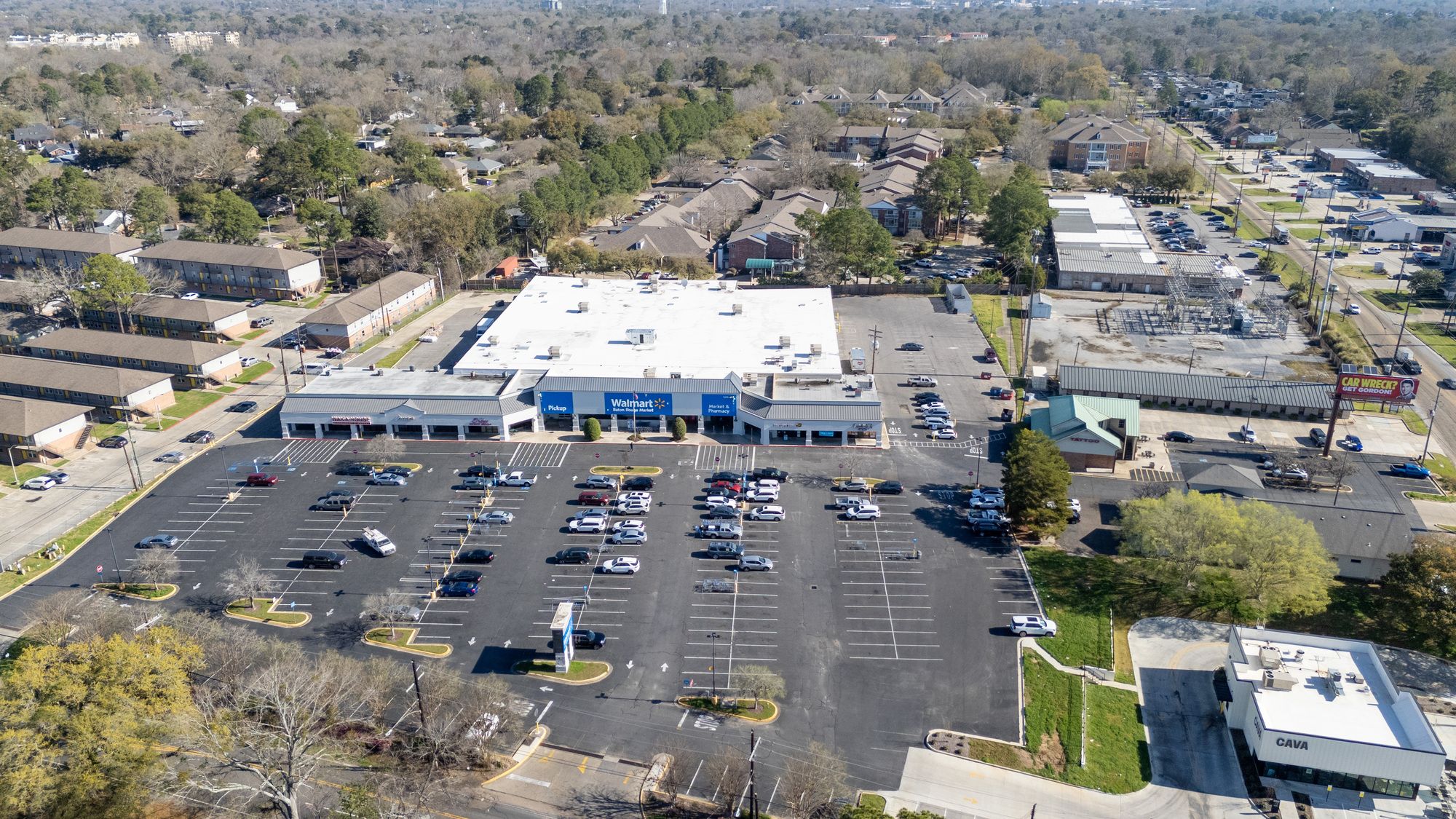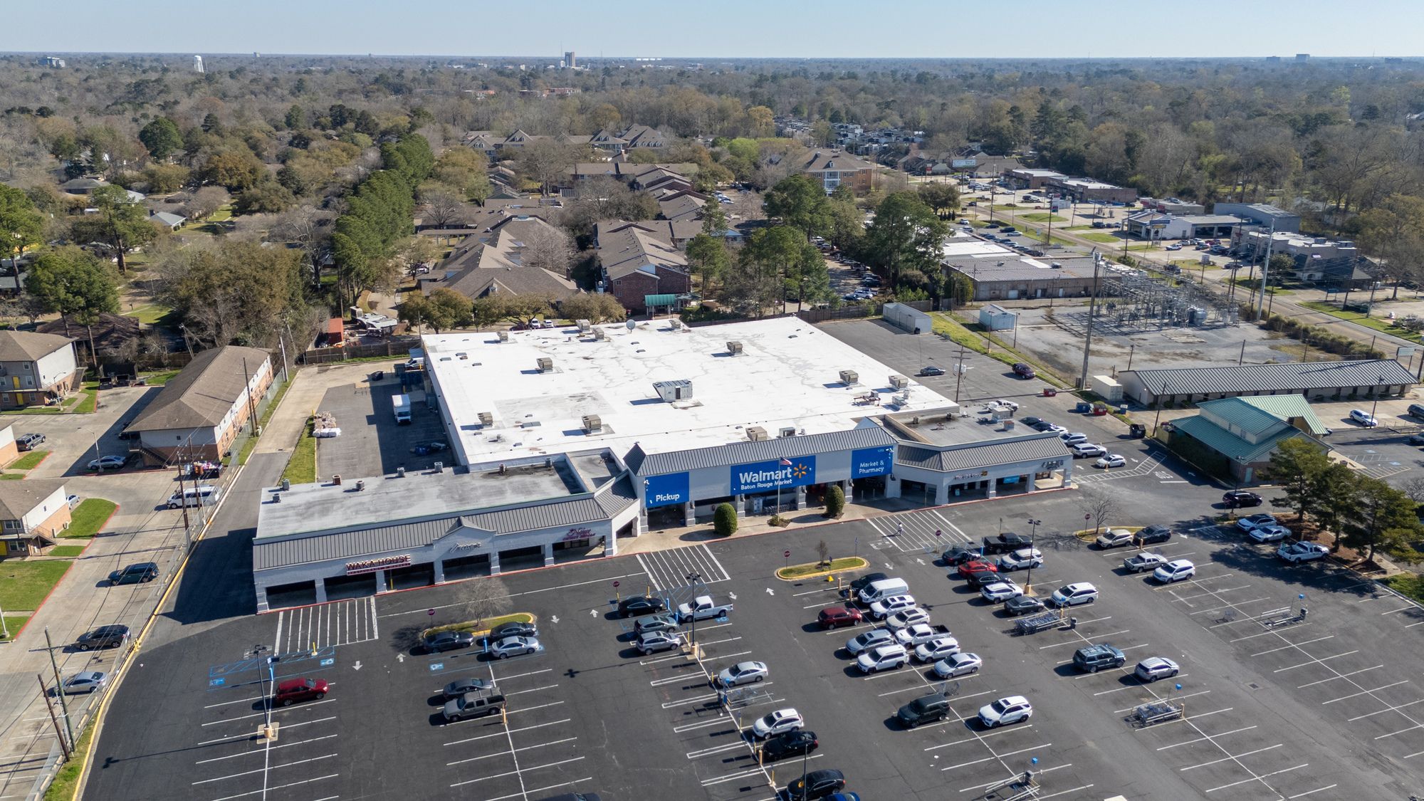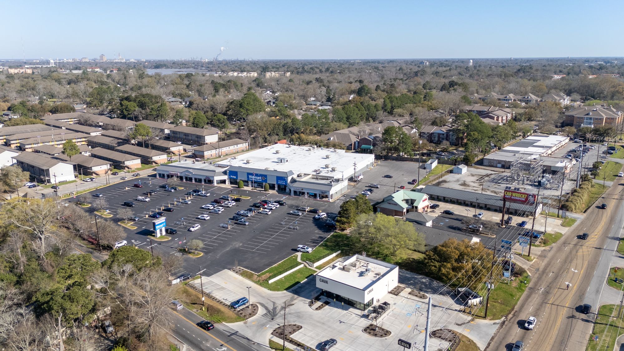 Highly visible retail center near LSU campus with signage opportunities.