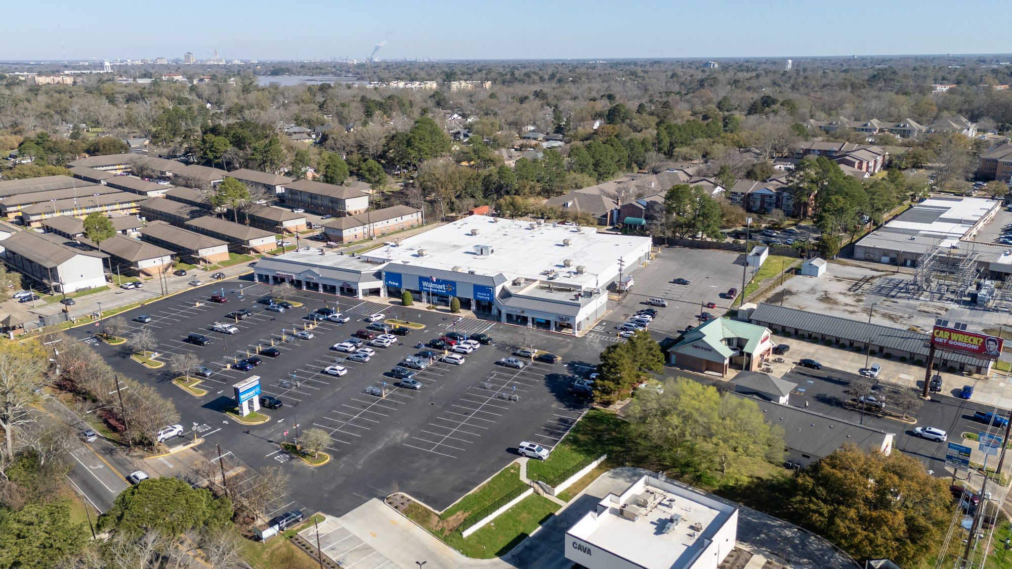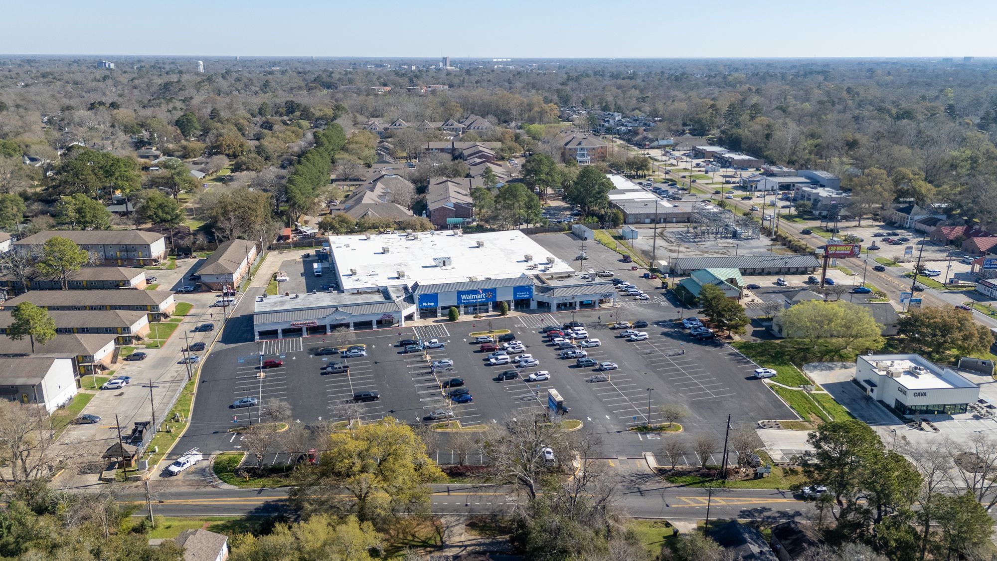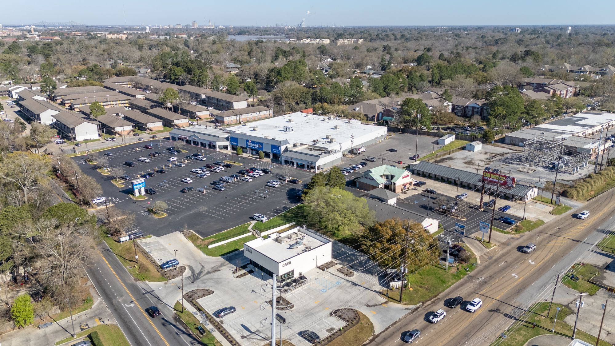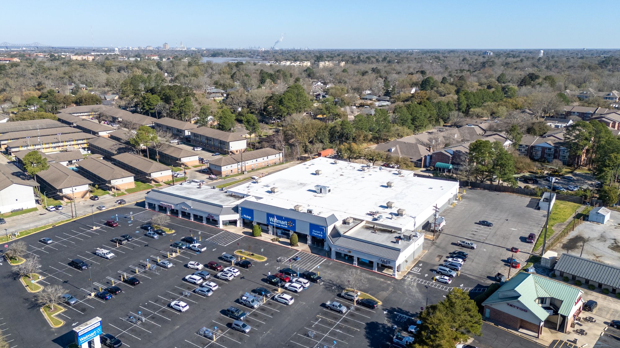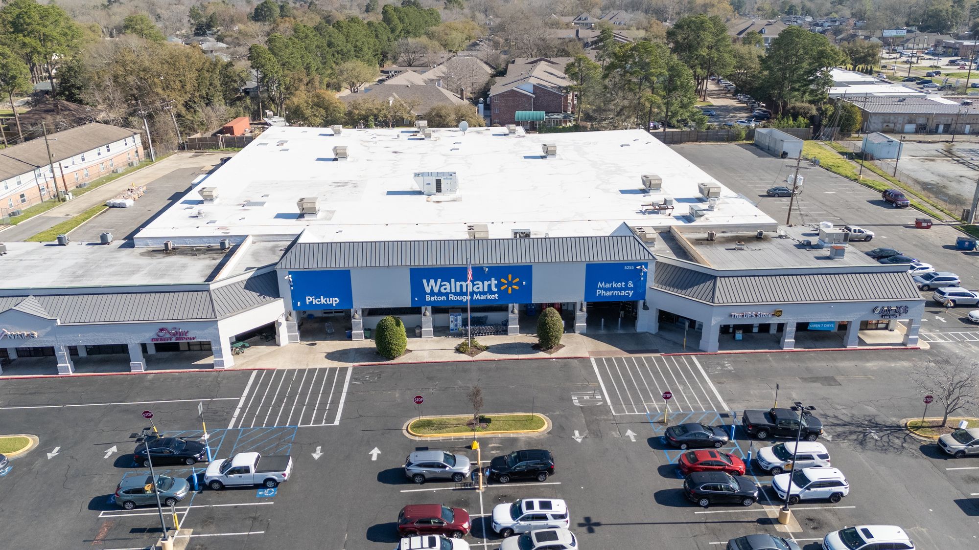 Highly visible retail center near LSU campus with signage opportunities.