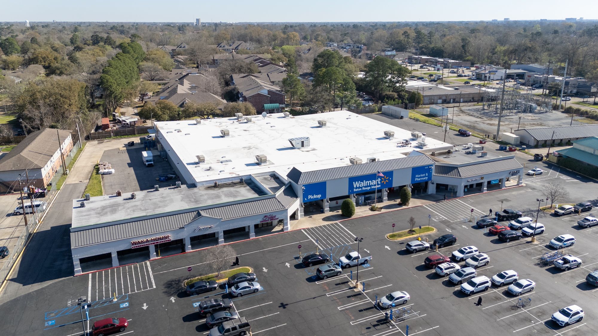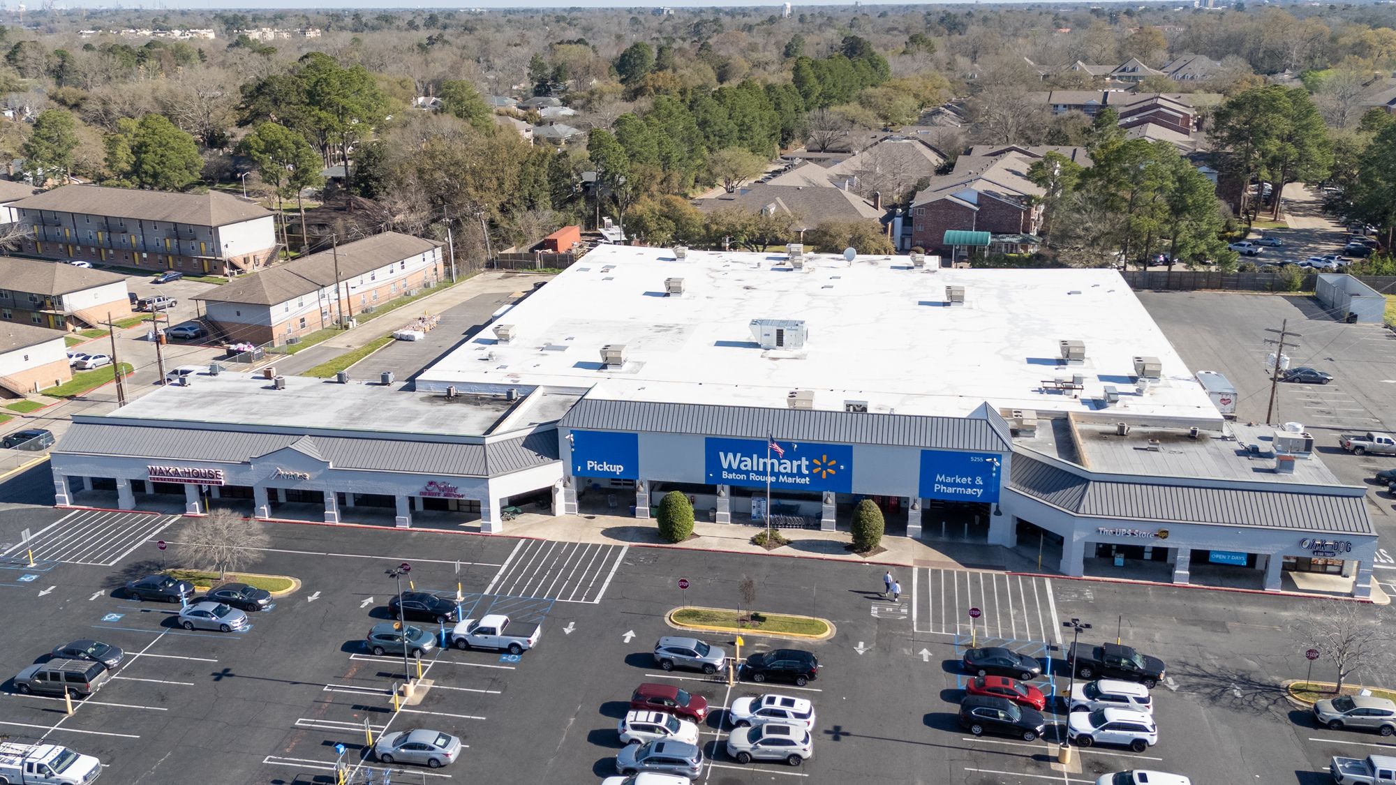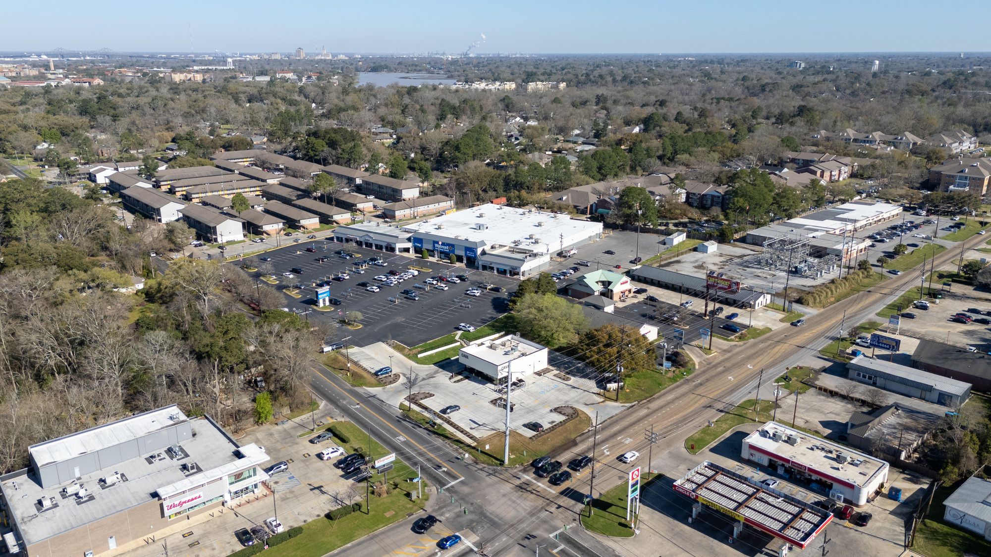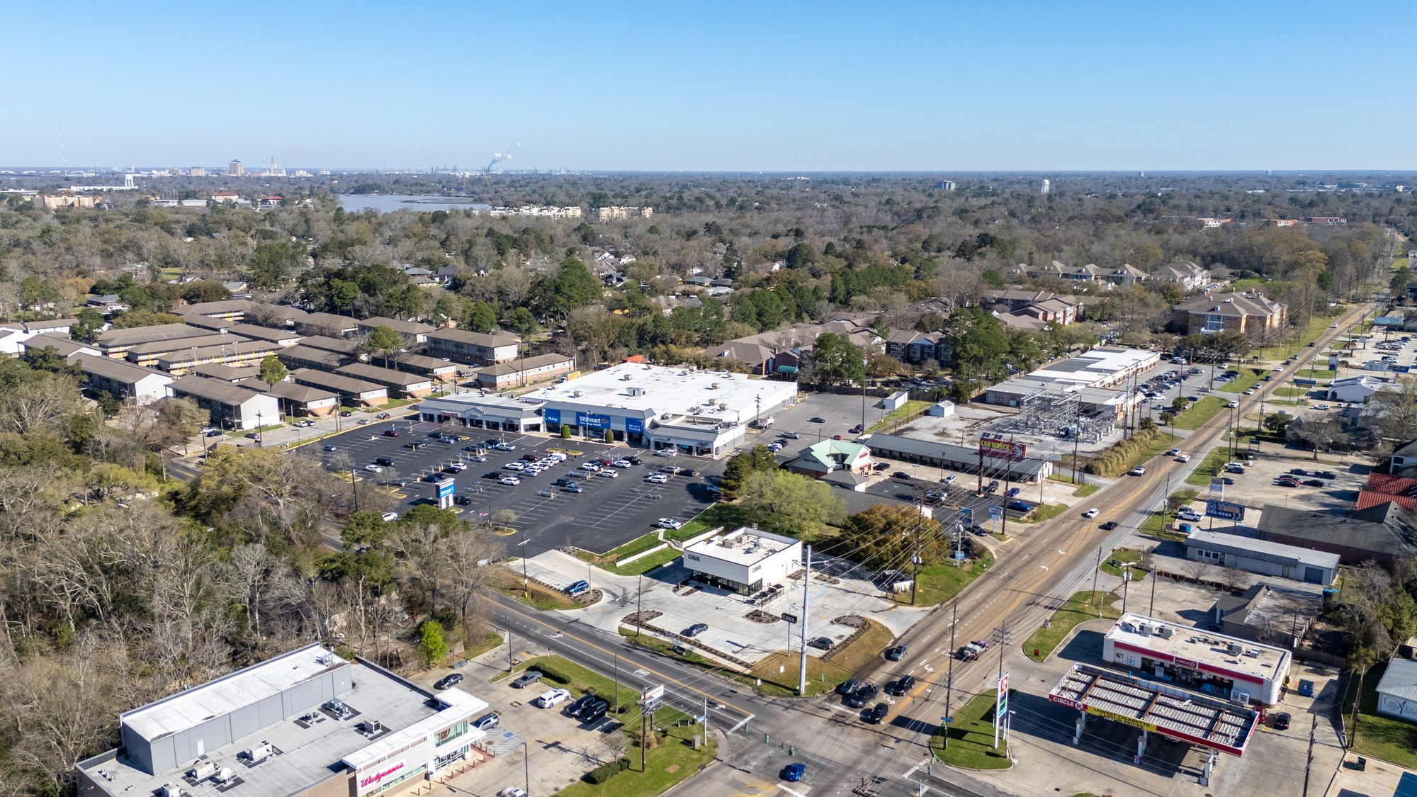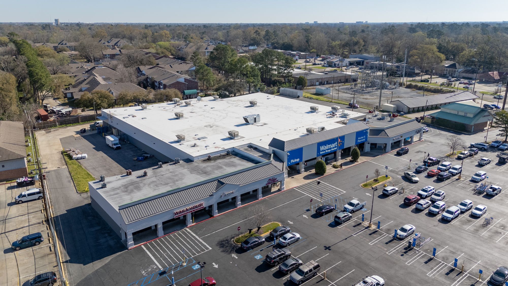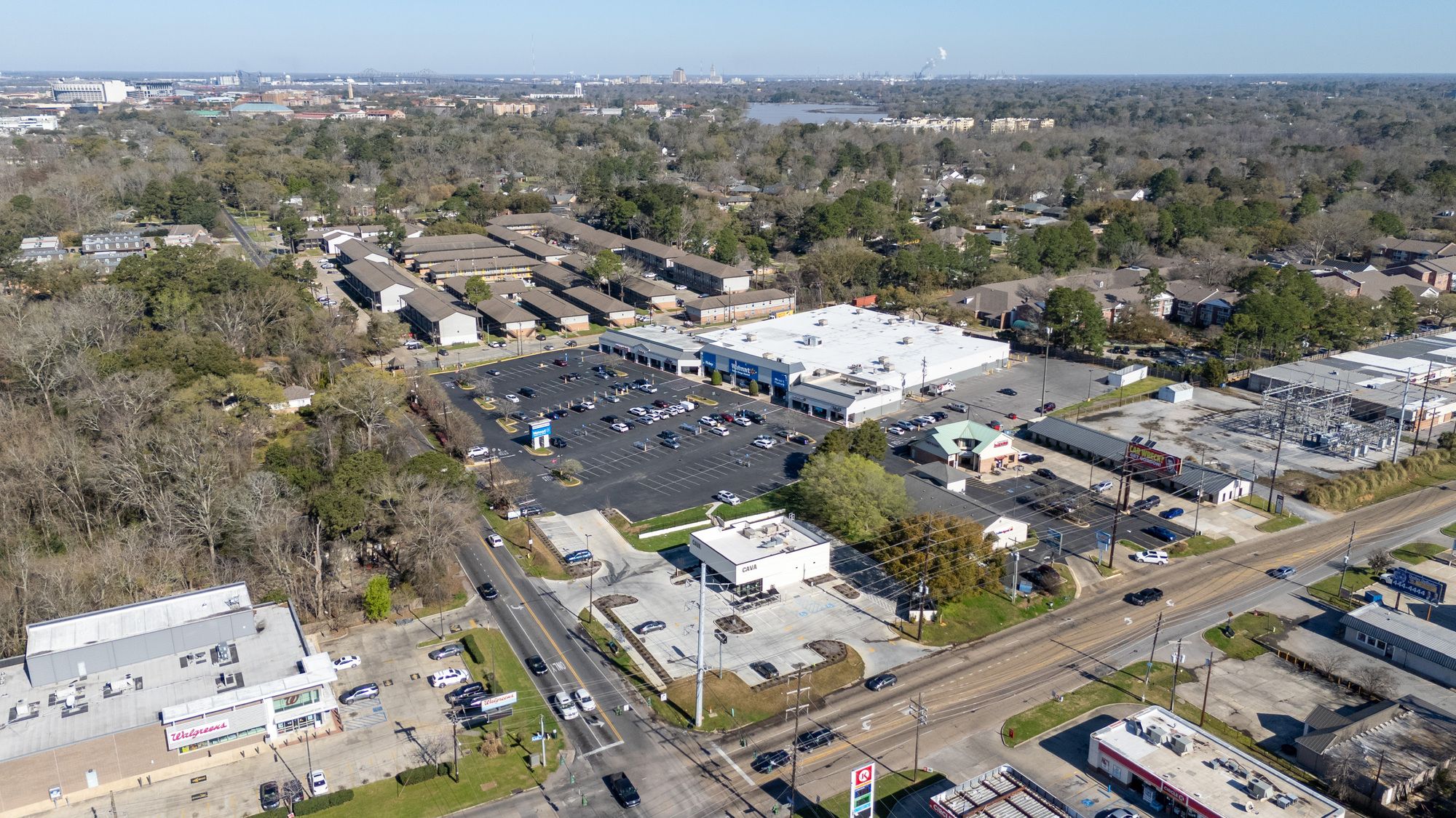 Highly visible retail center near LSU campus with signage opportunities.