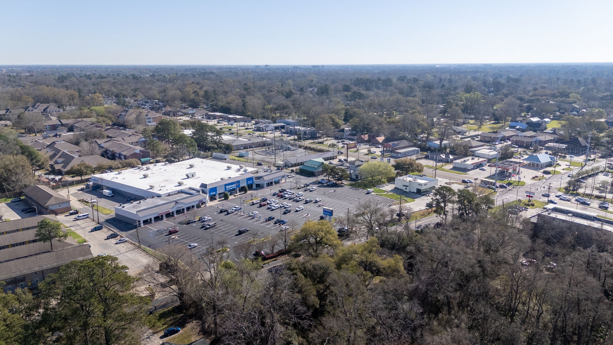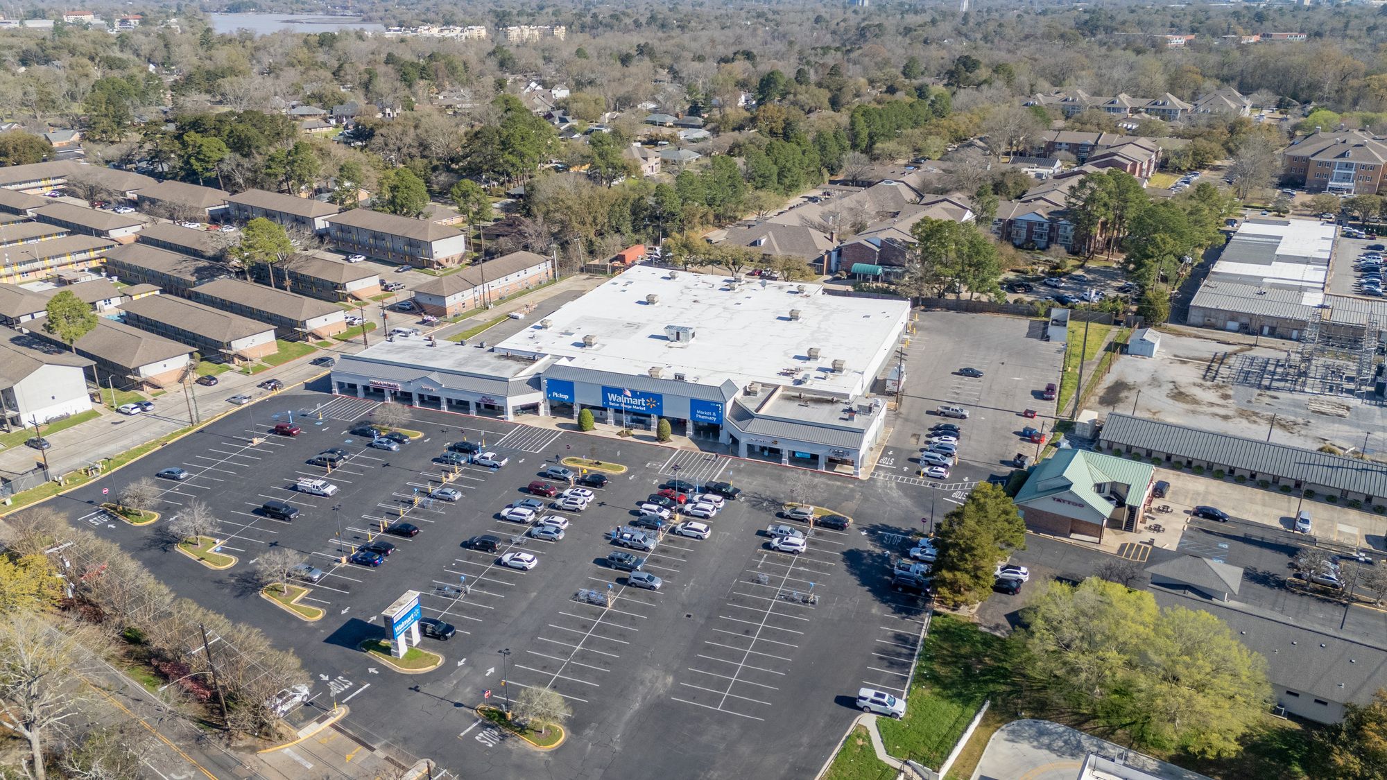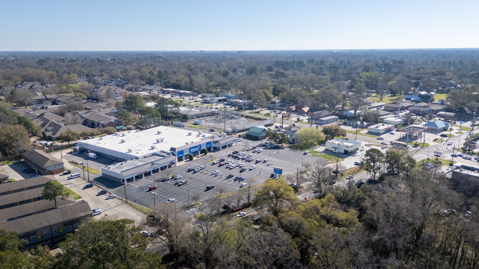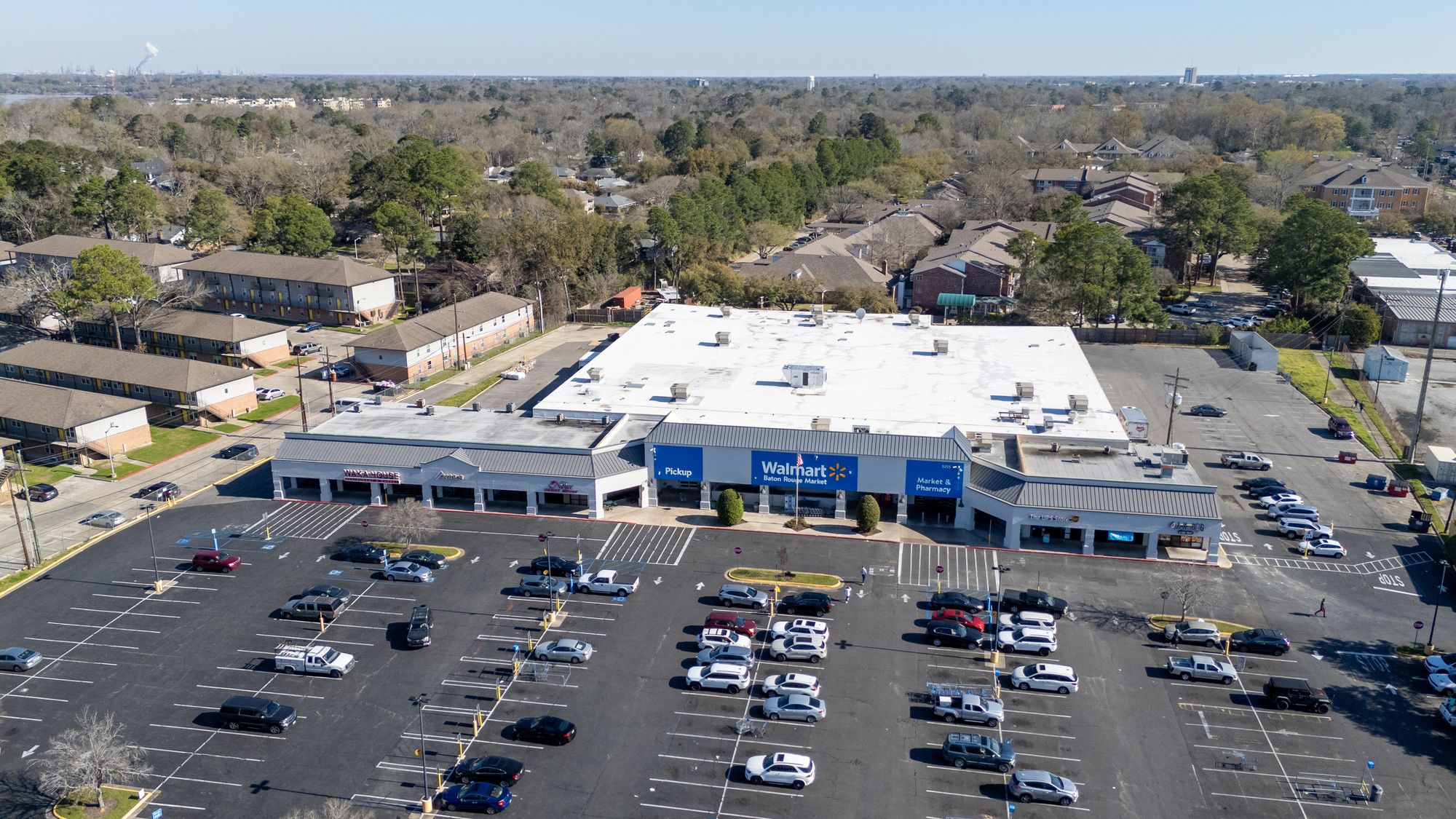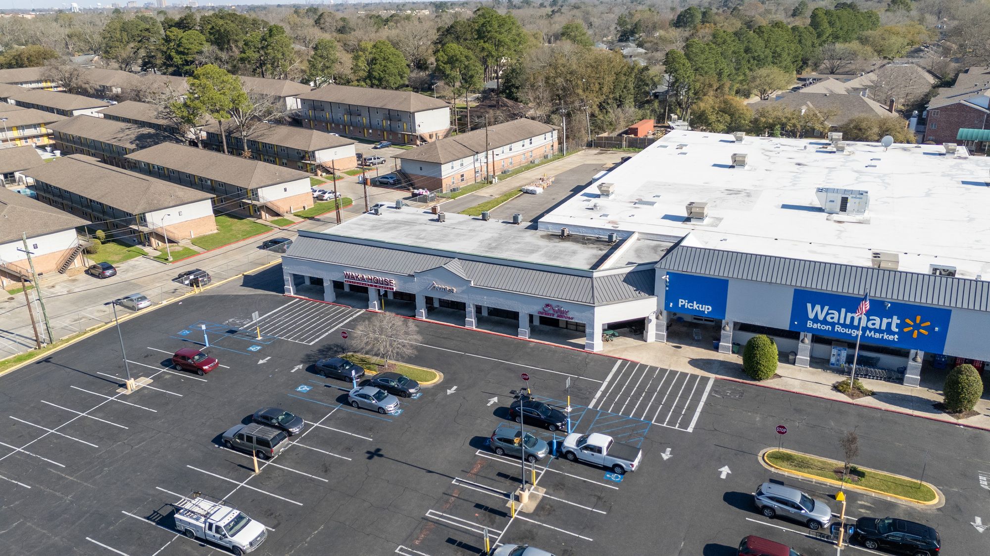 Highly visible retail center near LSU campus with signage opportunities.