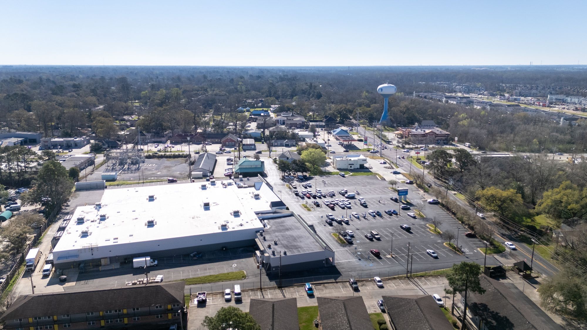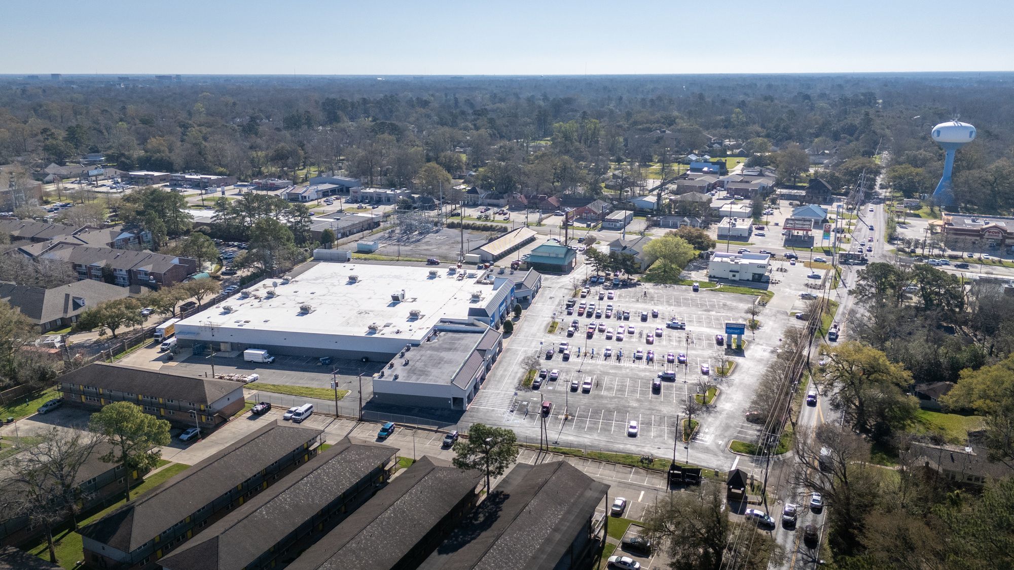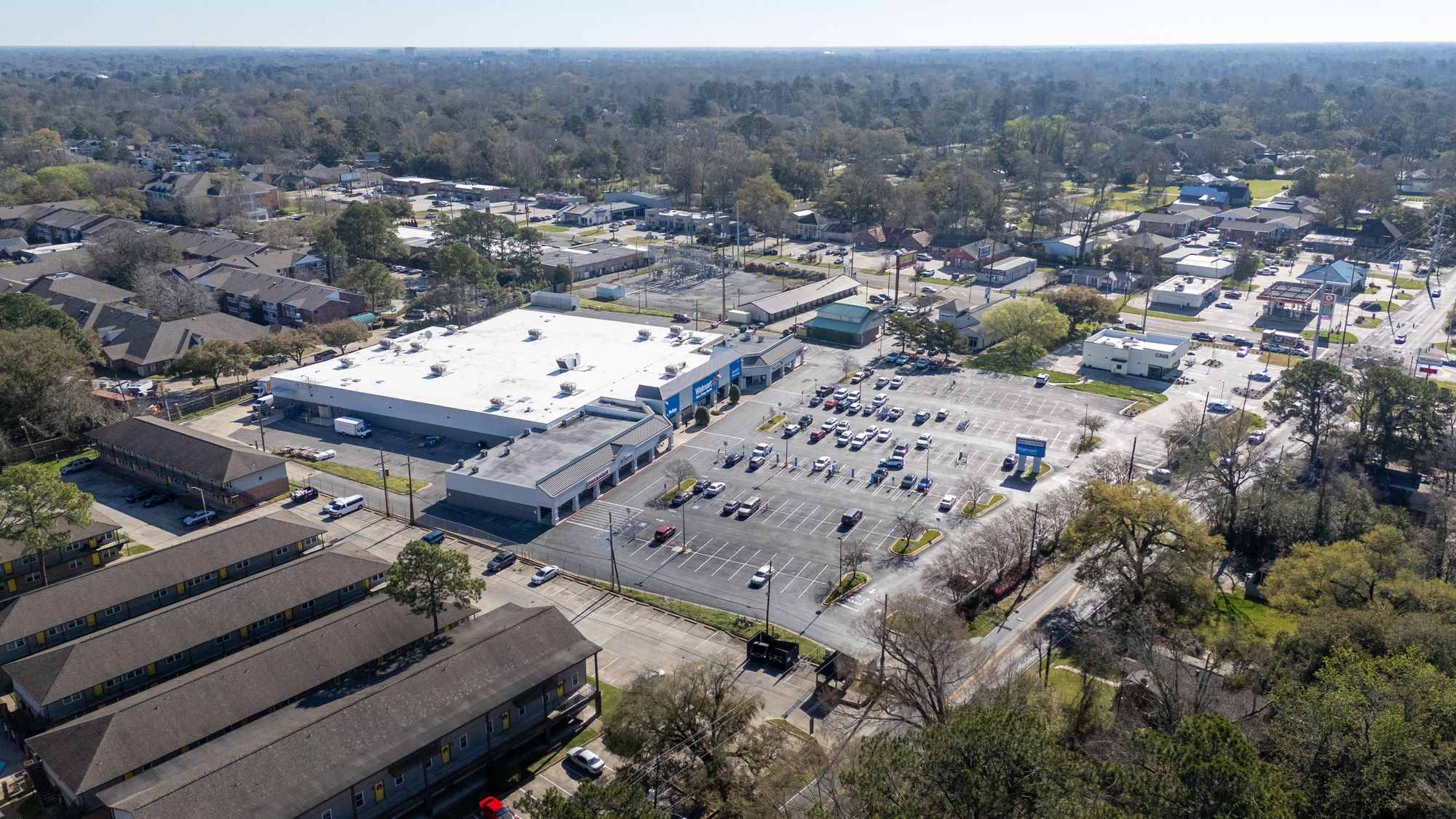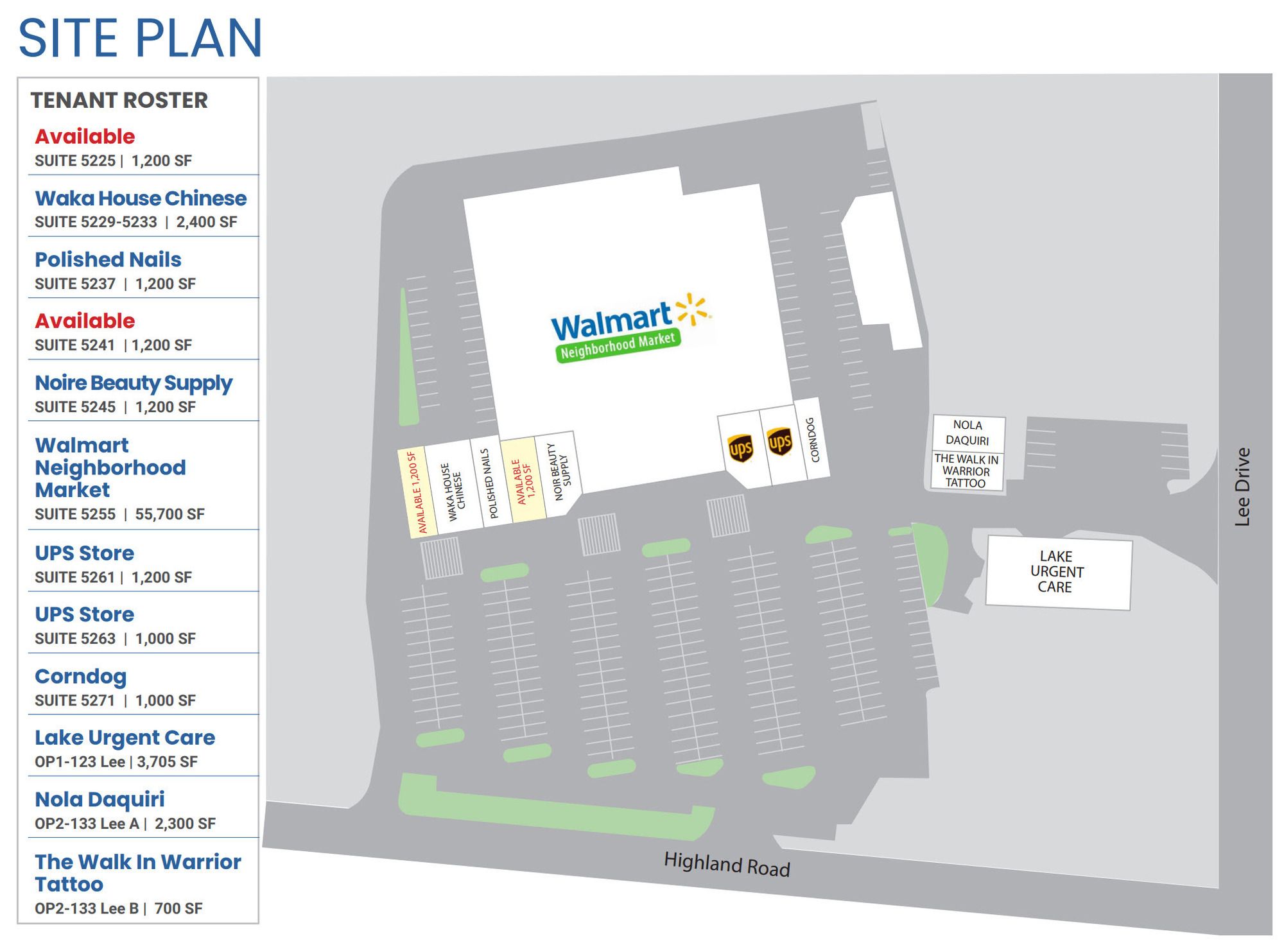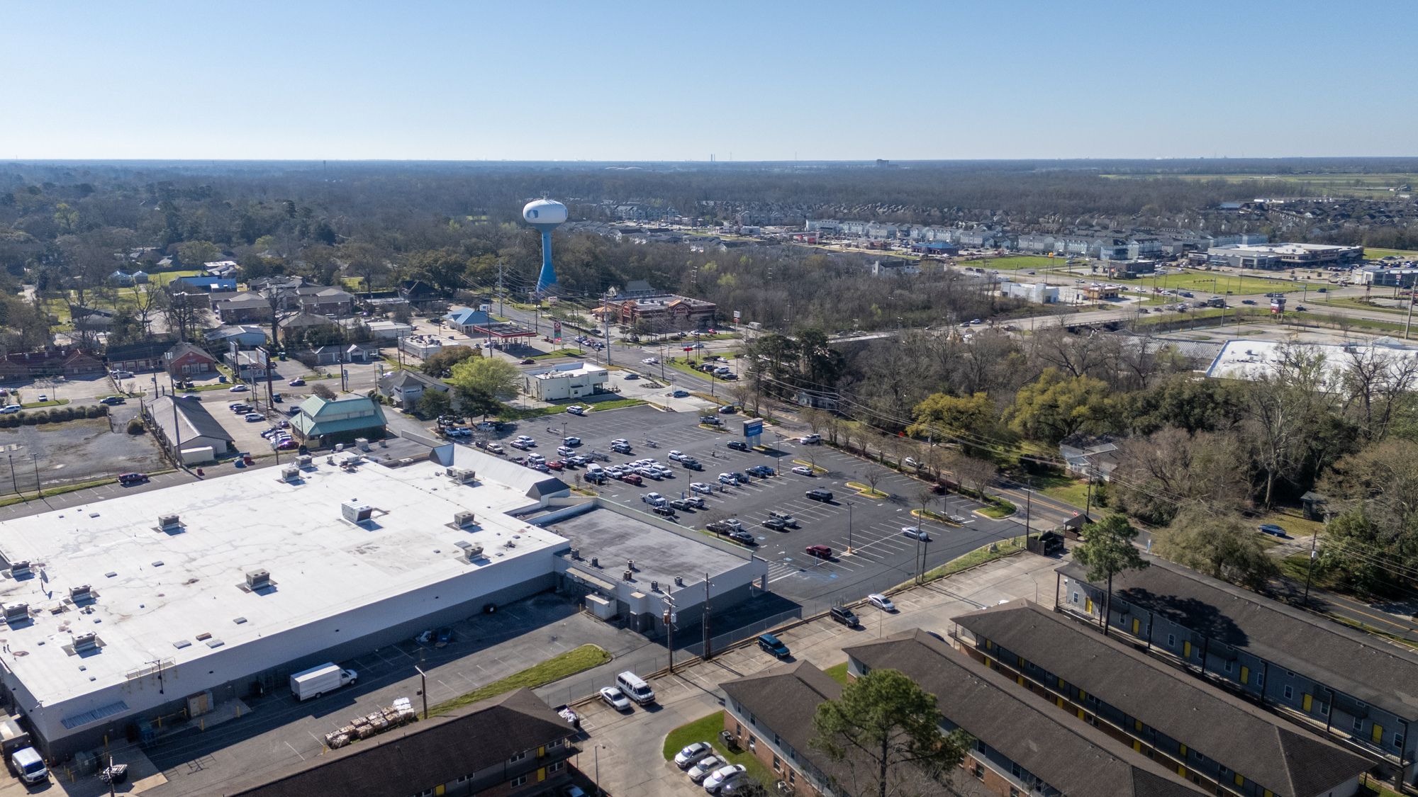 Highly visible retail center near LSU campus with signage opportunities.