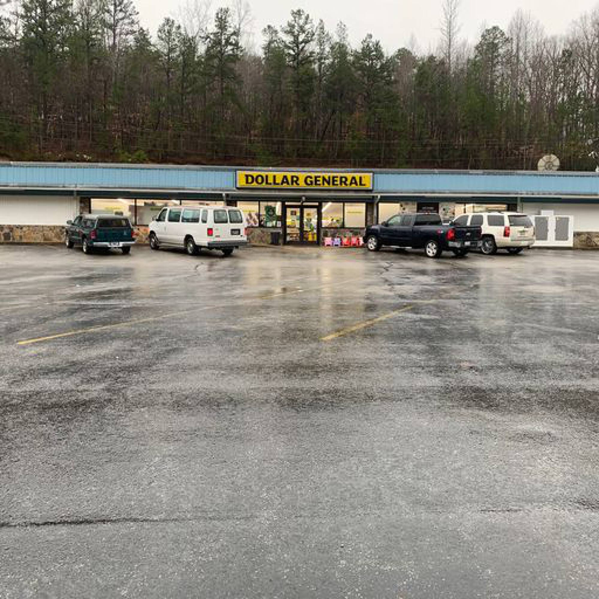 Three-tenant retail center anchored by Dollar General on Highway 64.