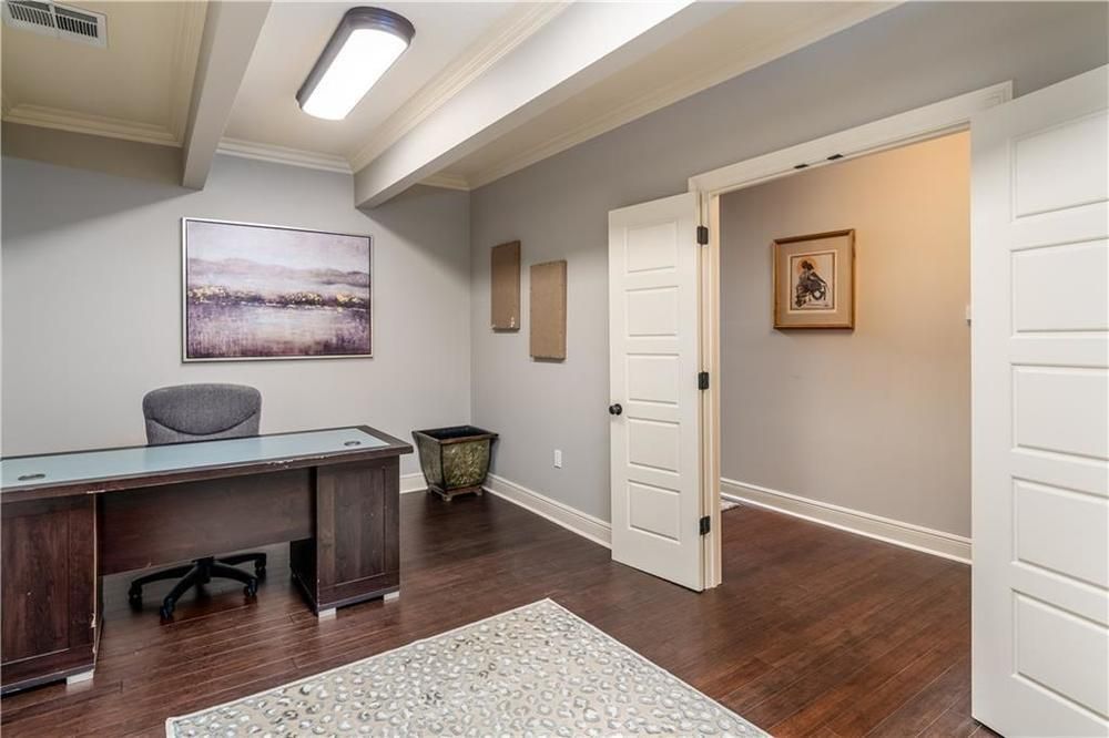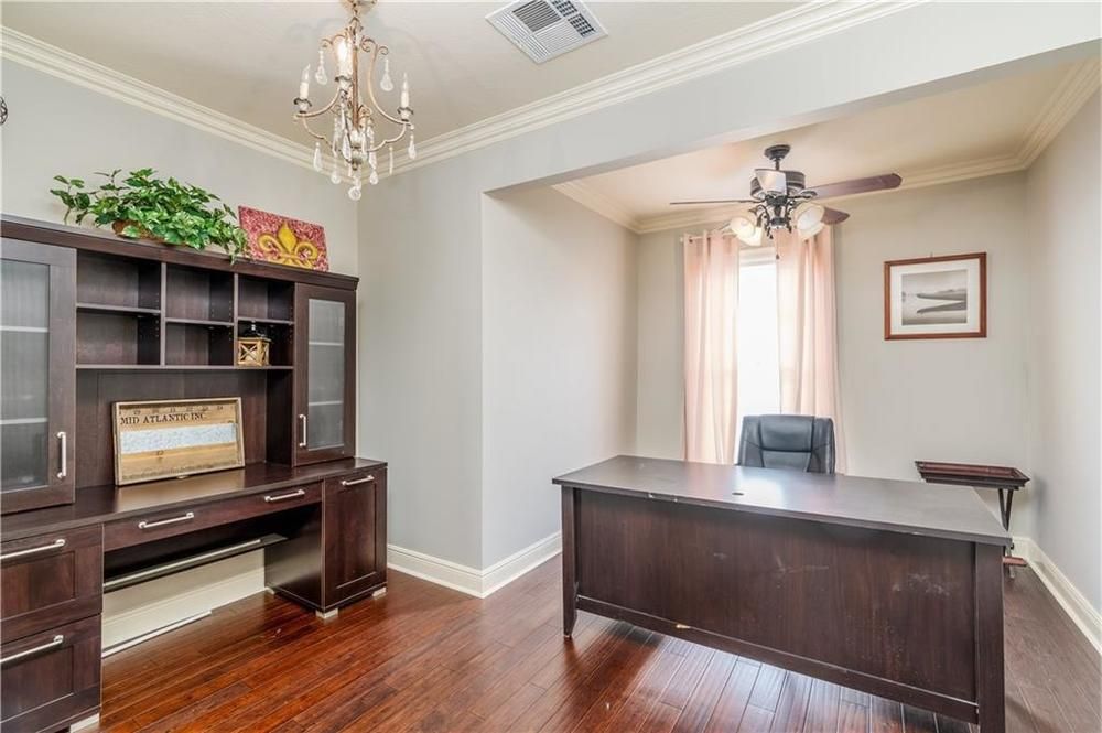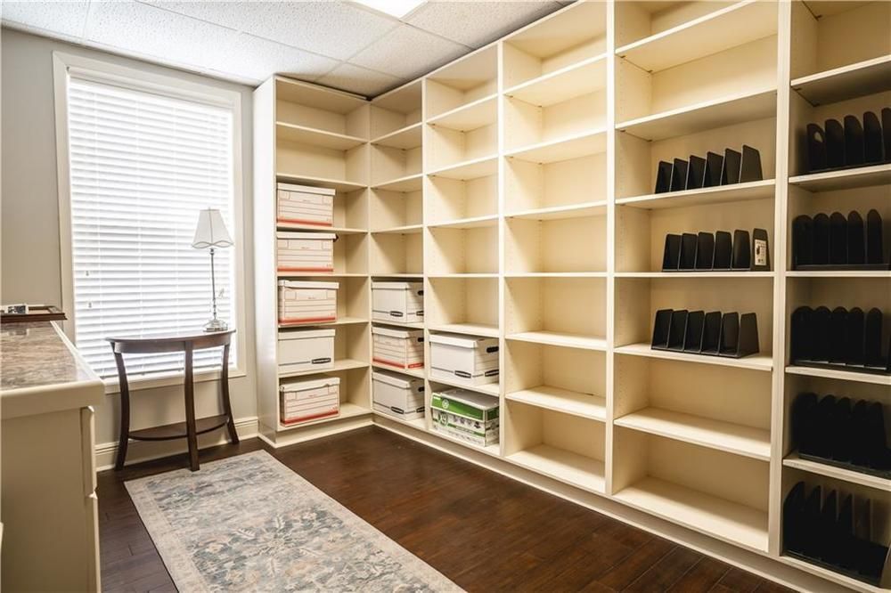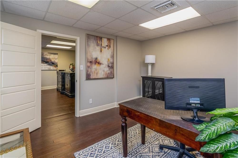 Located in the heart of Lake Charles, this commercial property offers 3,379 square feet of business space. The building was updated in 2019, with attention to detail throughout. The layout includes a greeting area with a private office suitable for client consultations. There are multiple executive and staff offices, a large file room with custom built-in shelving and cabinets, and a spacious conference room. The building features two kitchens, designer paint colors, high ceilings, crown molding, upscale lighting, and plumbing hardware. The floors are hardwood and tile, with granite and wood countertops in the kitchen and bath areas. The roof was installed in 2020. The street frontage includes ornate fencing with landscaping. The building is available for lease and move-in ready as of June 15, 2021. The property is a two-story building in downtown Lake Charles.
