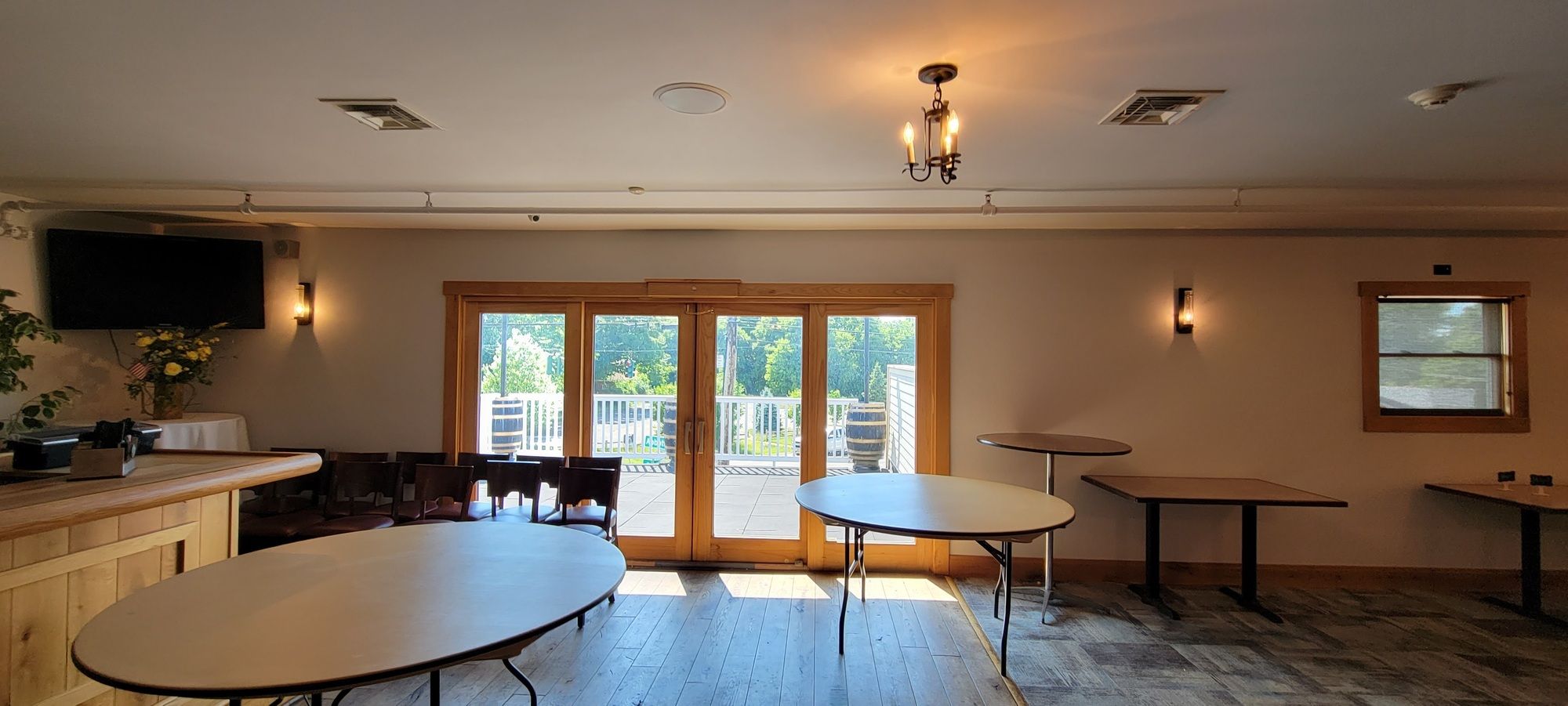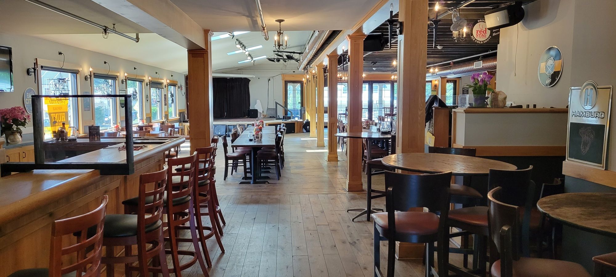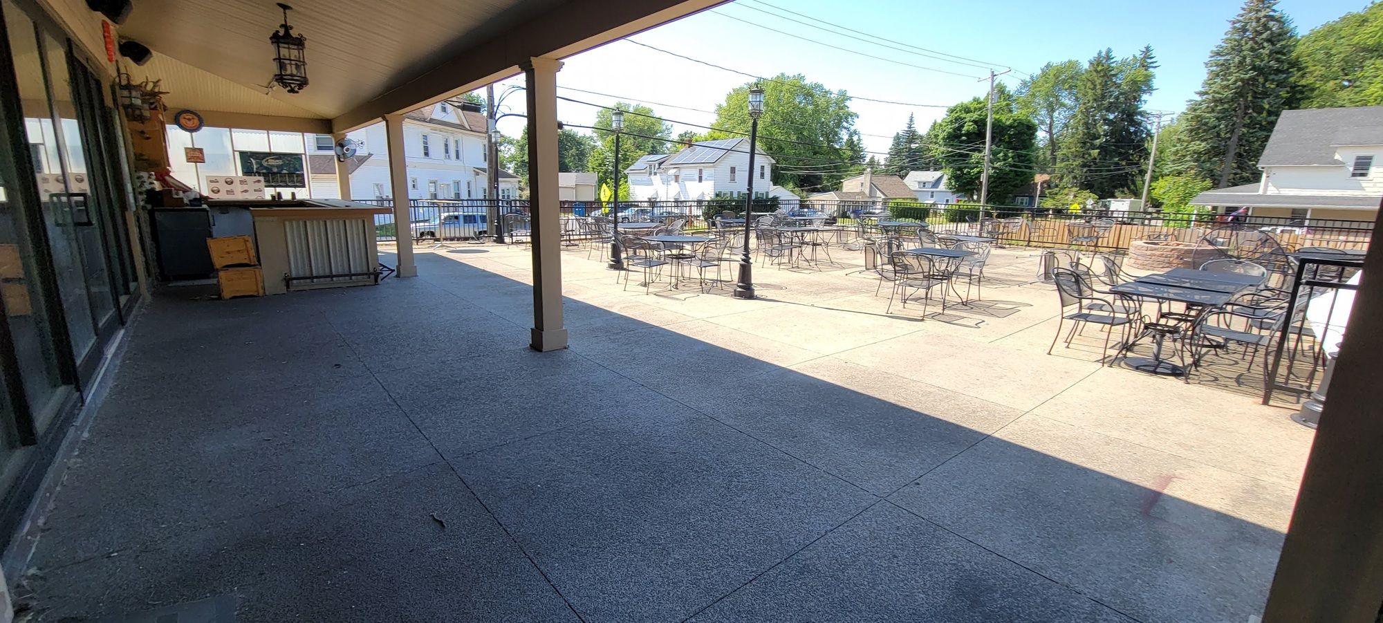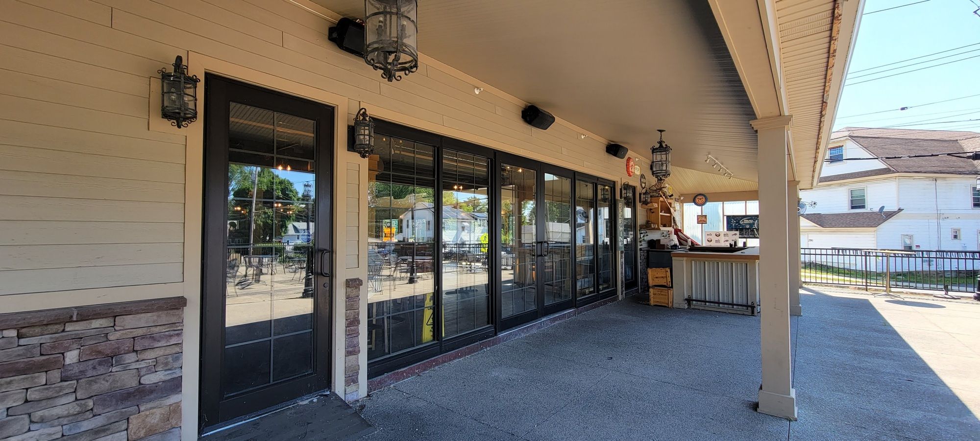 Fully equipped restaurant and bar with large parking and patio.