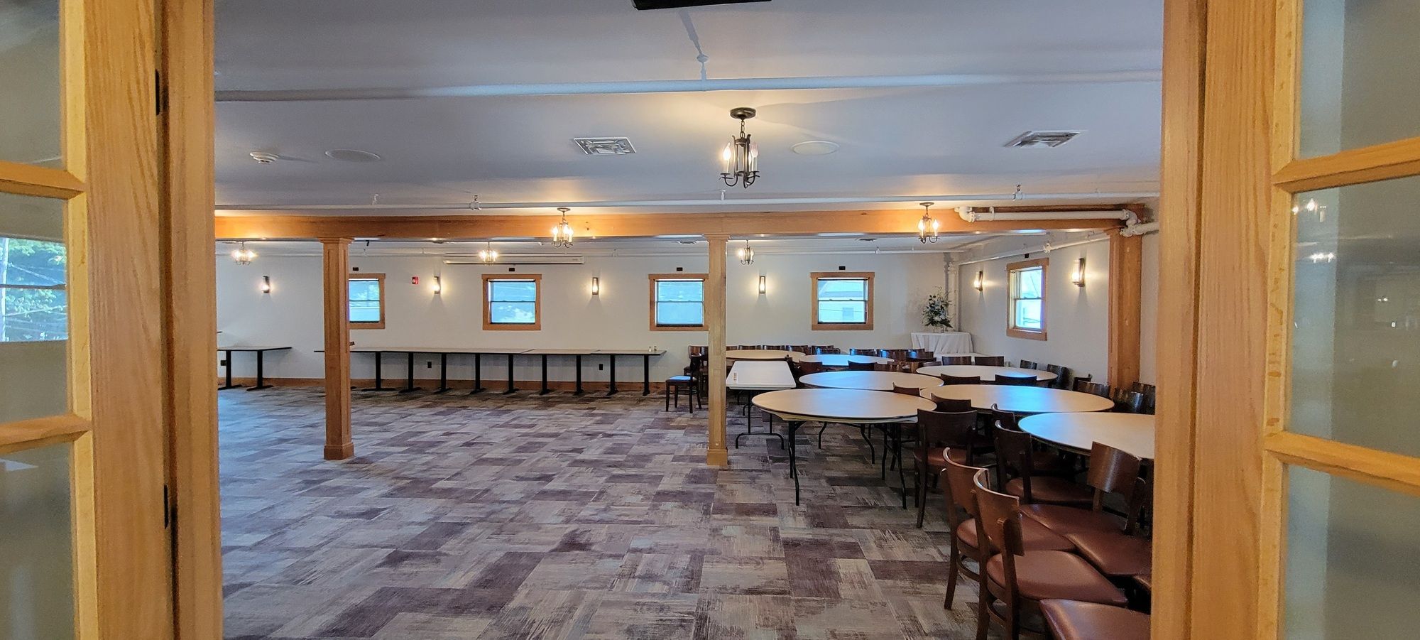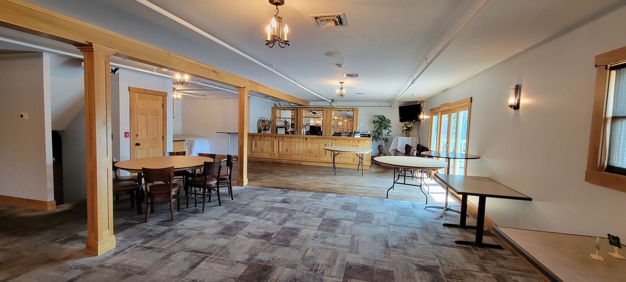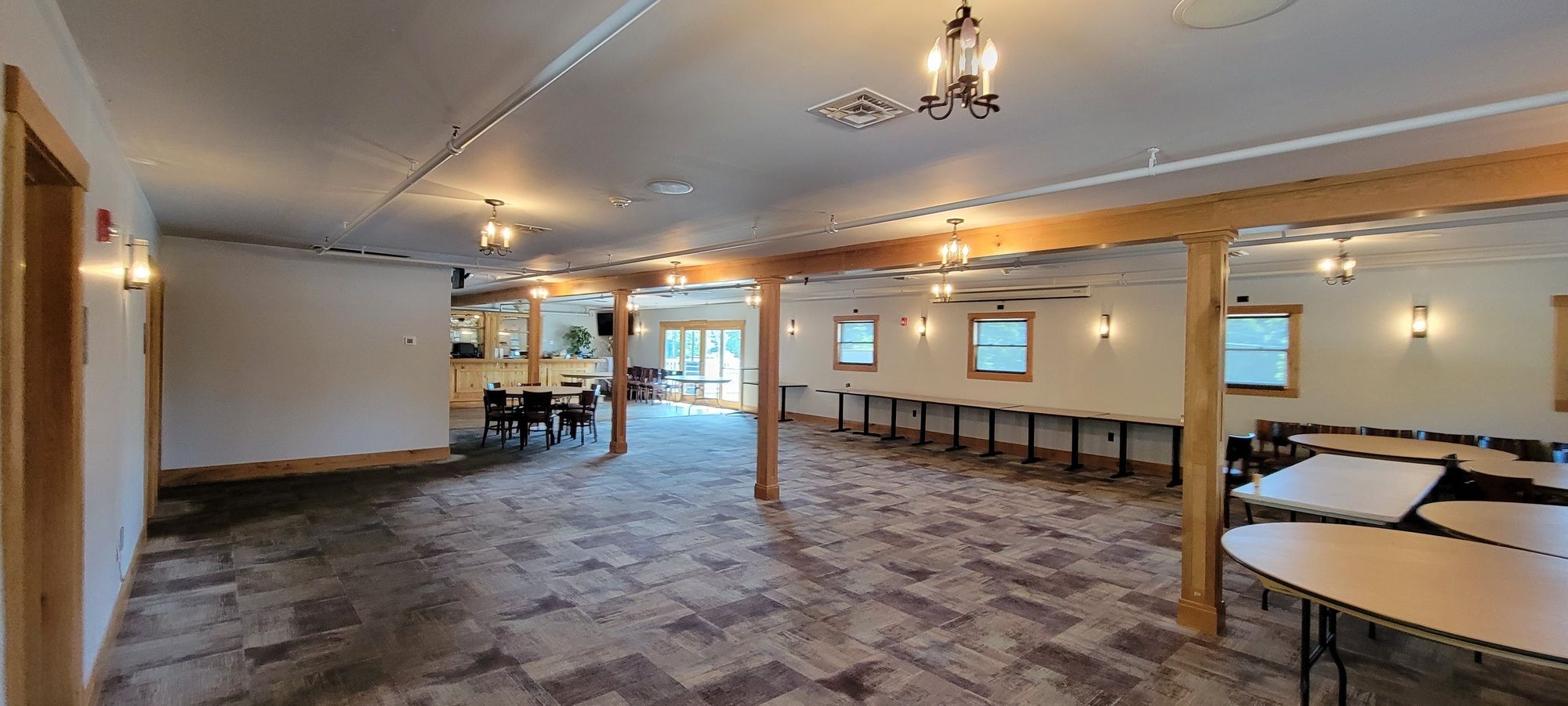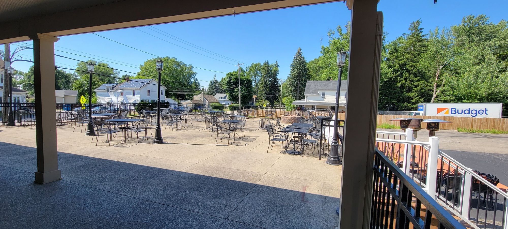 Fully equipped restaurant and bar with large parking and patio.