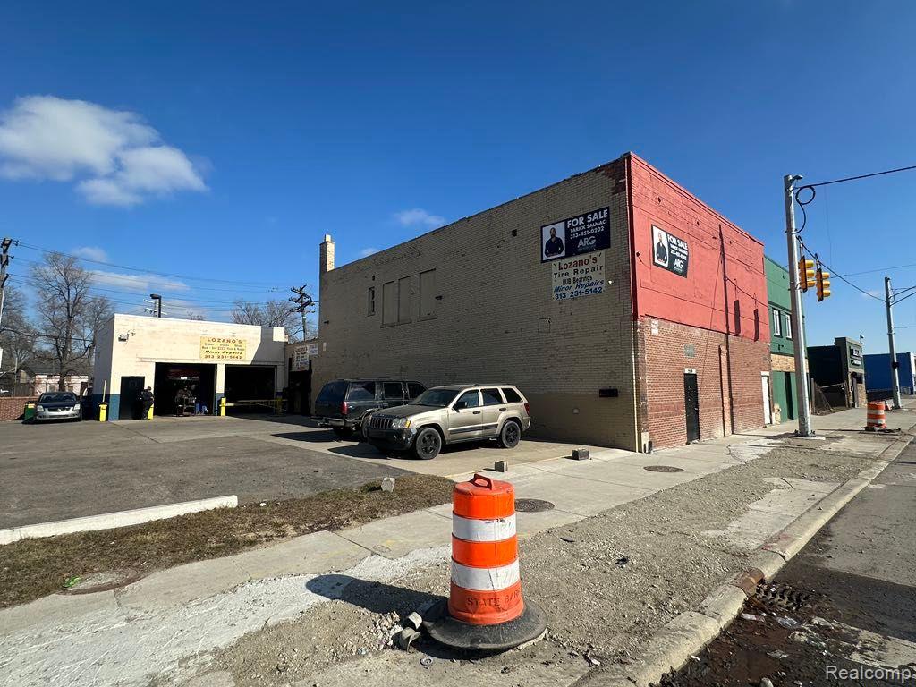 Mixed-use building with auto repair shop in Southwest Detroit.
