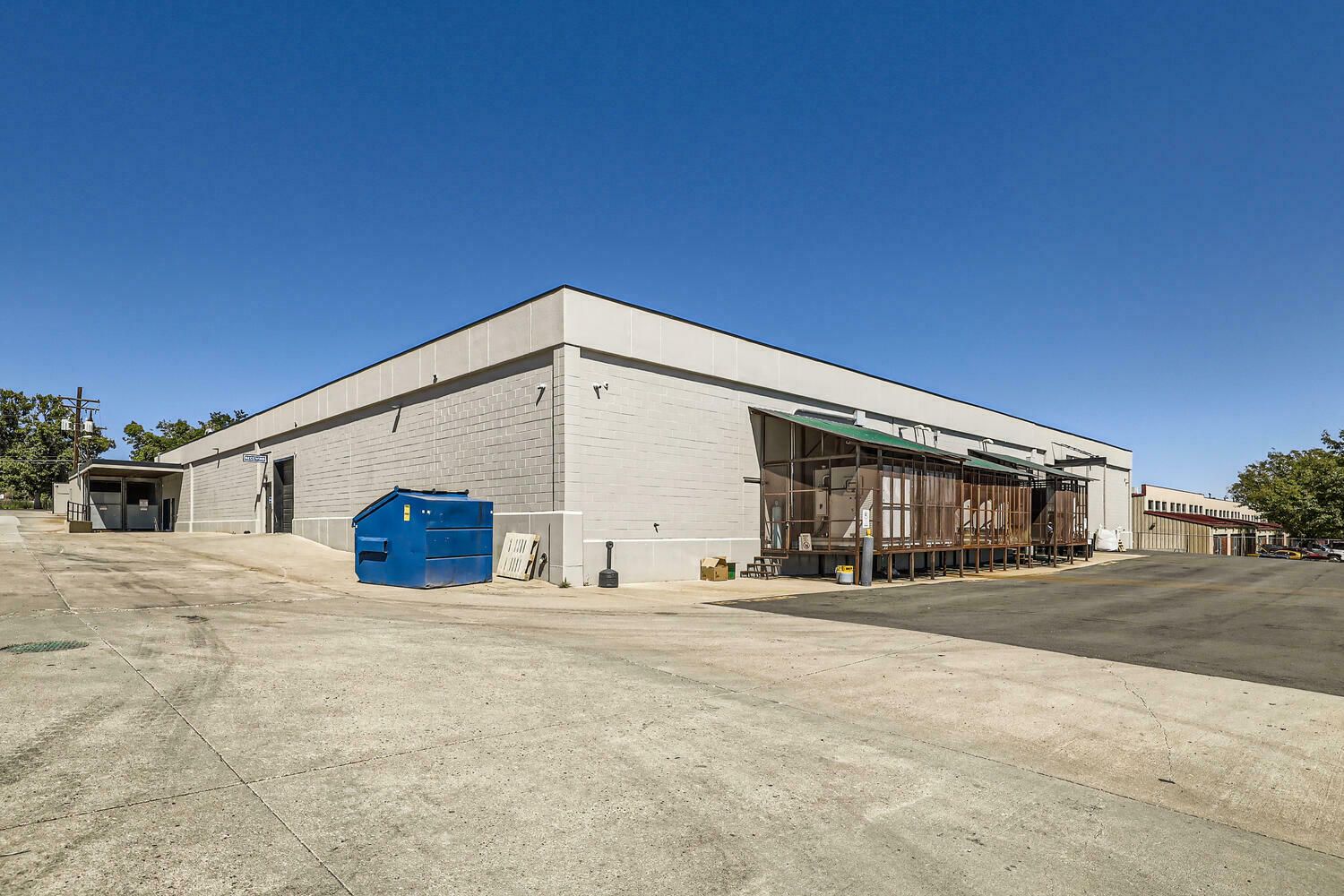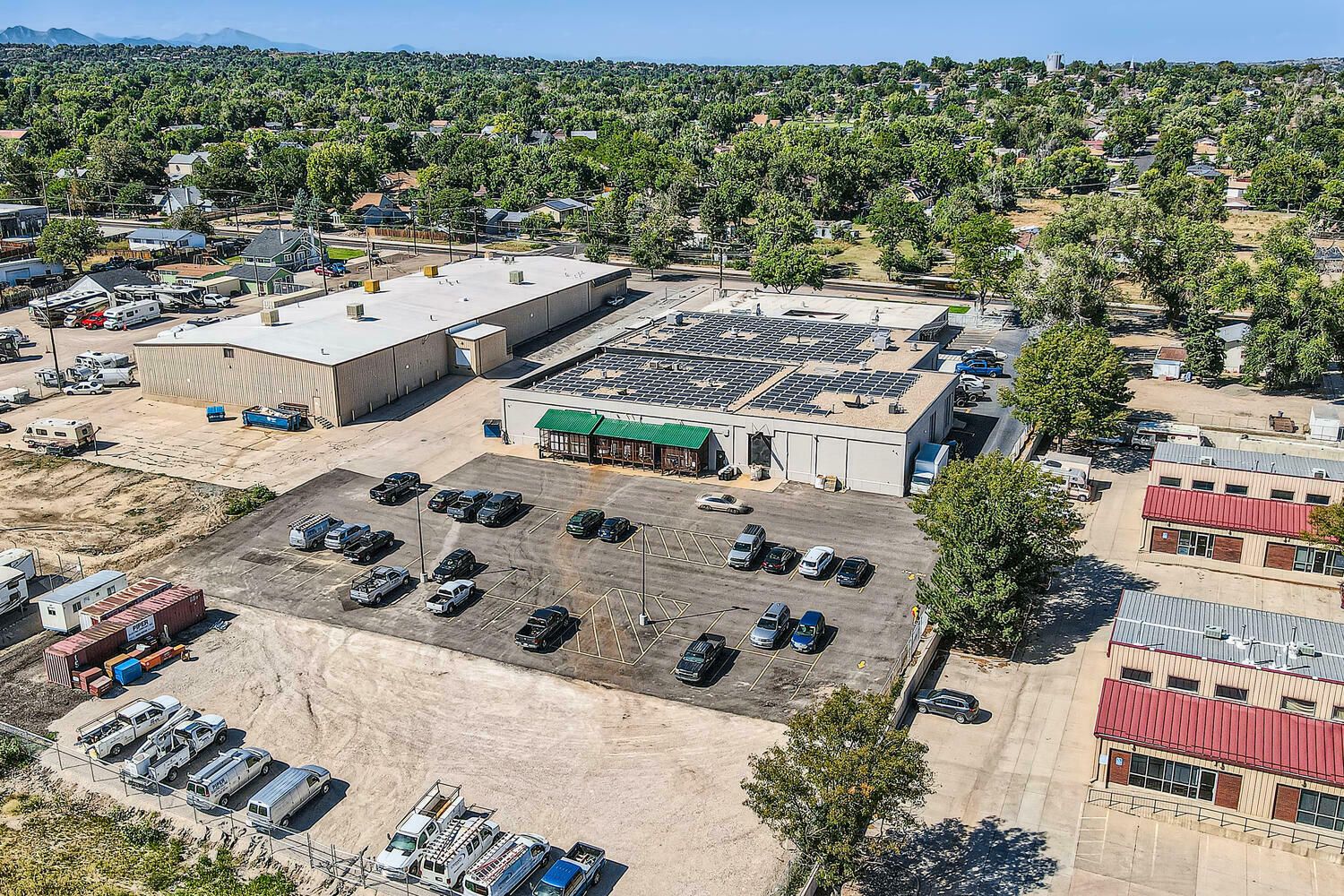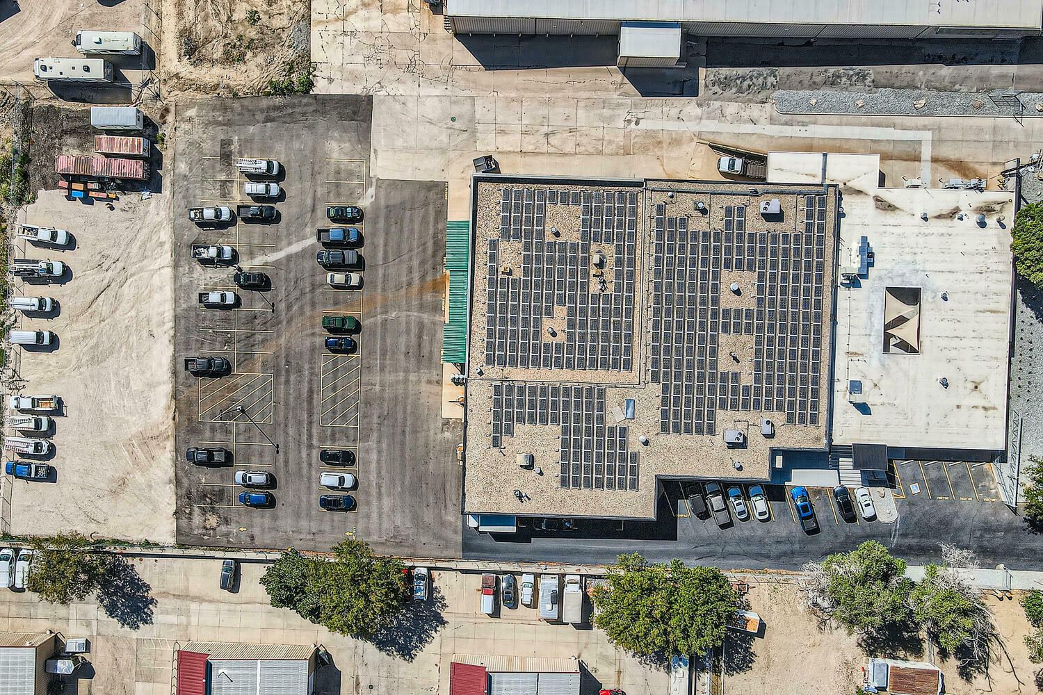 Multi-tenant industrial property with long-term leases and solar panels.
