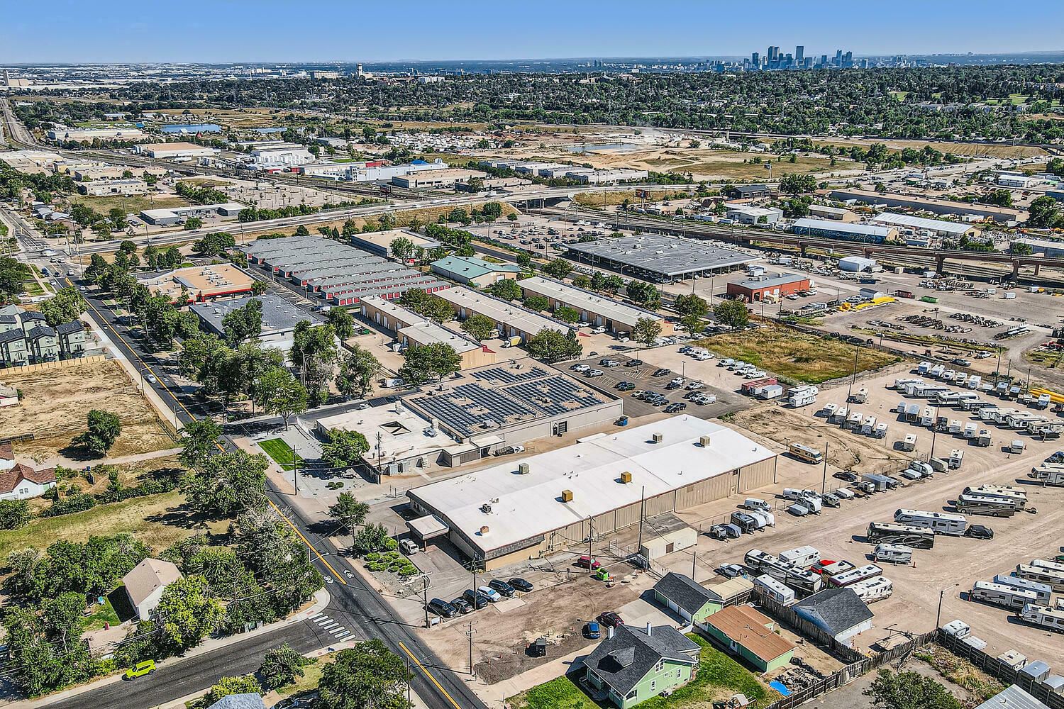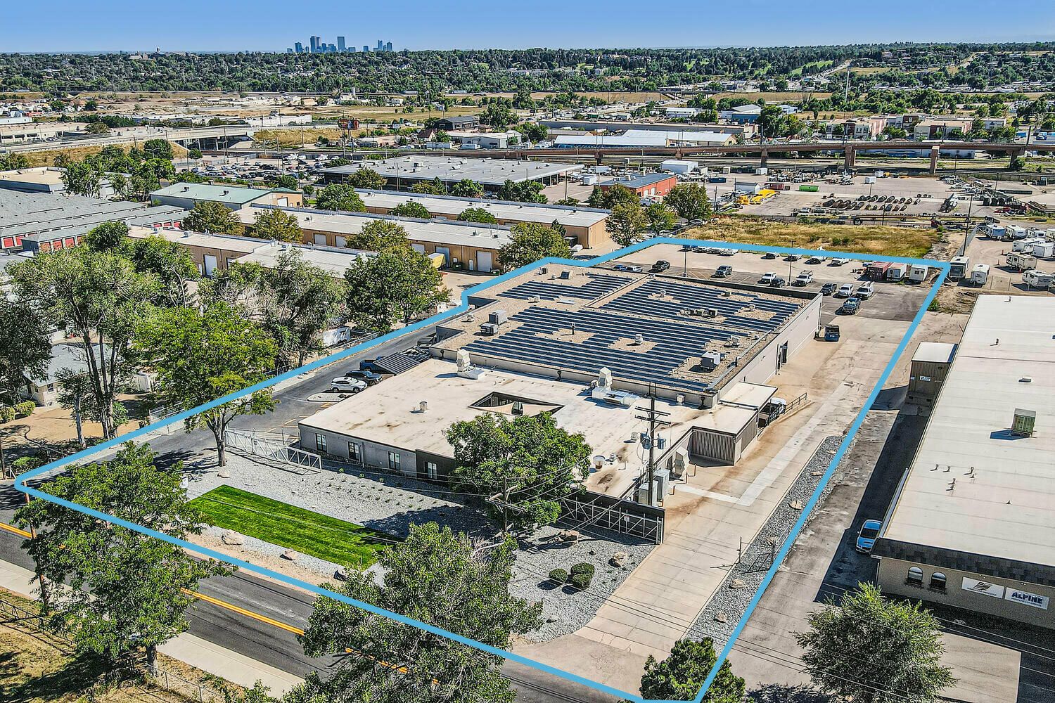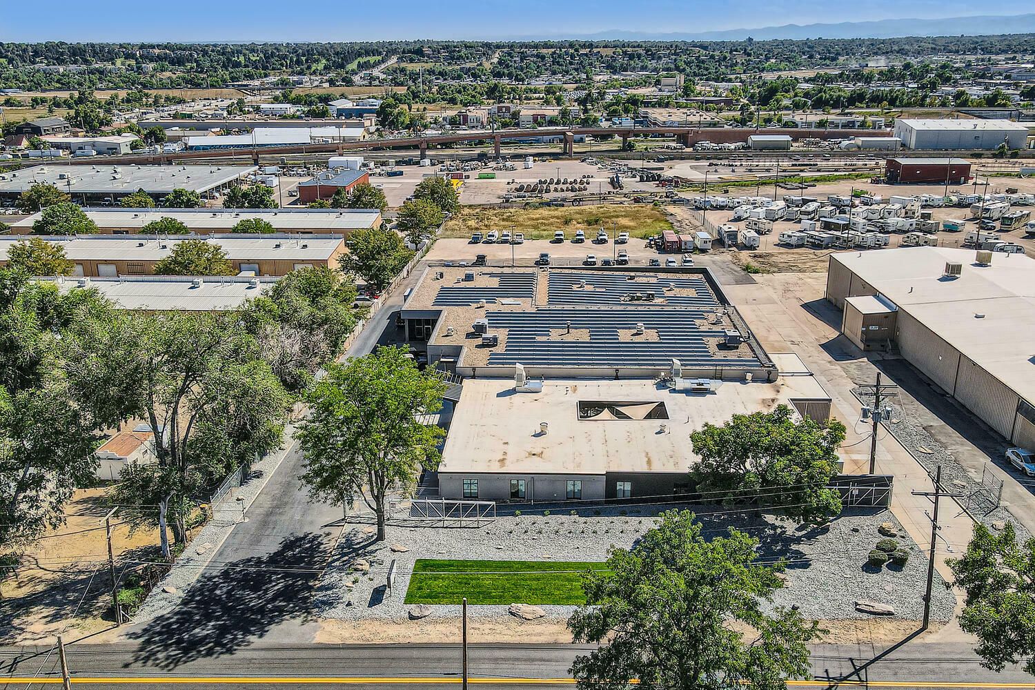 Multi-tenant industrial property with long-term leases and solar panels.