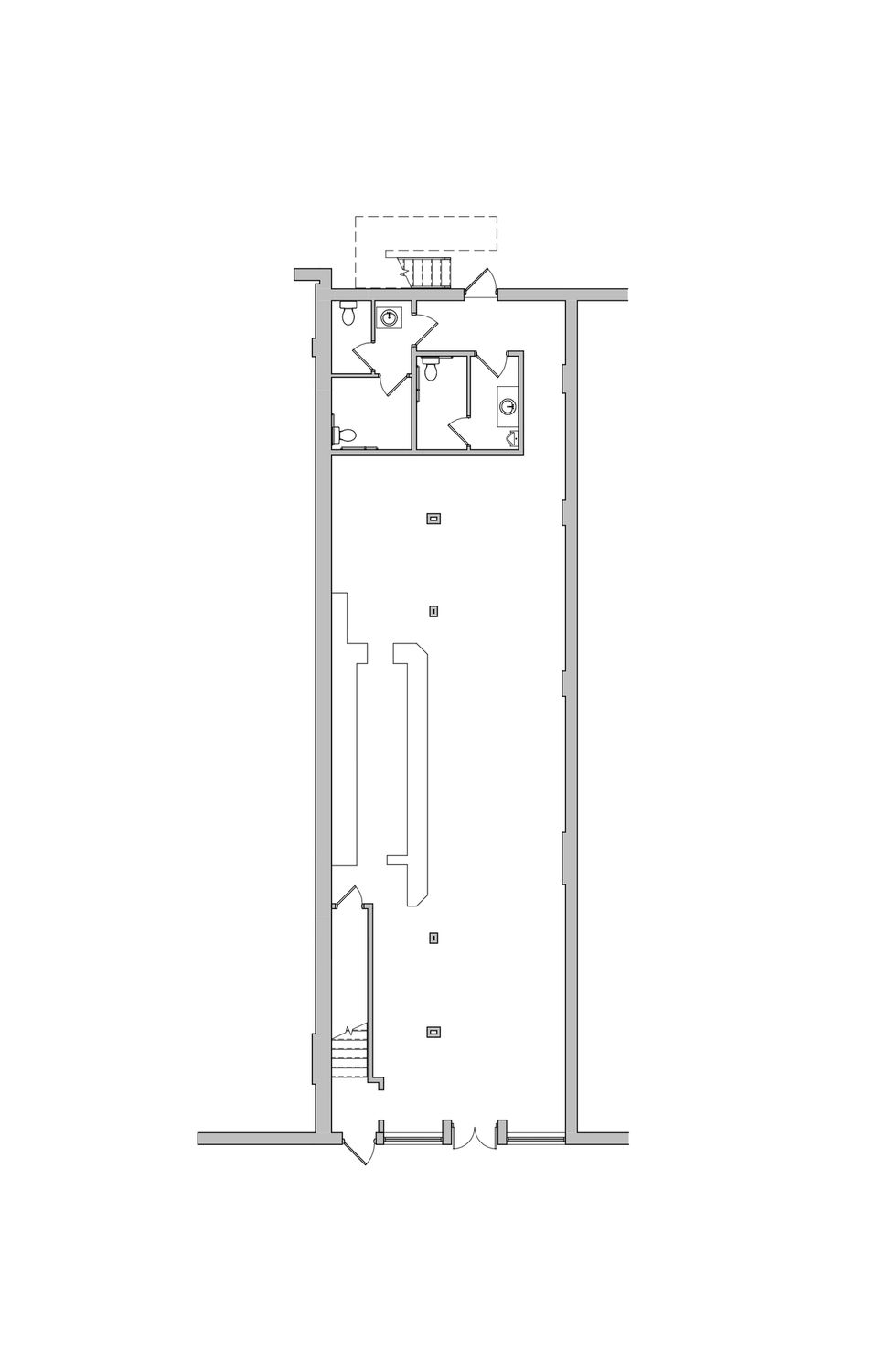 Versatile space suitable for office, retail, or restaurant tenants.