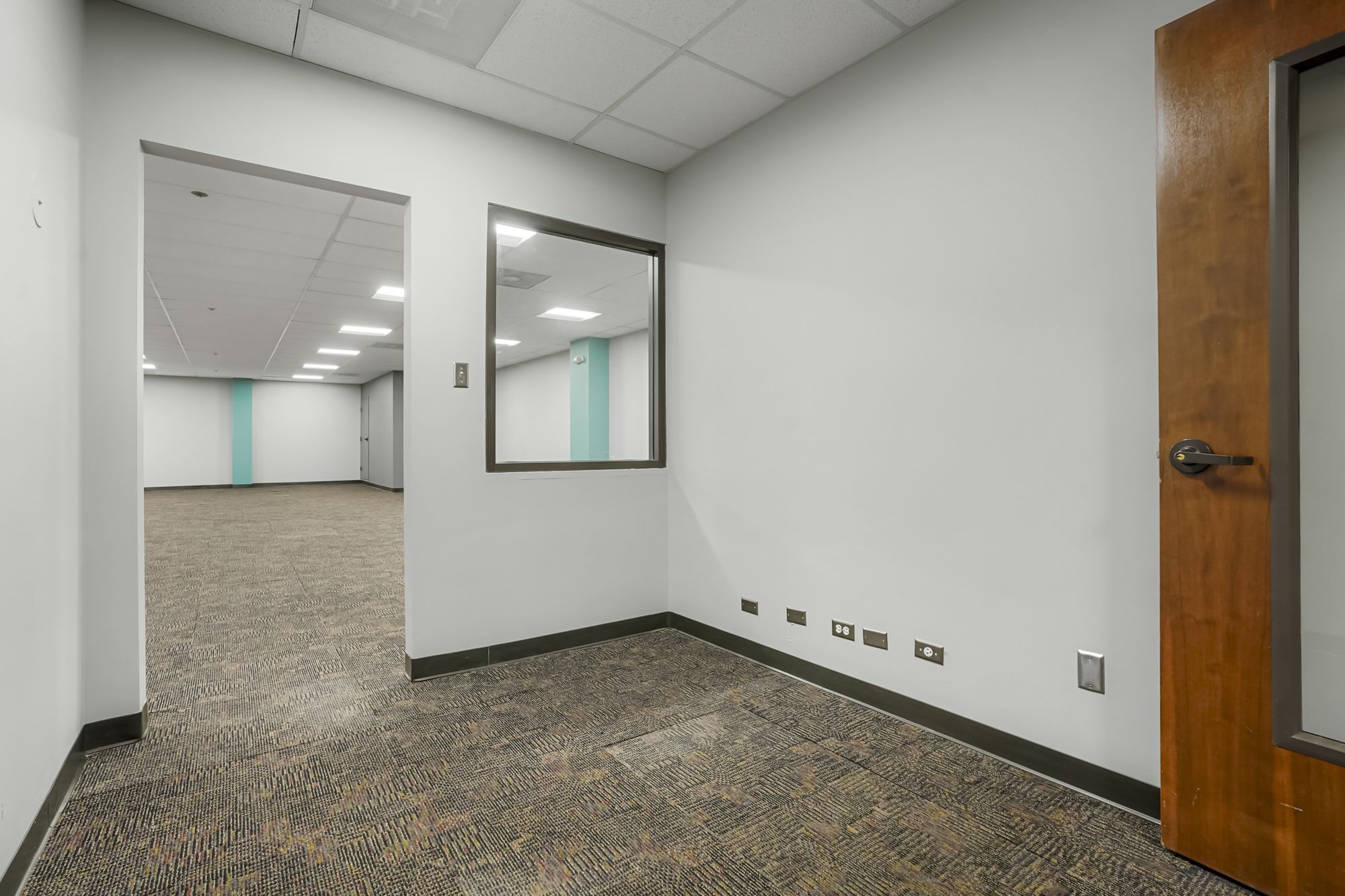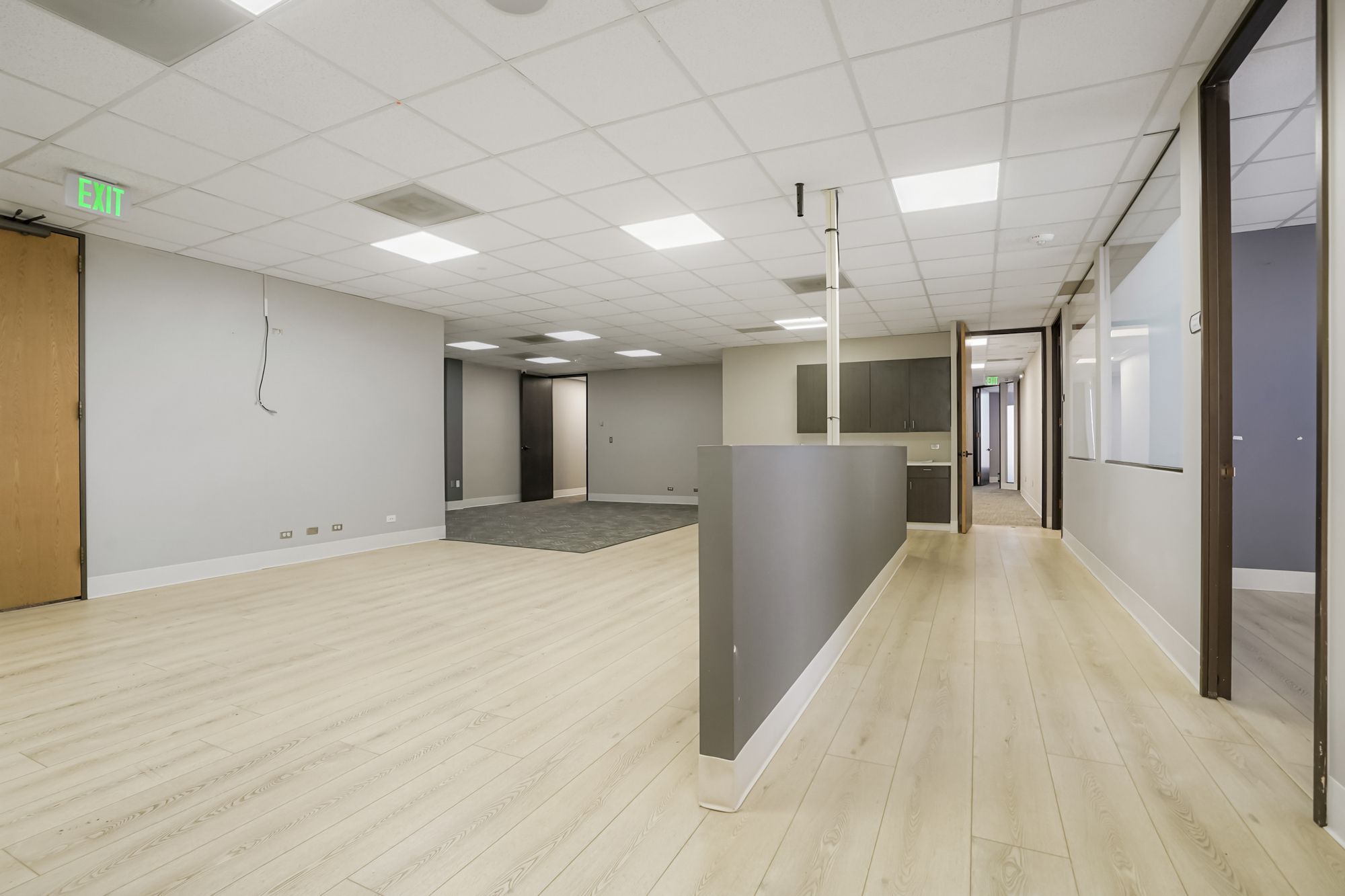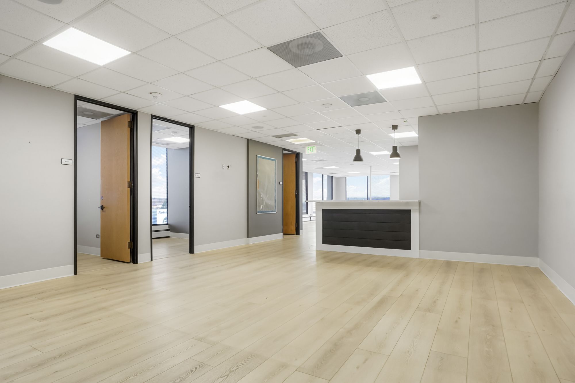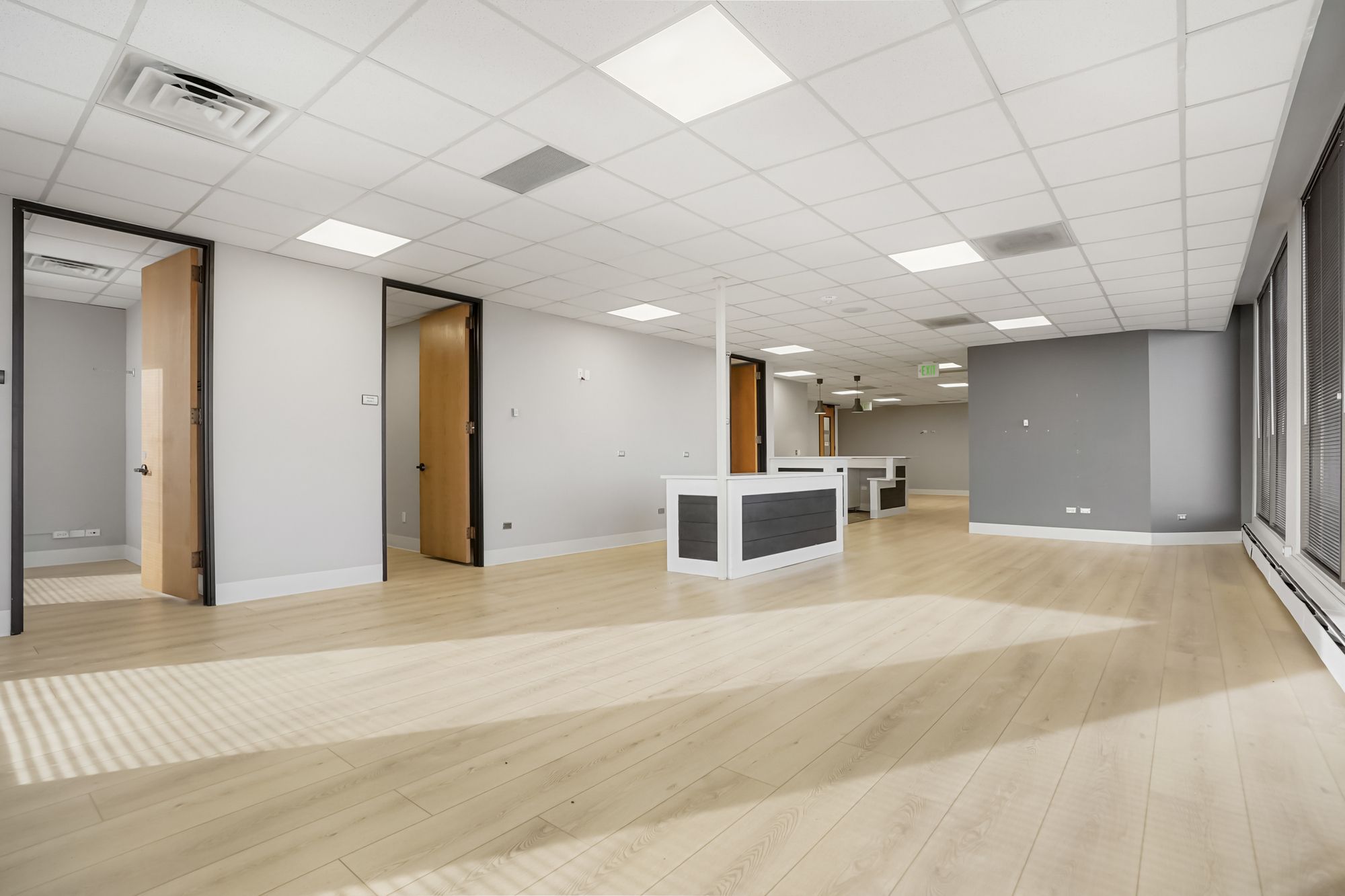 Office spaces for lease with ample parking in prime location.
