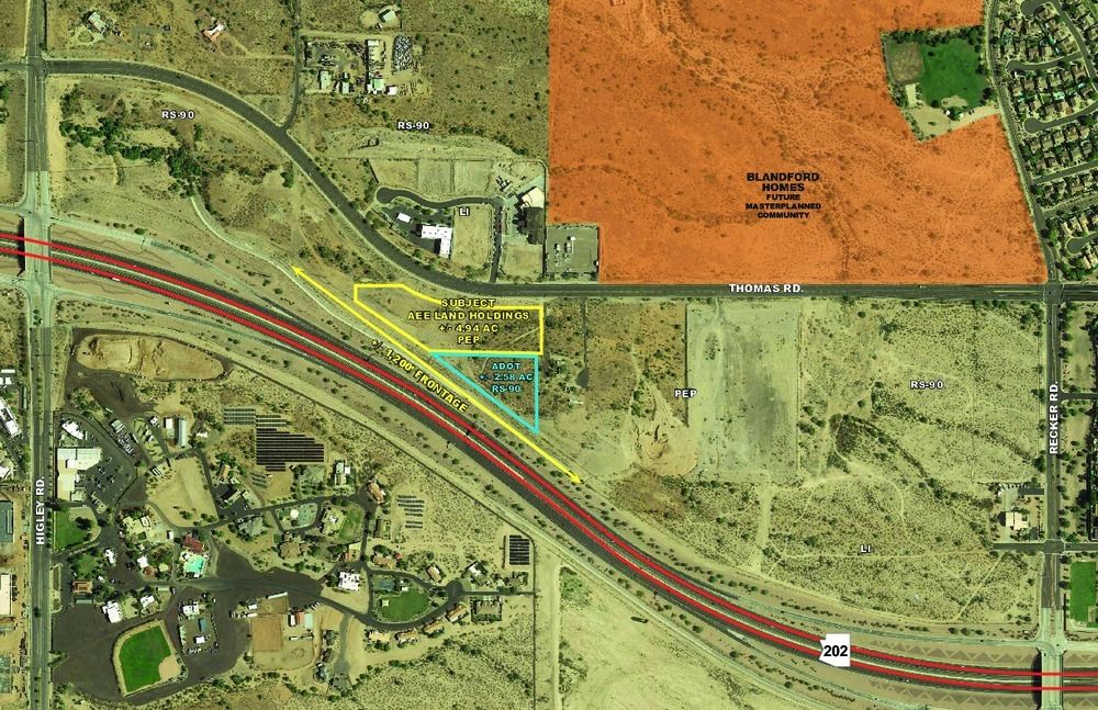 4.9 acres of commercial land with excellent Loop 202 frontage.