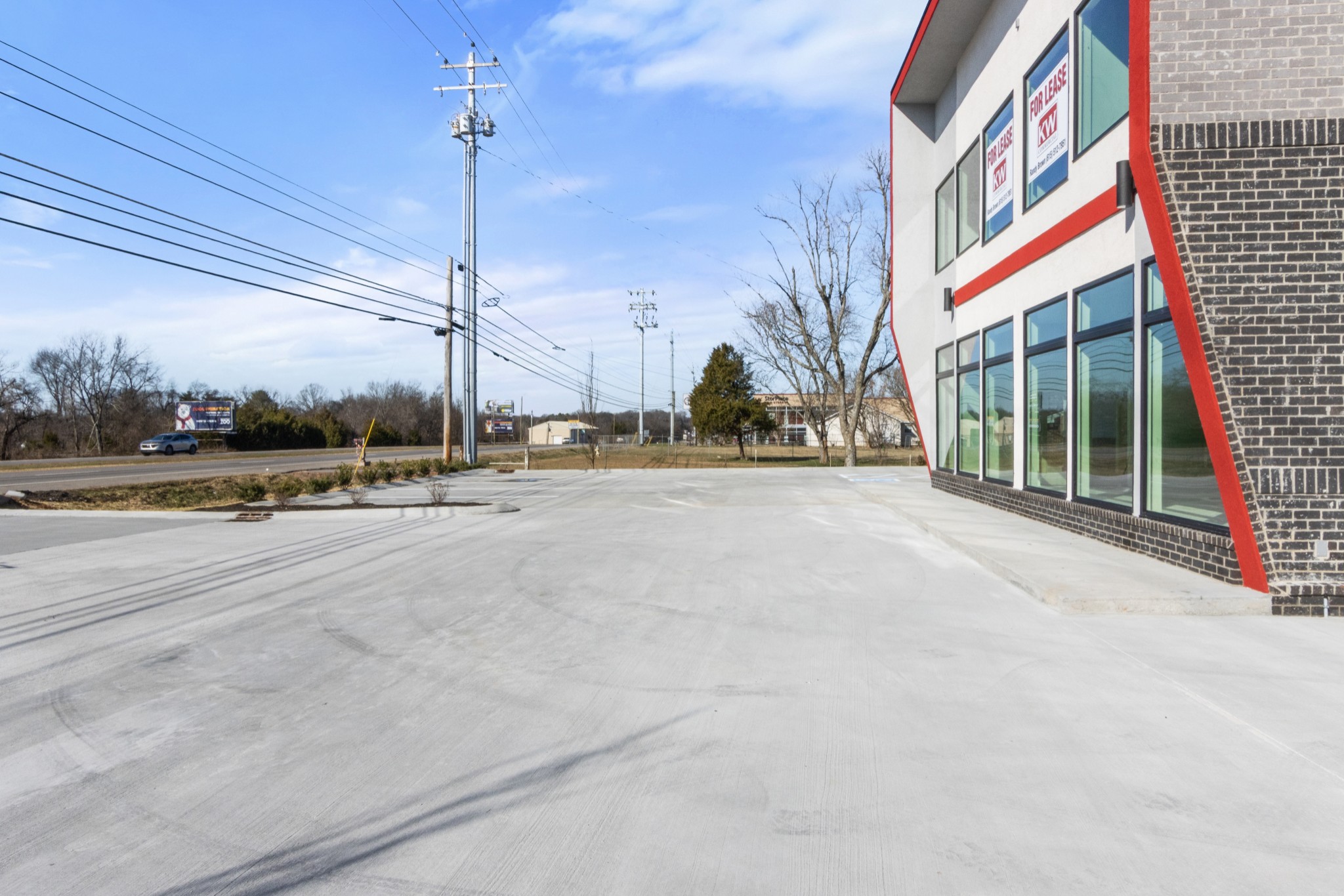 New flex space building with warehouse, showroom, and office space.