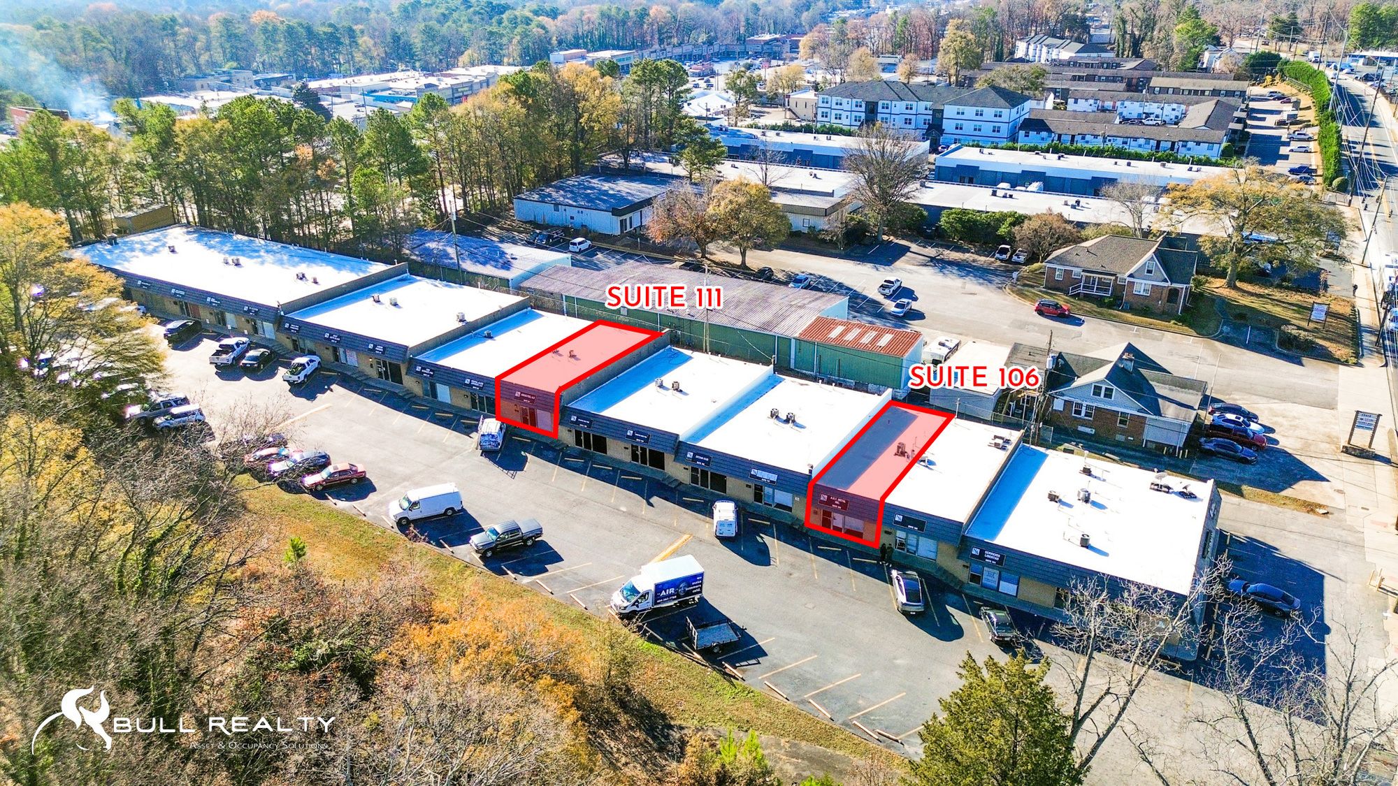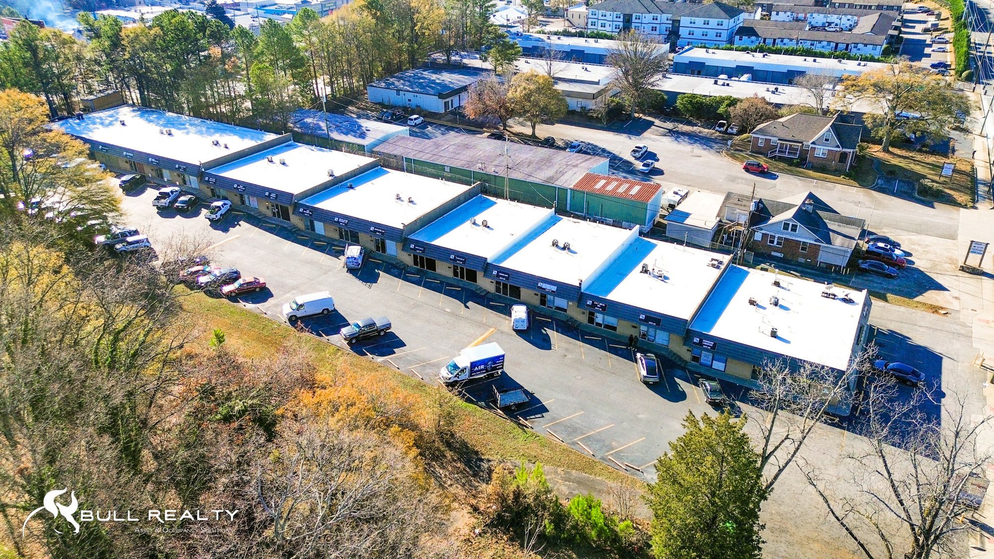 Industrial flex and retail spaces in high-traffic Atlanta corridor.