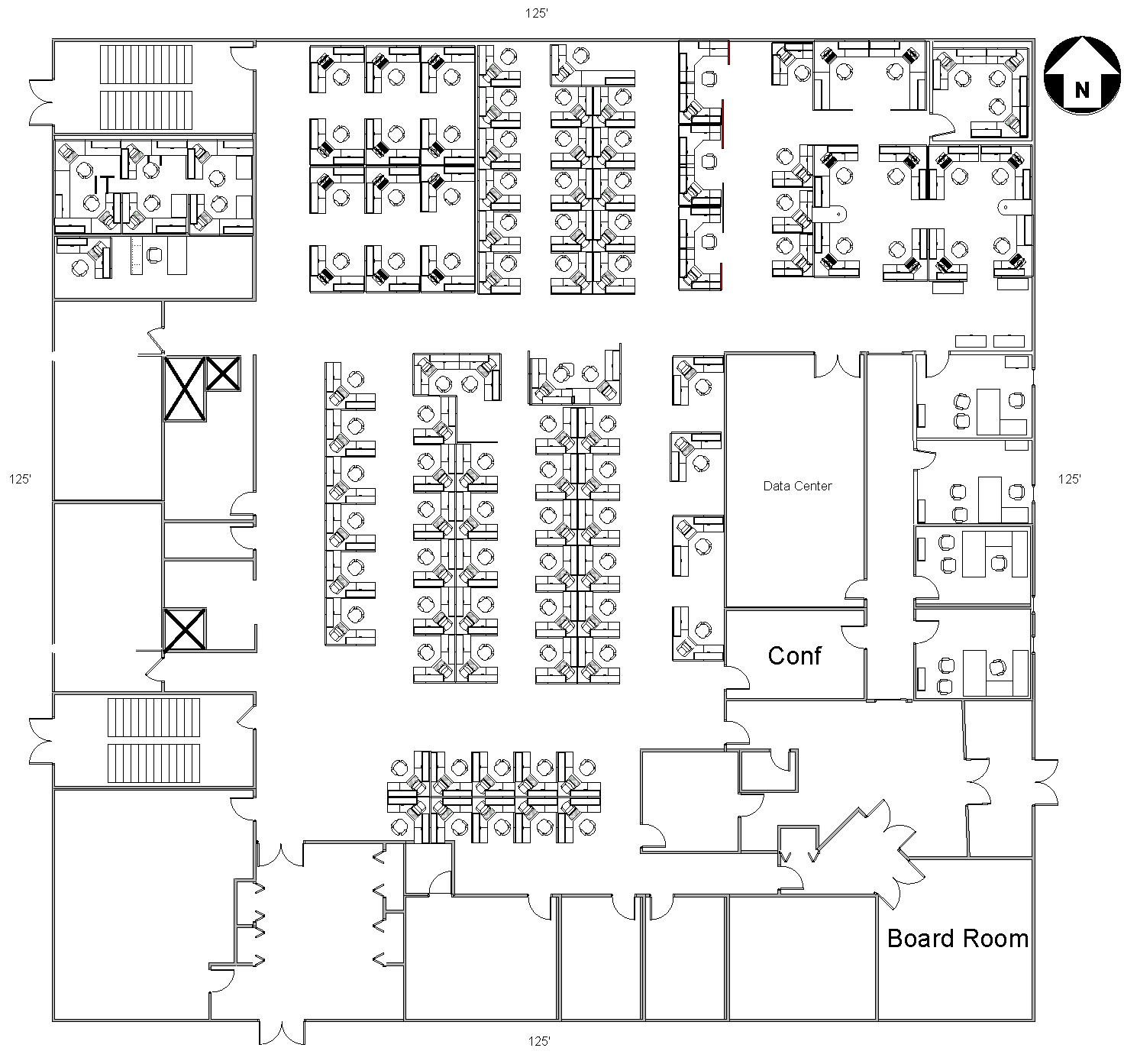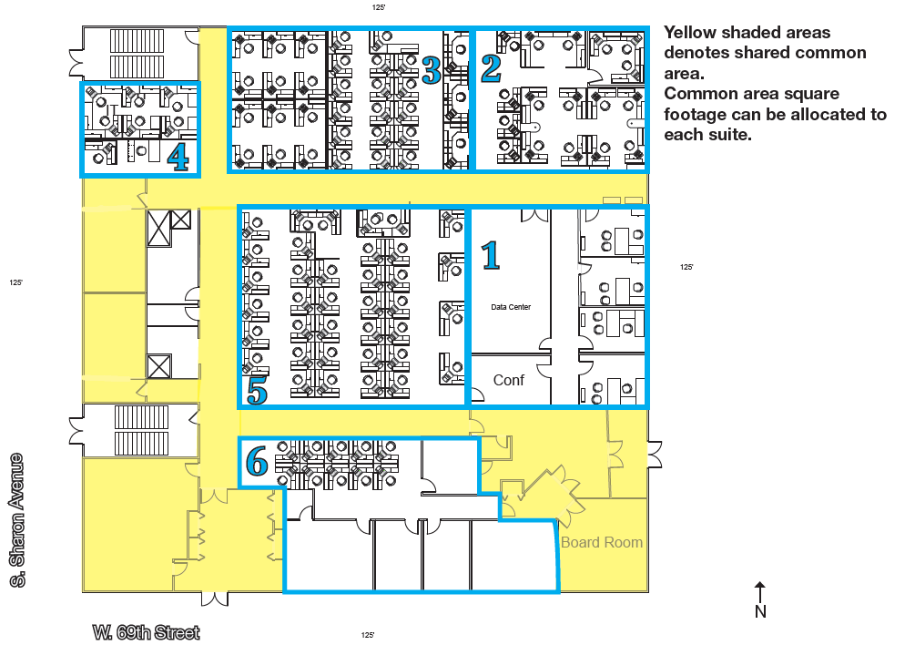 Office building with expansion possibilities, configured for call center use.