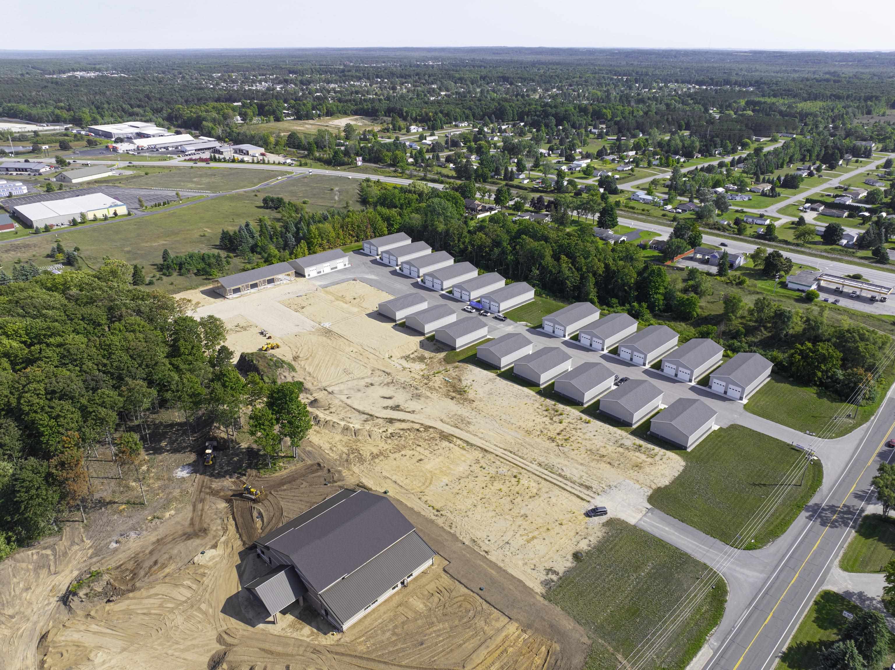 Storage site condominium development with easy access and commercial zoning.