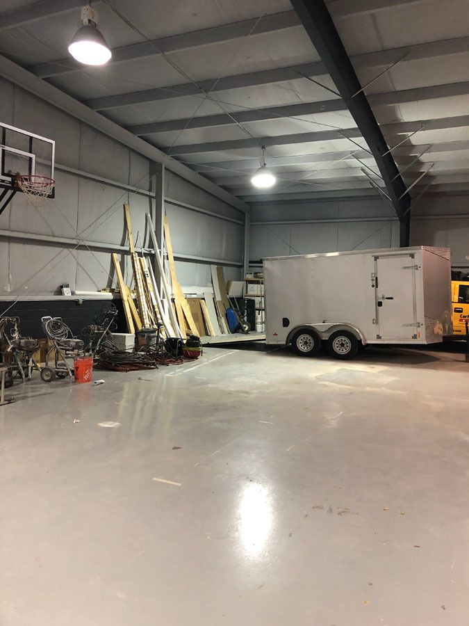 Warehouse with Class A office space, abundant parking, outside storage.