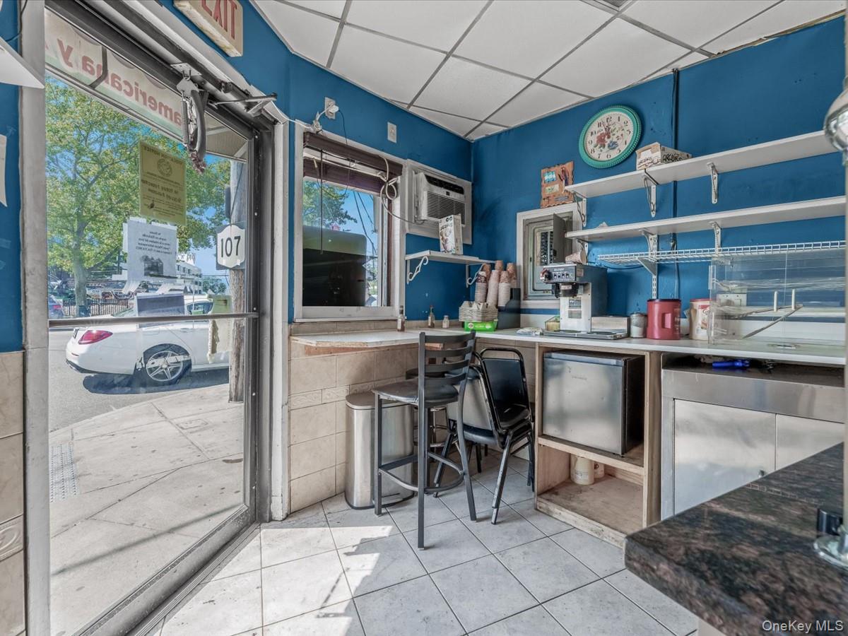 Vacant restaurant space for lease near Long Island Railroad.